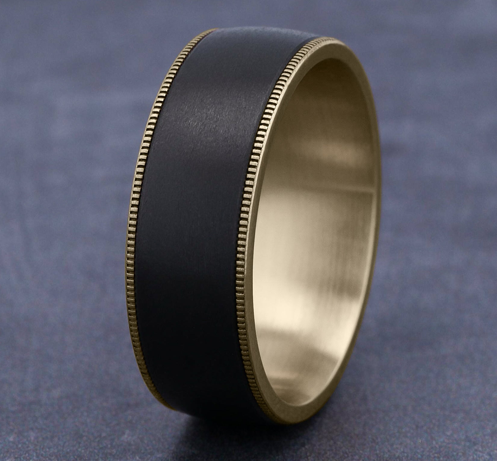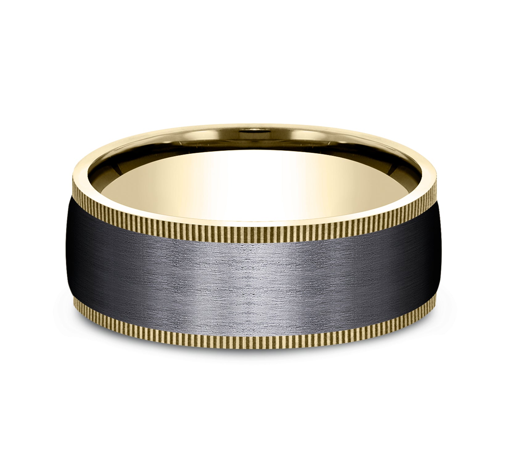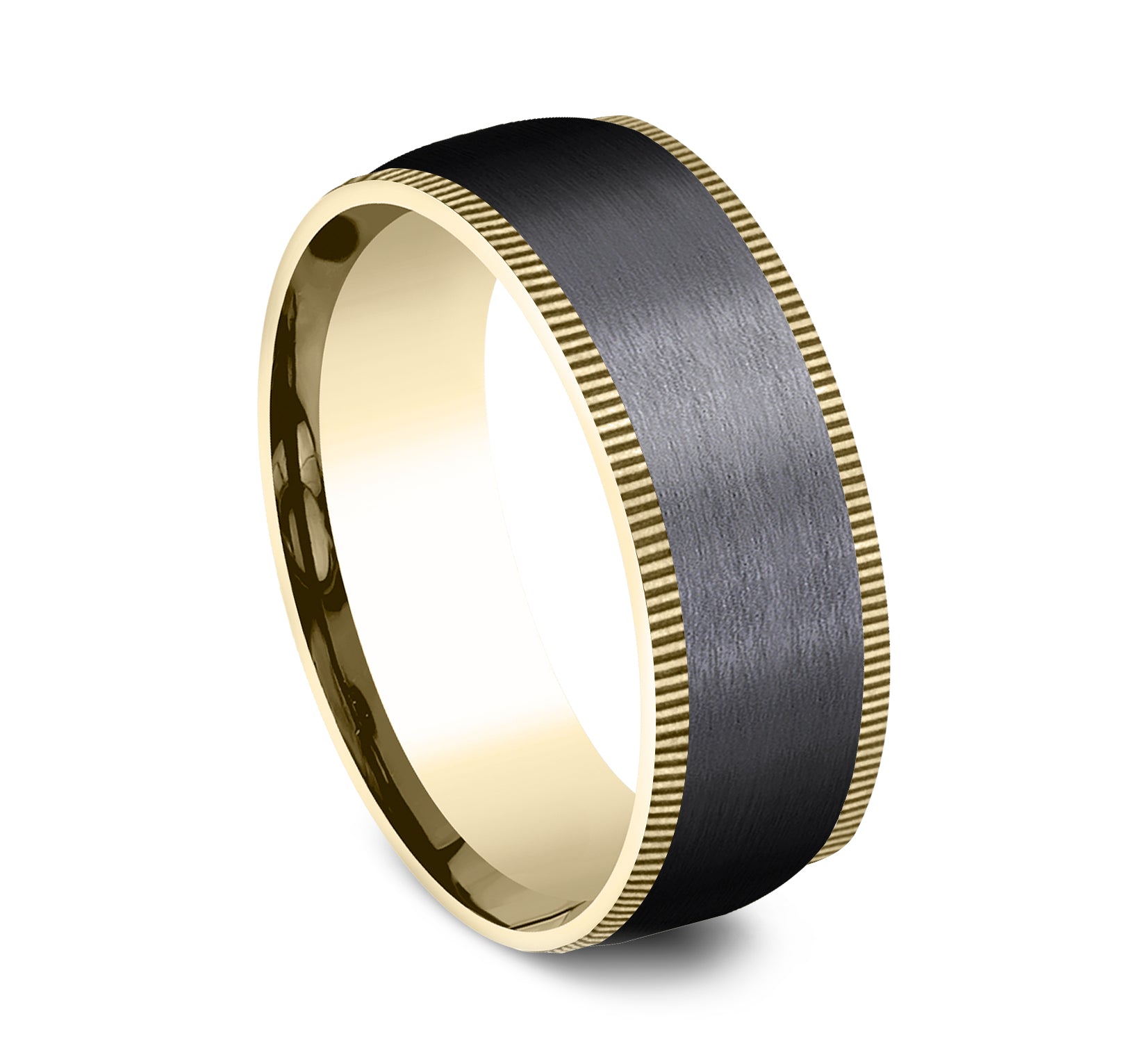 | Additional Description | 8mm, Comfort fit 14K Yellow Gold and Black Titanium Satin center, thin coin edges |
