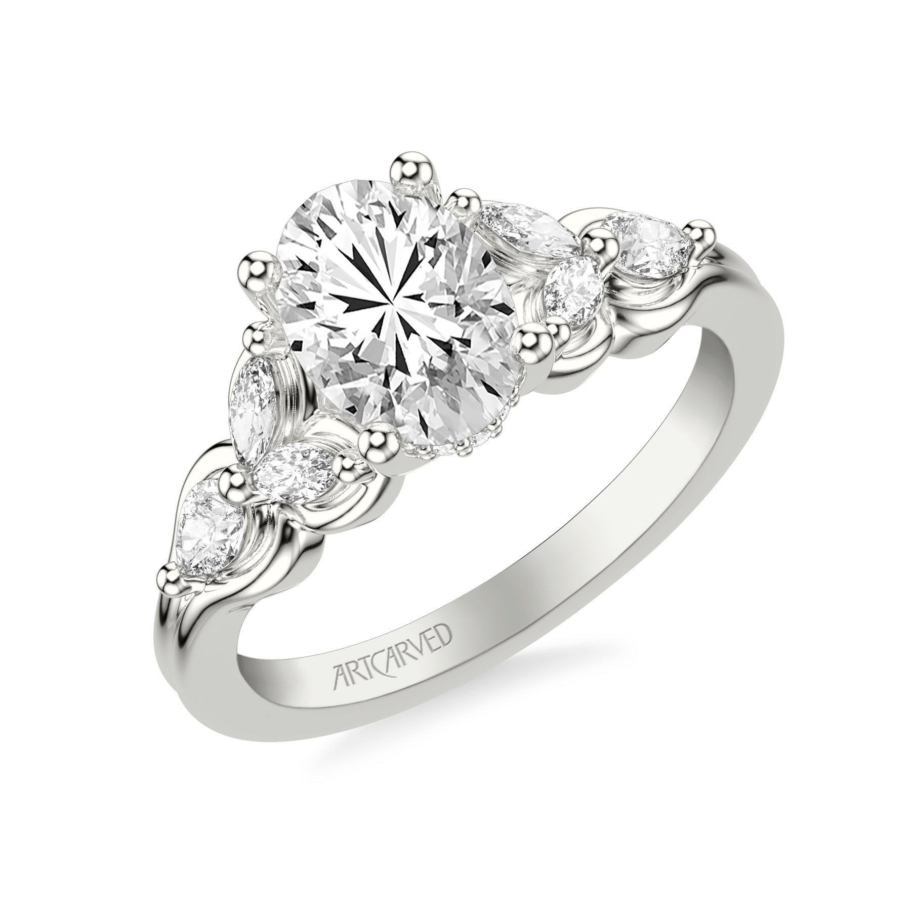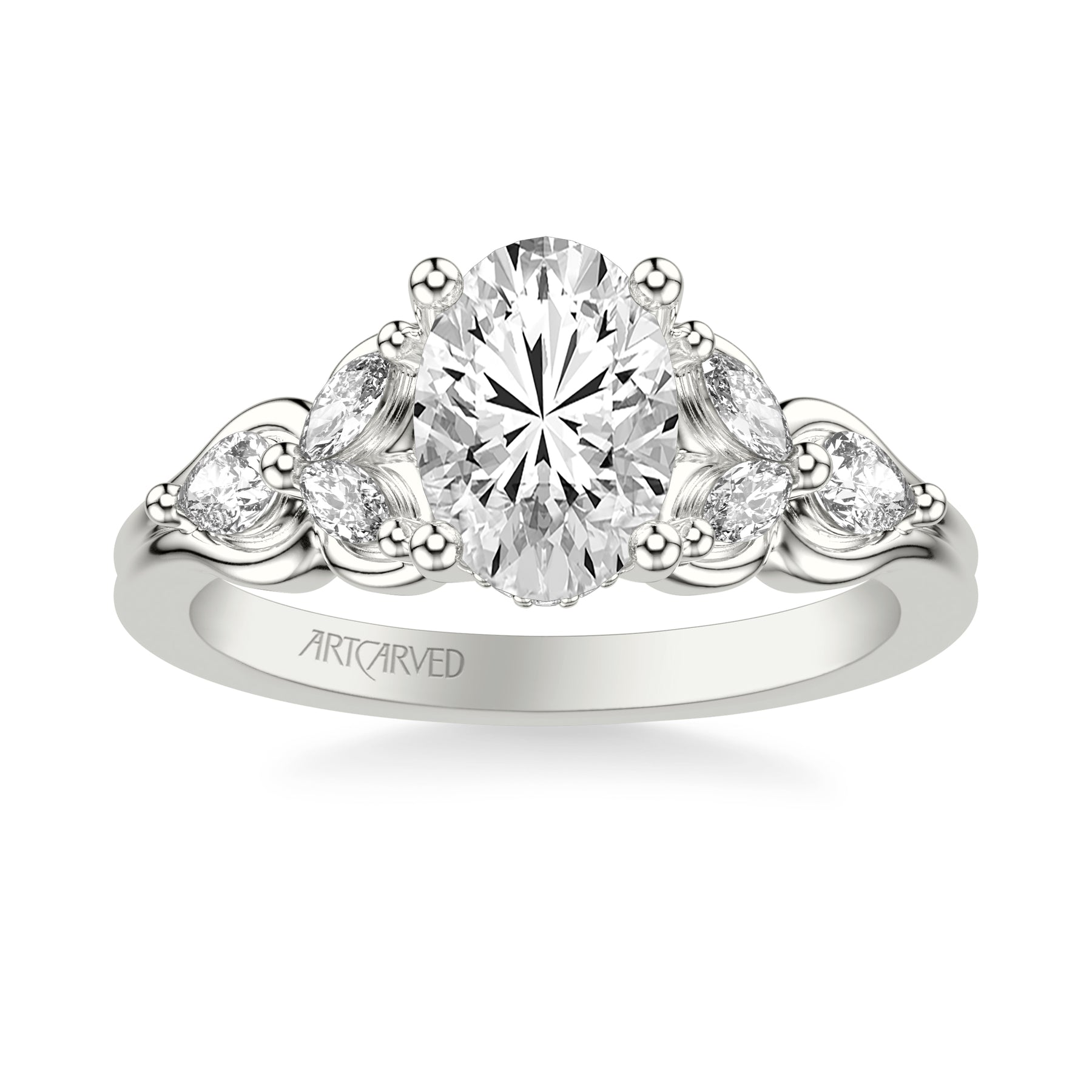31-V1077GRW-E.01 - ARTCARVED - Floral Engagement Ring with Bezel Set Marquise Diamond Petals and Pear Diamond Accents with Double Row Polished Shank