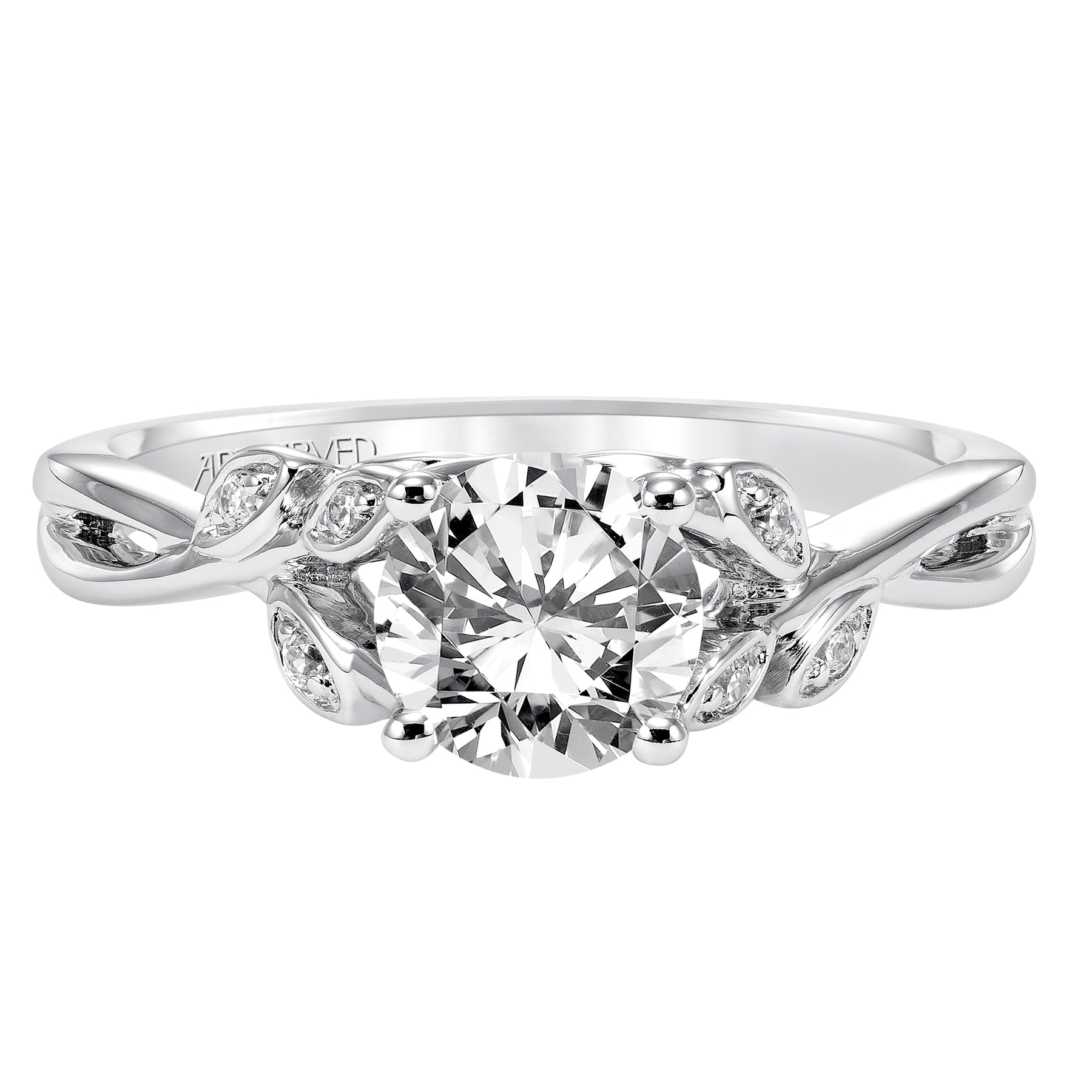 31-V317ECW-E.01 - ARTCARVED - Floral Engagement Ring with Hidden Diamond Petal Accents and Polished Bypass Shank
