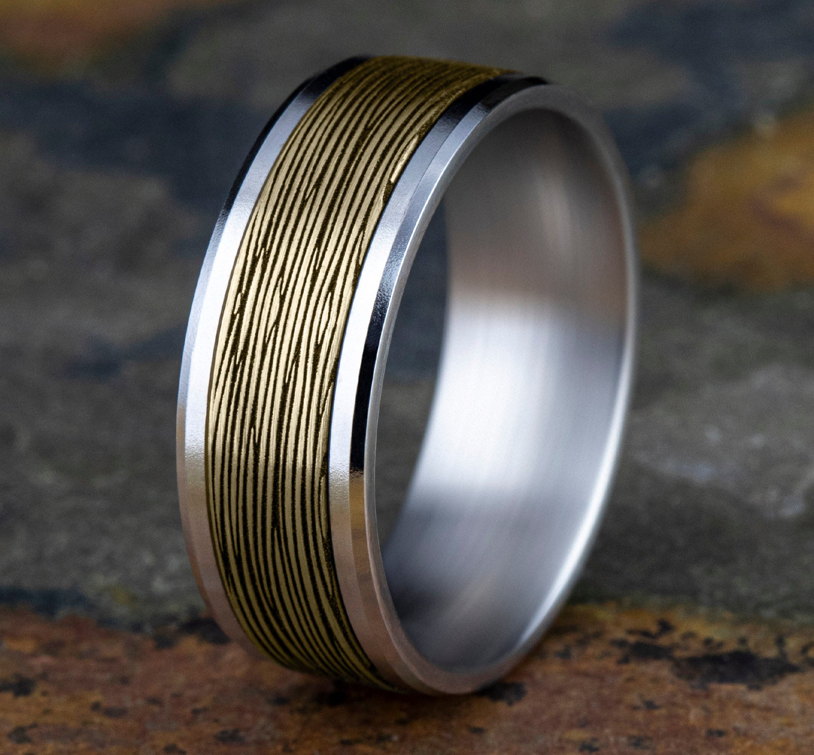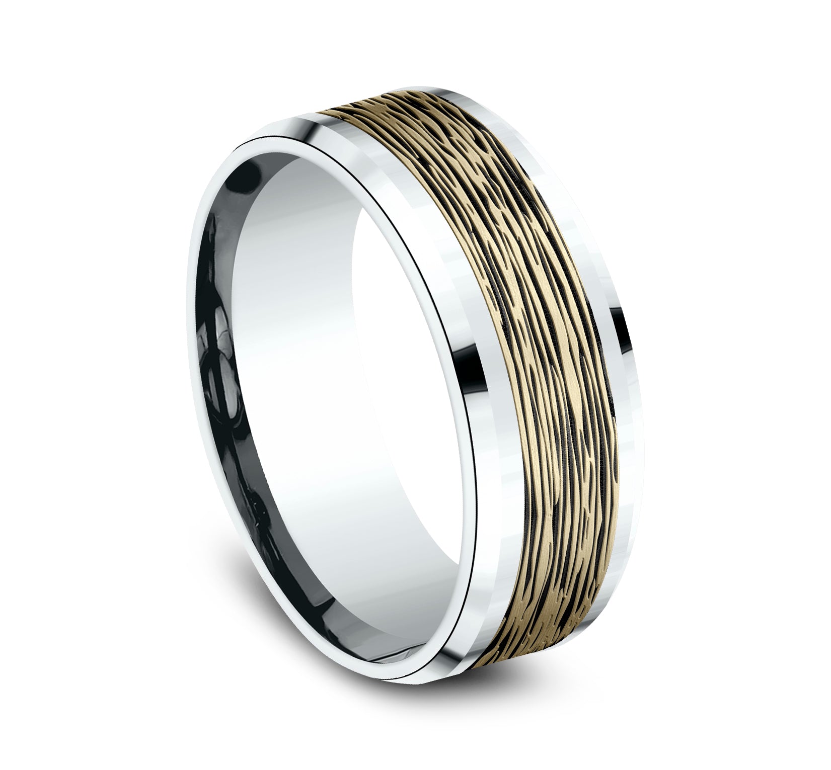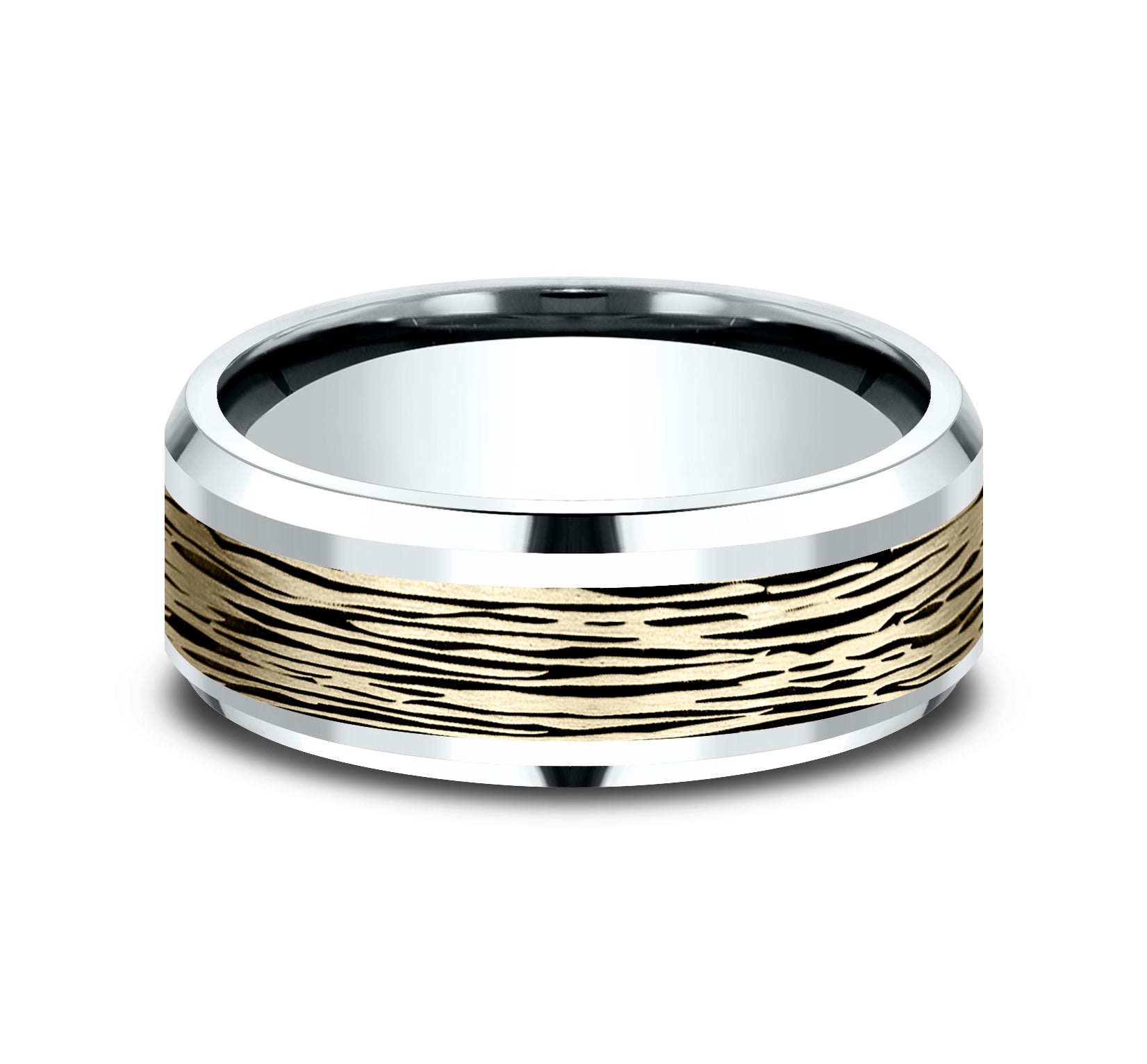 | Additional Description | 8mm, Comfort fit 14K White and Yellow Gold Horizontal bark pattern, polished bevel edges |