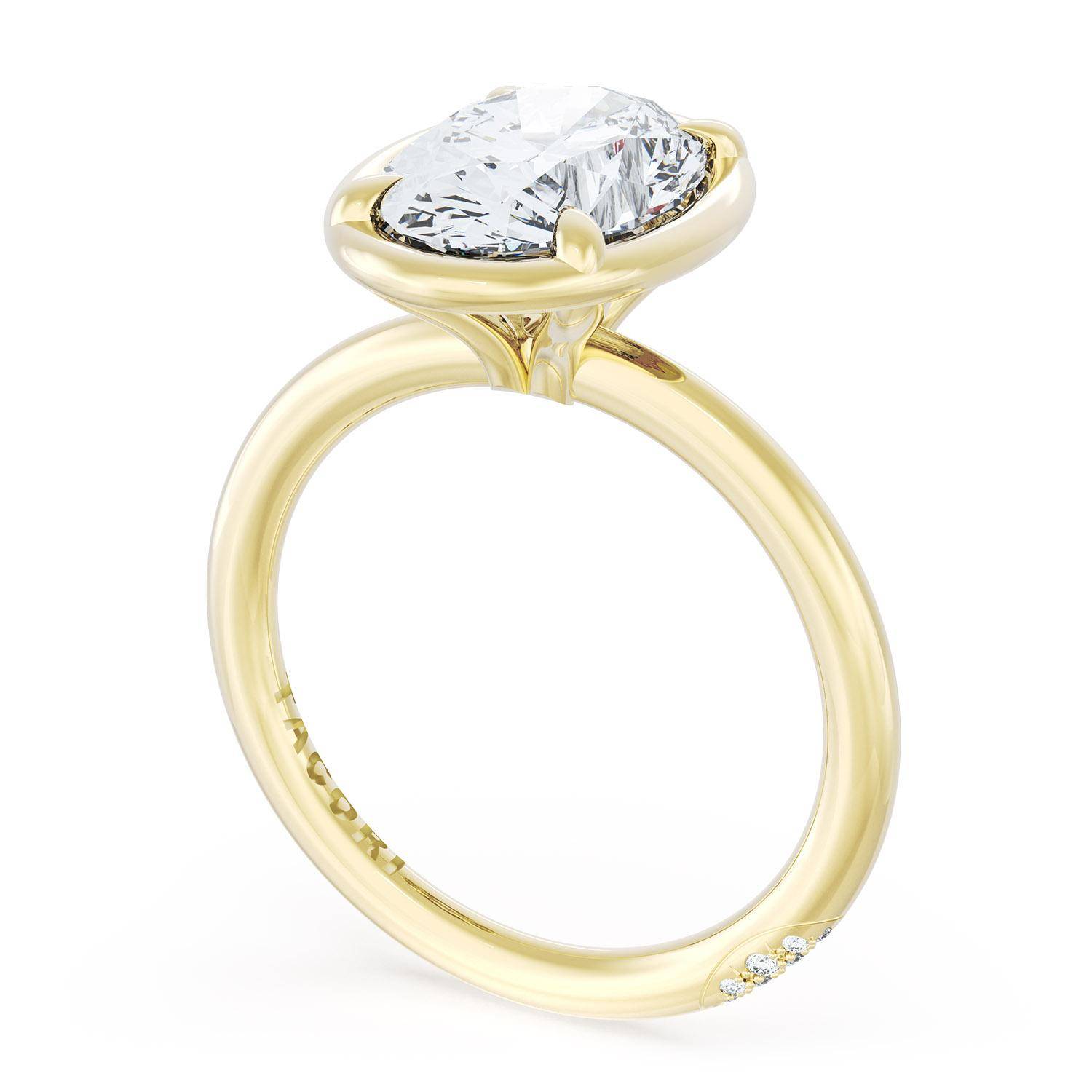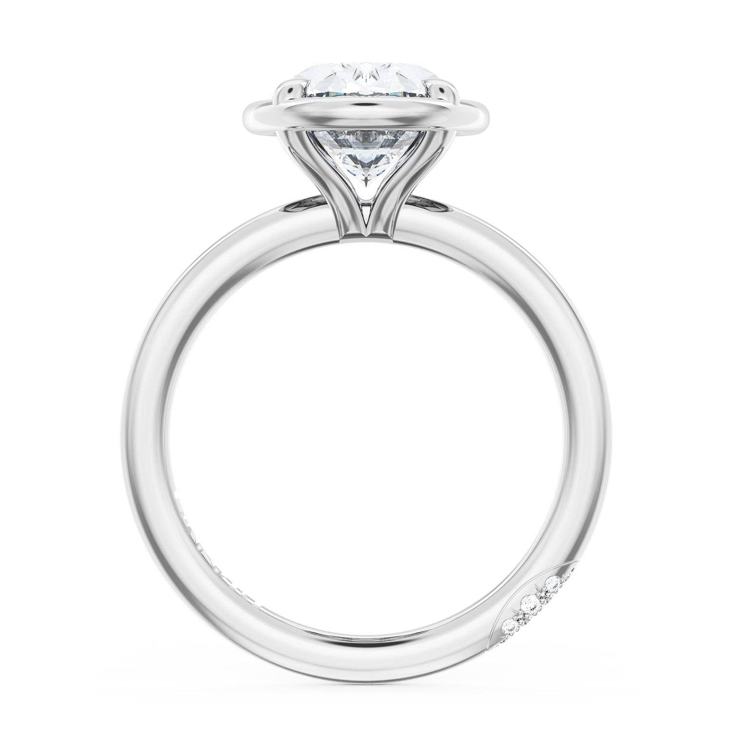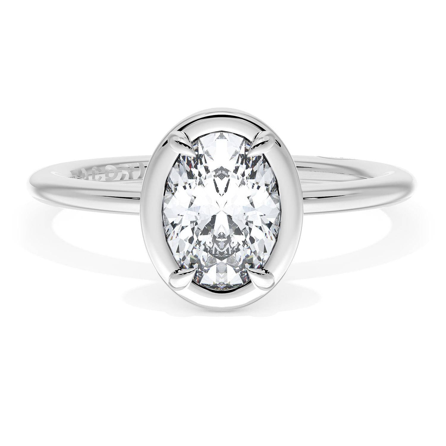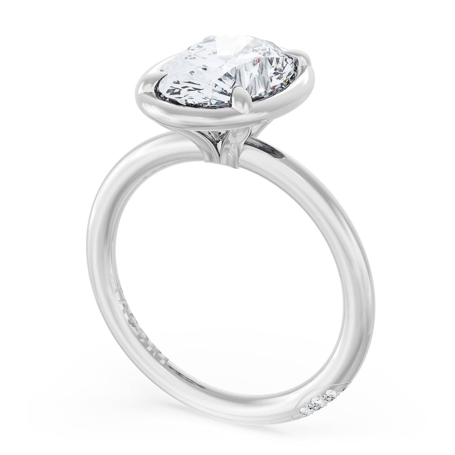 A Oval solitaire is elevated by a modern high polish crown. TACORI Crescents add hidden detail to the underside of the crown.
