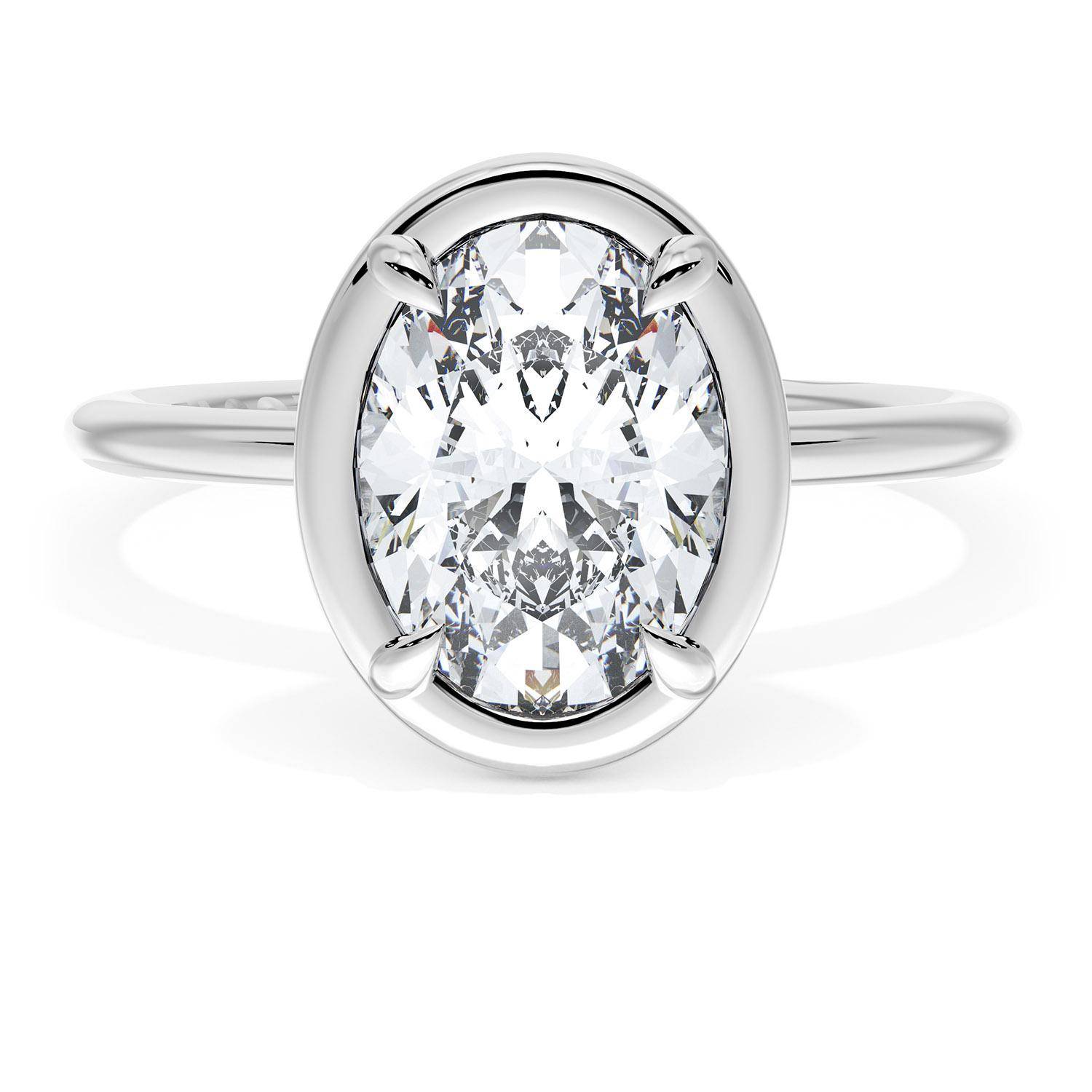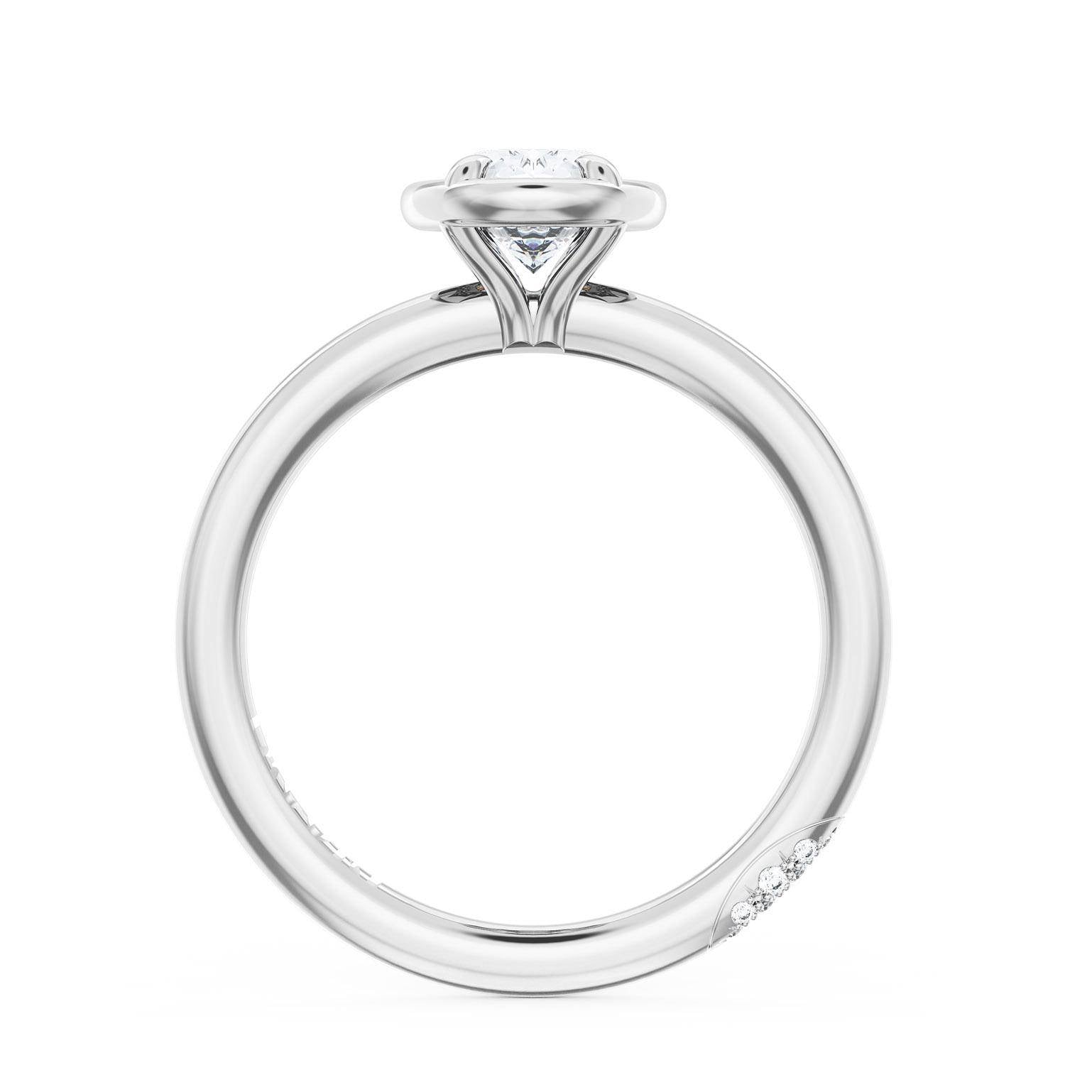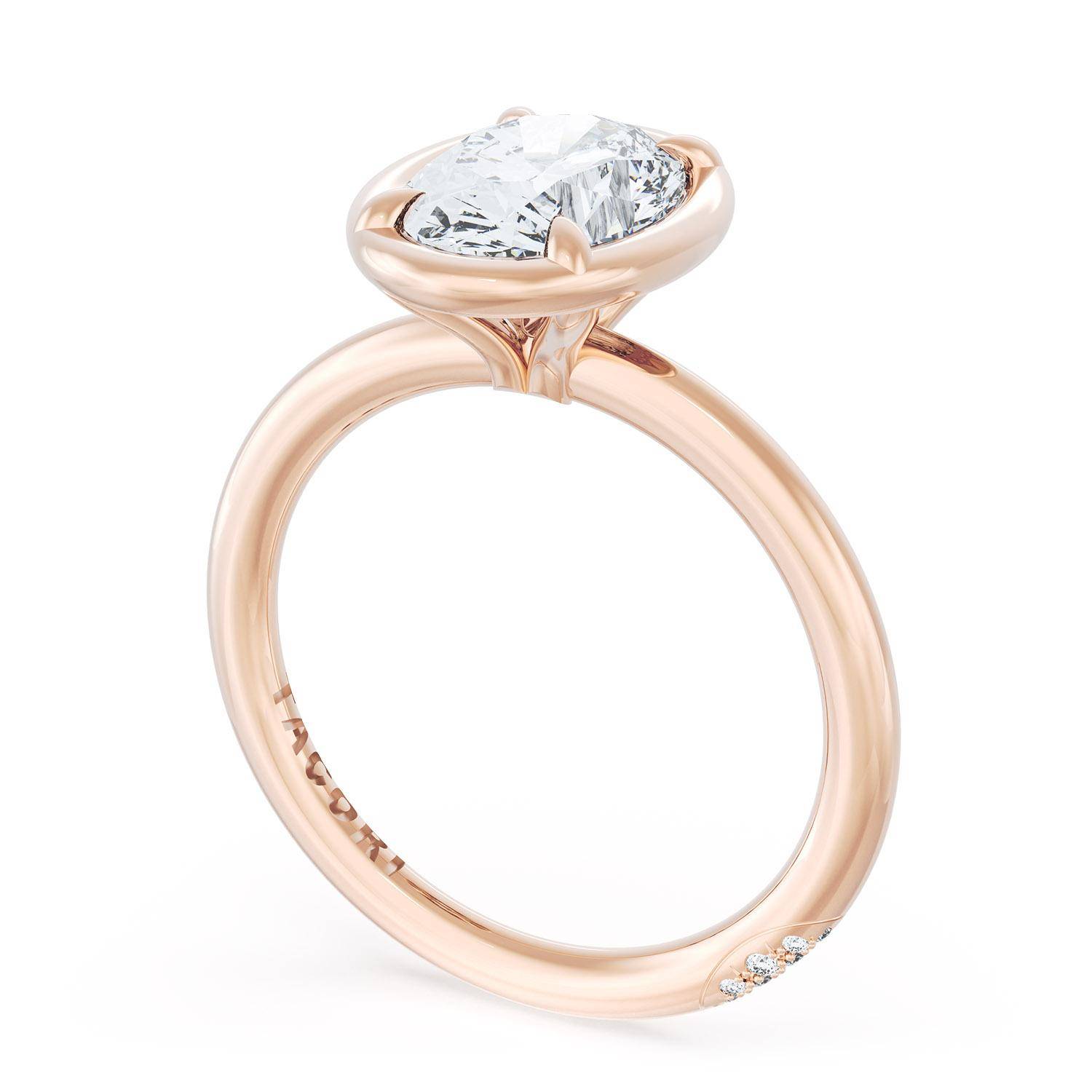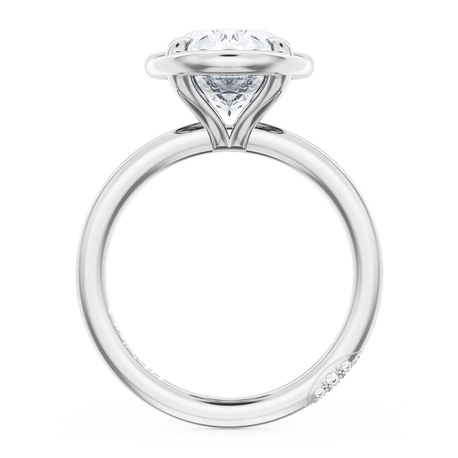 A Oval solitaire is elevated by a modern high polish crown. TACORI Crescents add hidden detail to the underside of the crown.