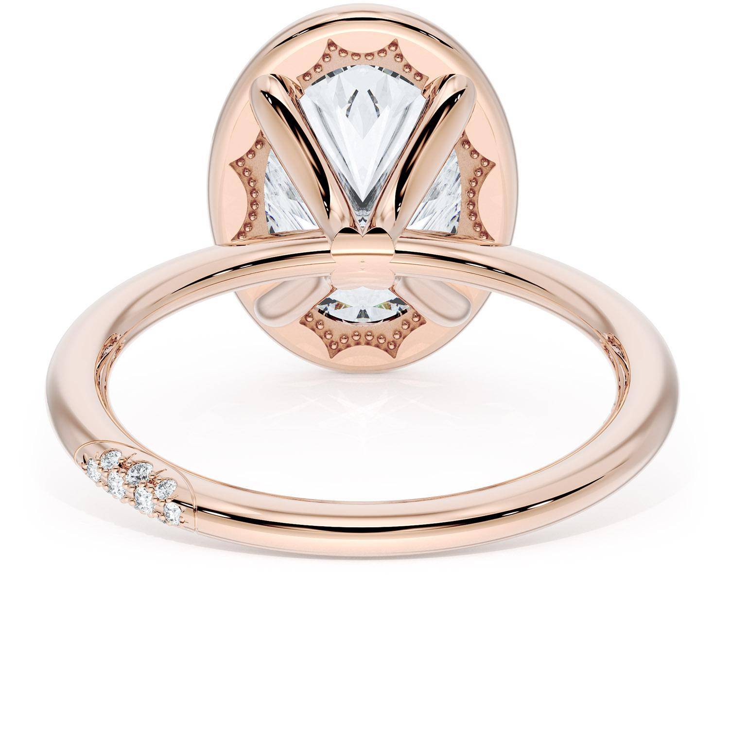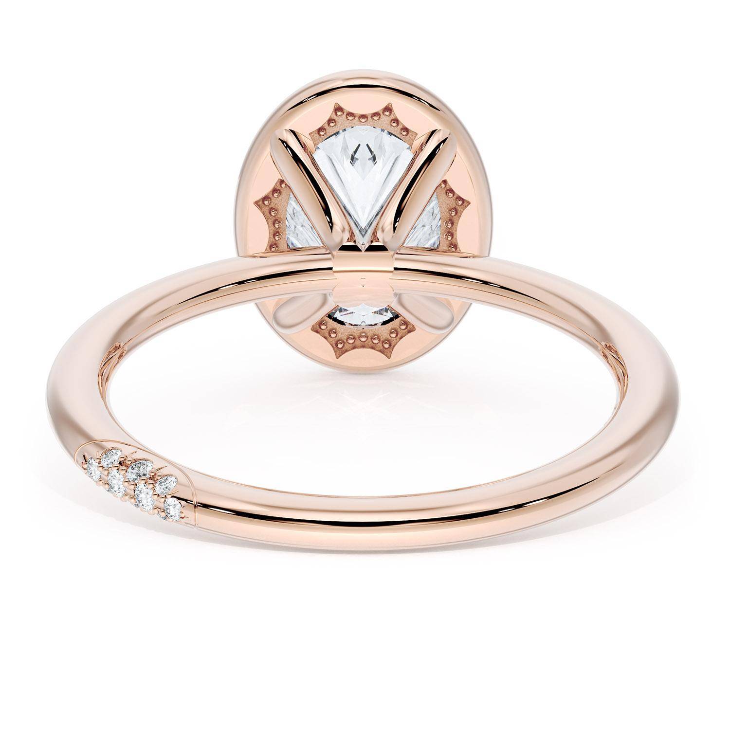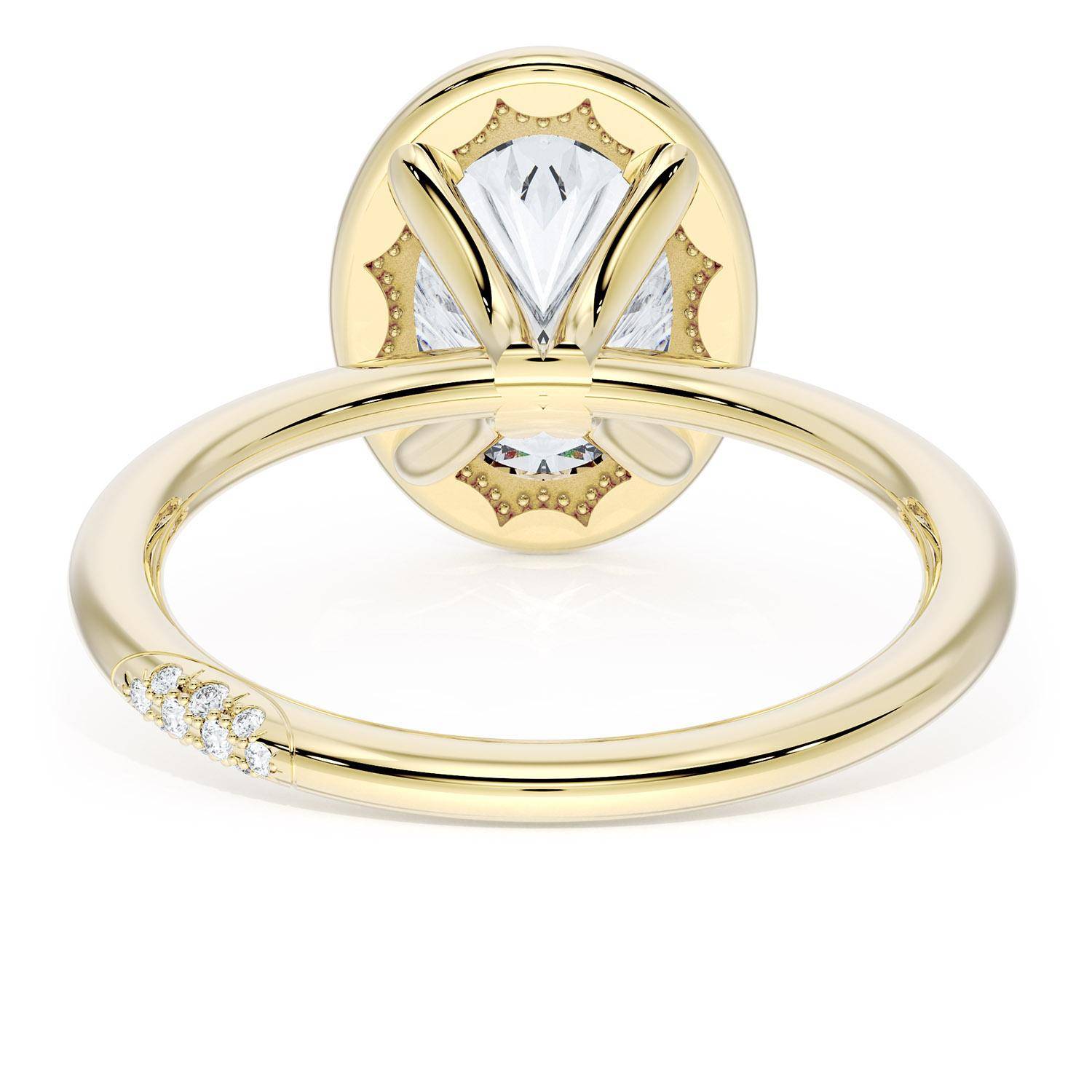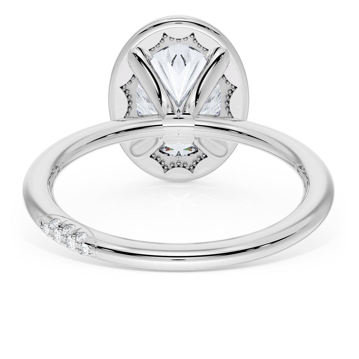 A Oval solitaire is elevated by a modern high polish crown. TACORI Crescents add hidden detail to the underside of the crown.