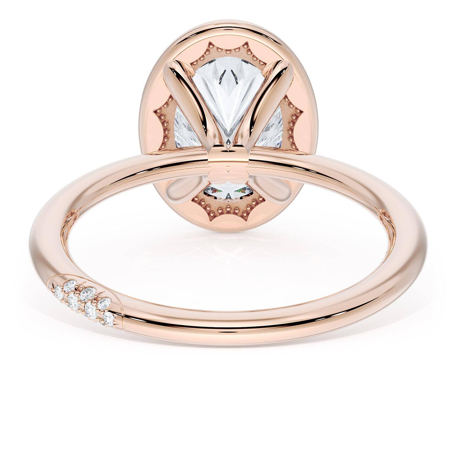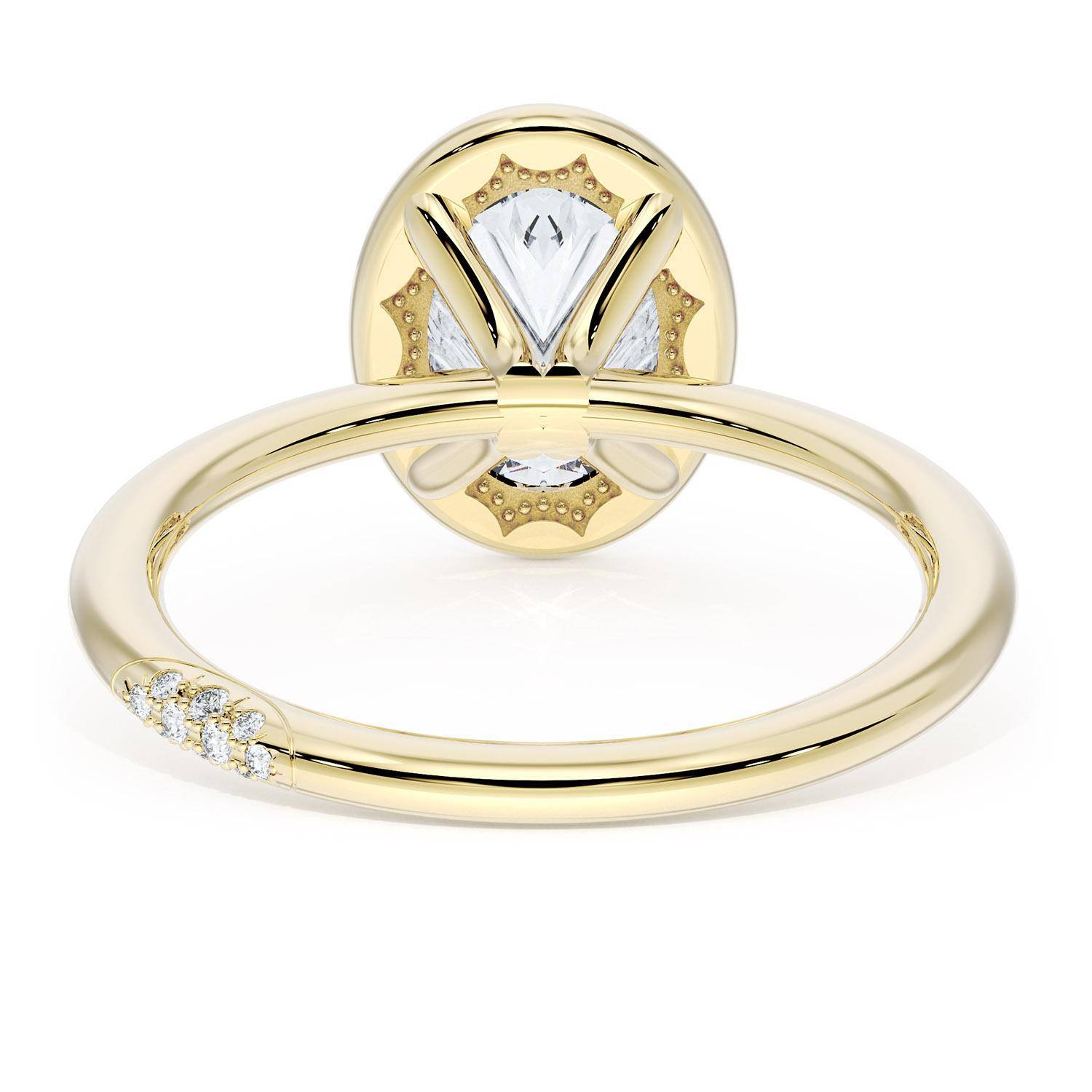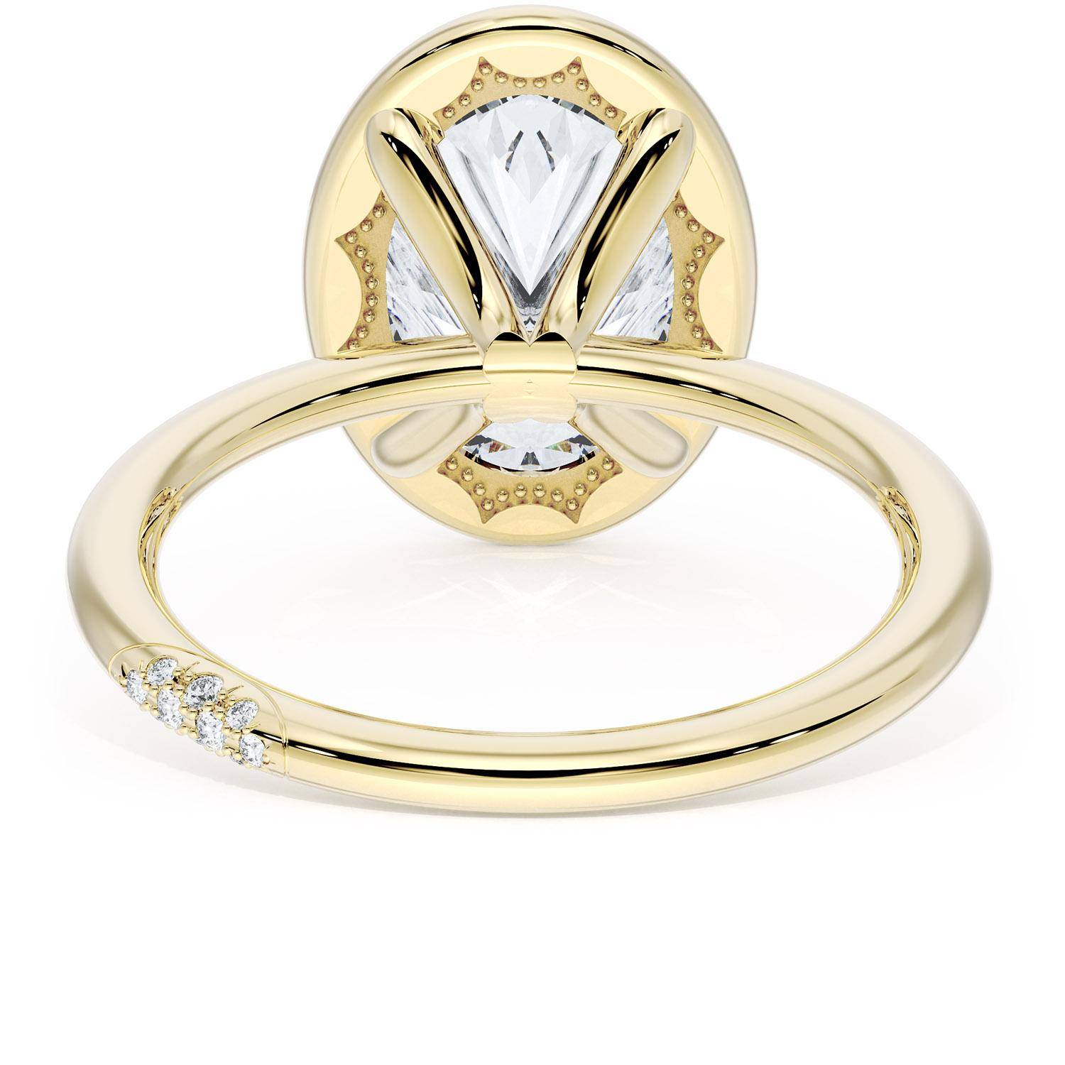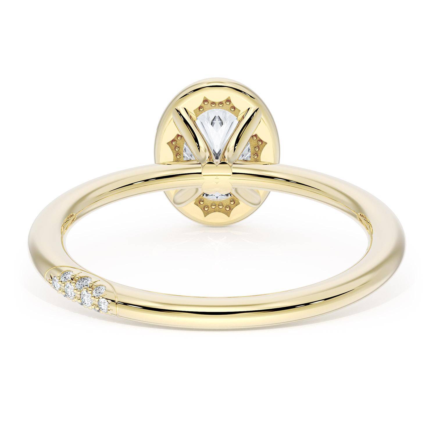 A Oval solitaire is elevated by a modern high polish crown. TACORI Crescents add hidden detail to the underside of the crown.