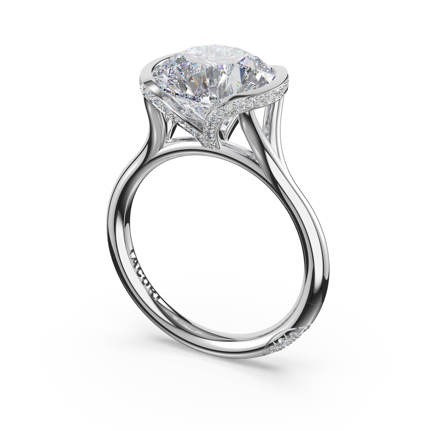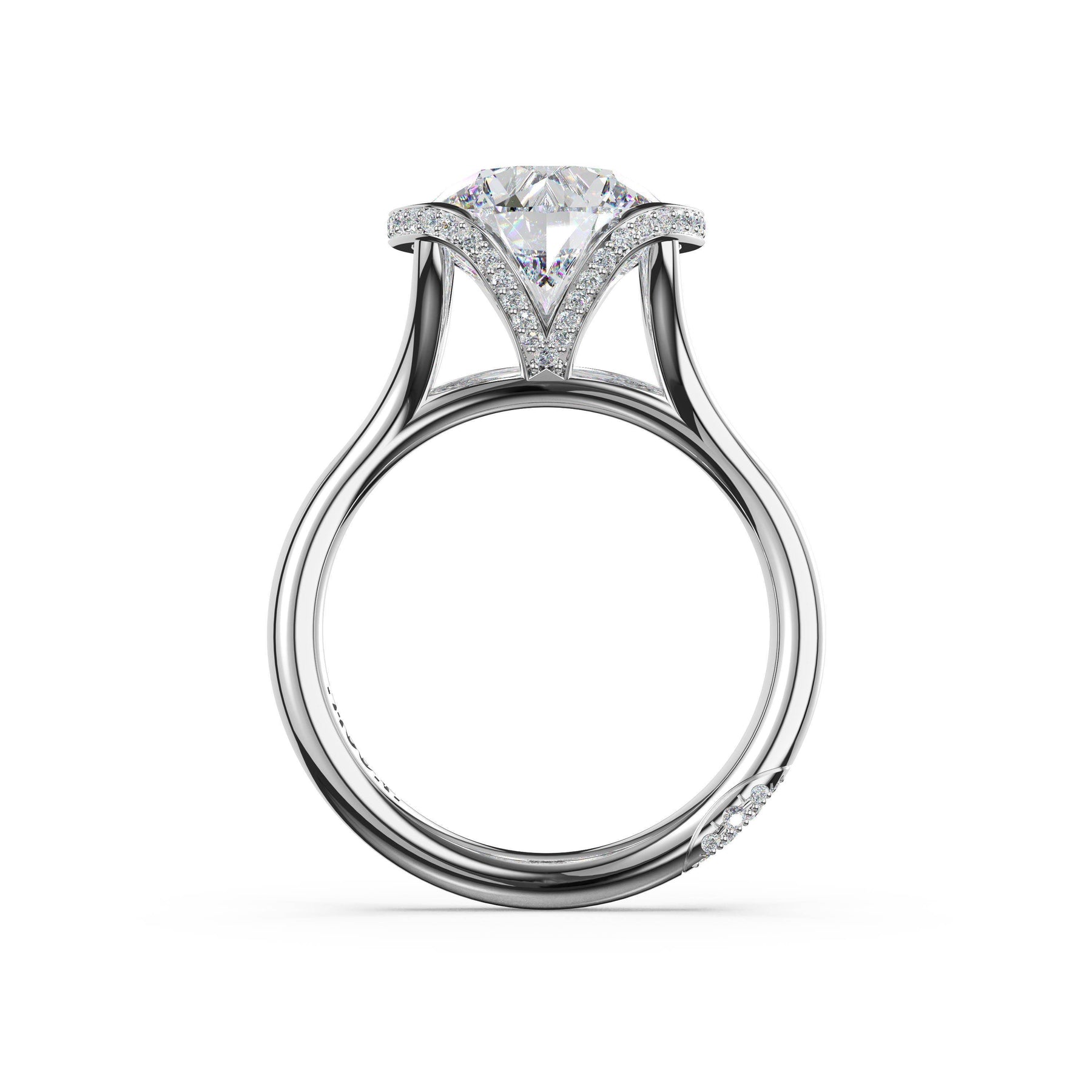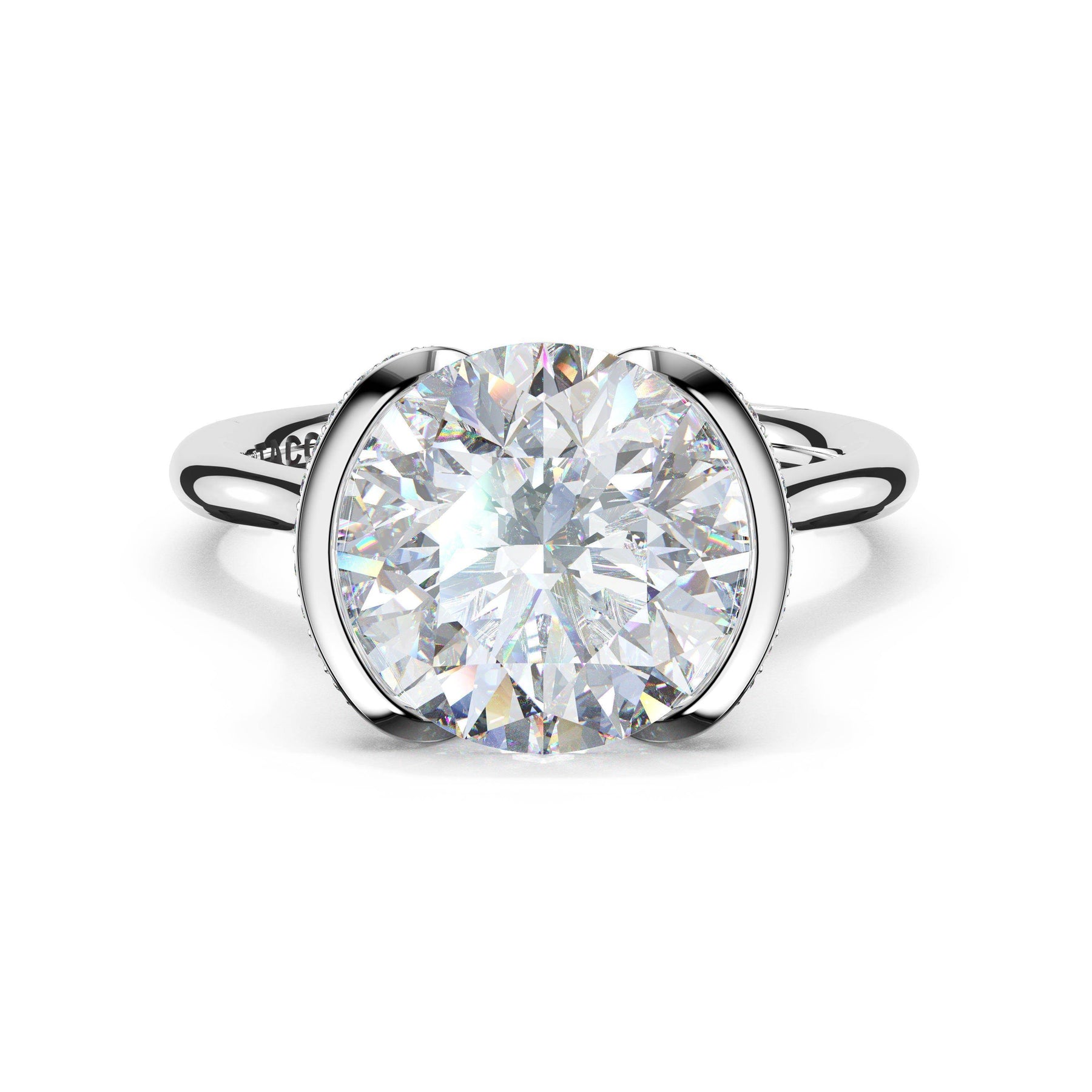 | Additional Description | A tapering pavé halo outlines the girdle of a horizontally-set round brilliant diamond. A diamond-studded Crescent accents the high-polish premium metal band. |