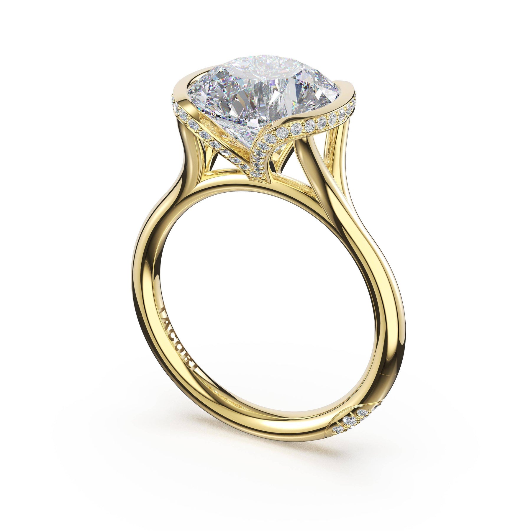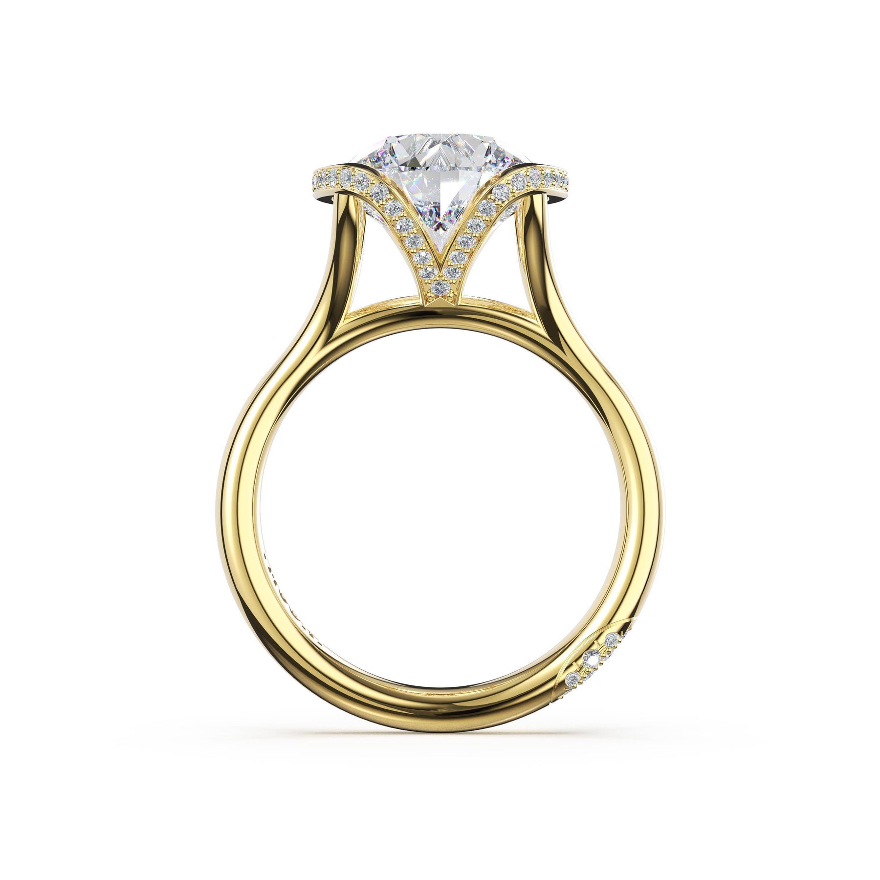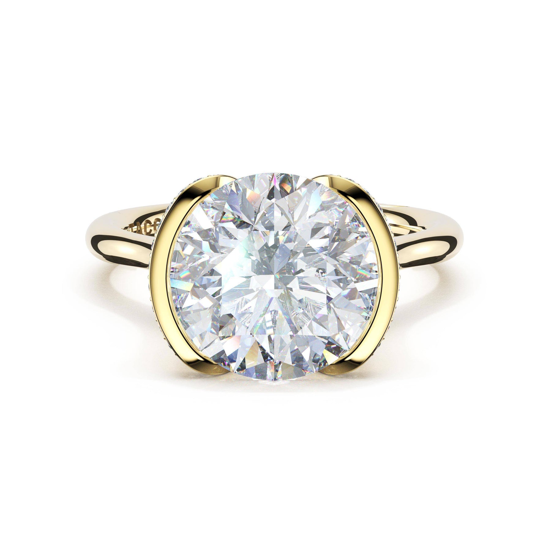| Additional Description | A tapering pavé halo outlines the girdle of a horizontally-set round brilliant diamond. A diamond-studded Crescent accents the high-polish premium metal band. |