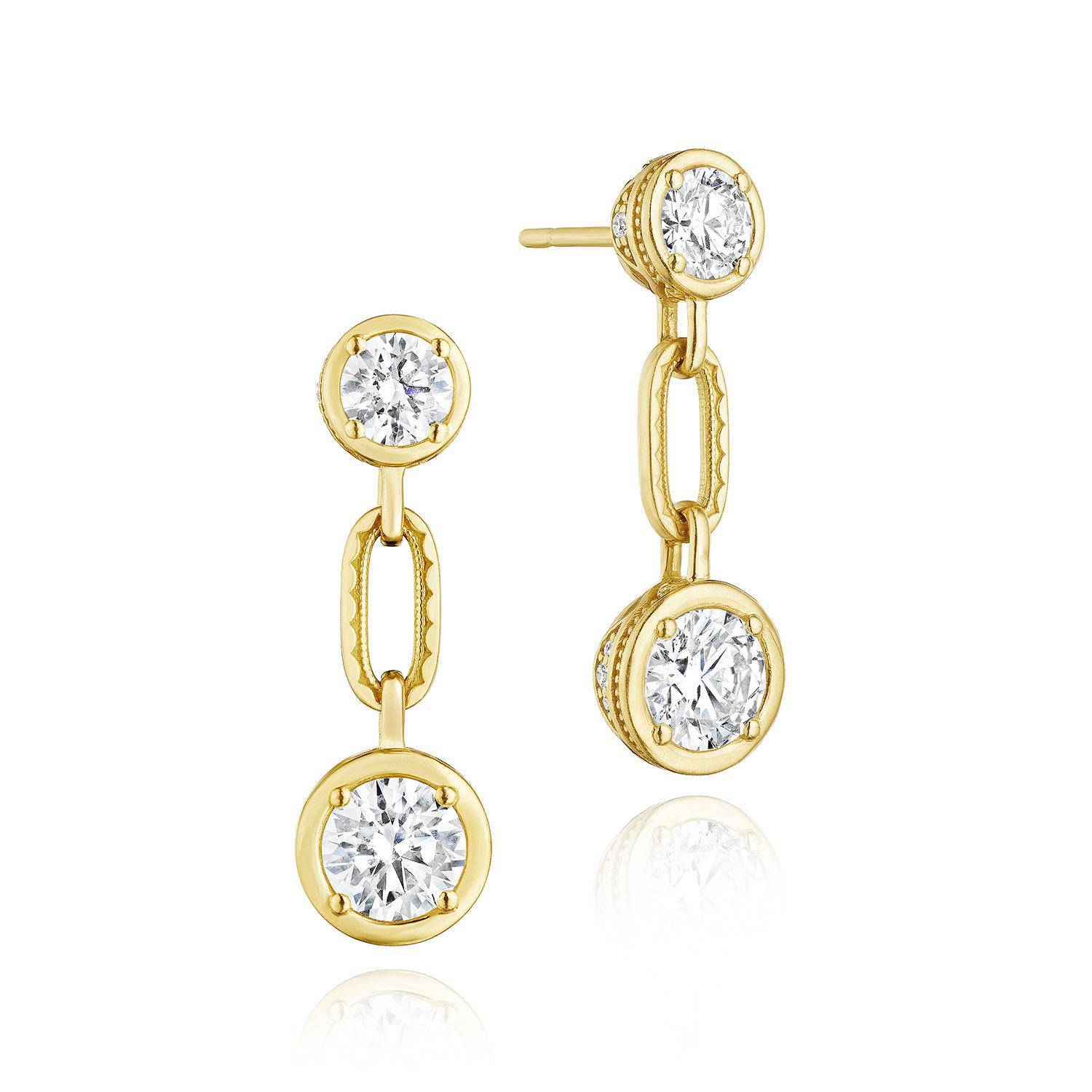 | Additional Description | Bezel set round brilliant diamonds drop an 18k gold link decorated with delicate Crescent detail. |