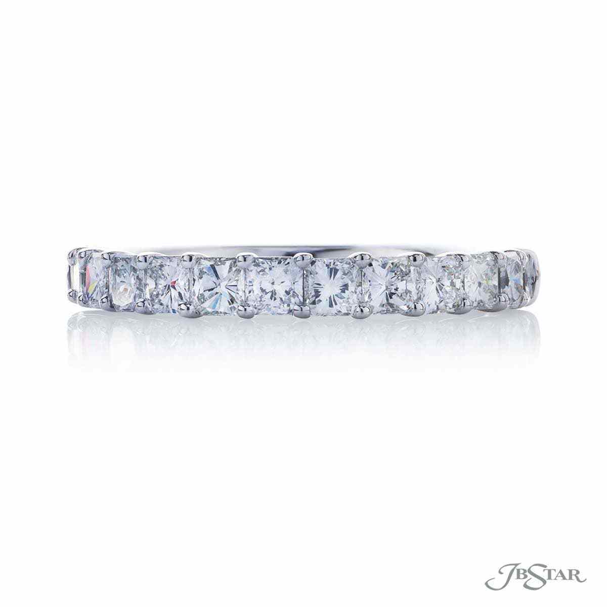 Additional Description Dazzling diamond wedding band featuring 12?radiant cut diamonds in a shared prong setting. Handcrafted in pure platinum.