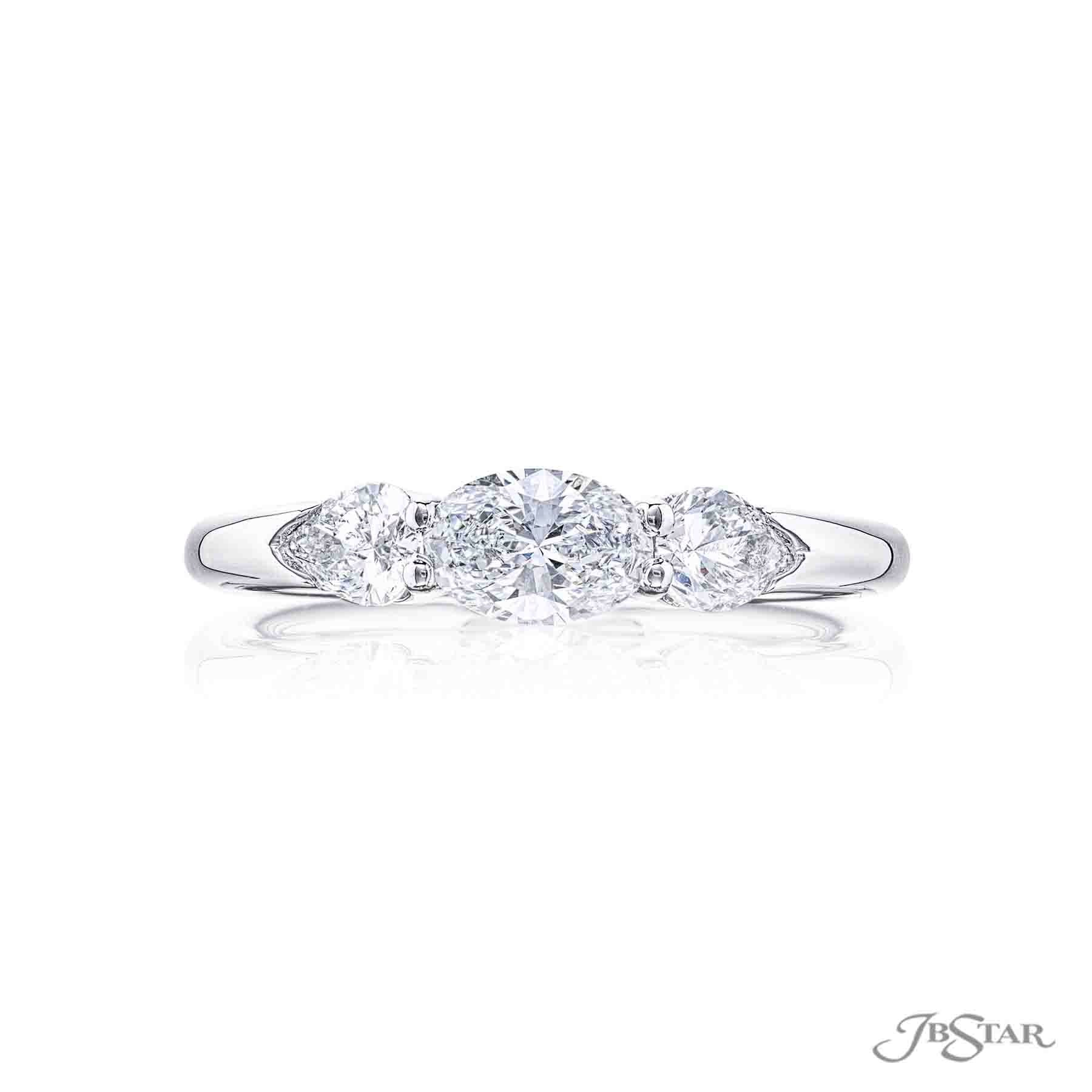 | Additional Description | Dazzling diamond engagement ring featuring a 0.52 ct. GIA certified oval diamond center embraced by two pear shaped diamonds. Handcrafted in pure platinum. |