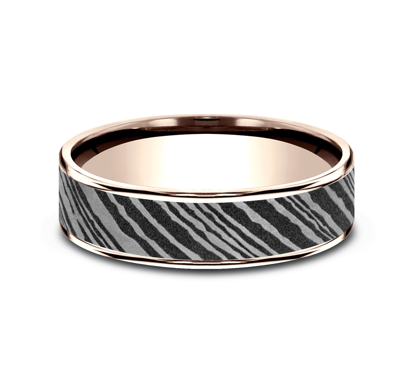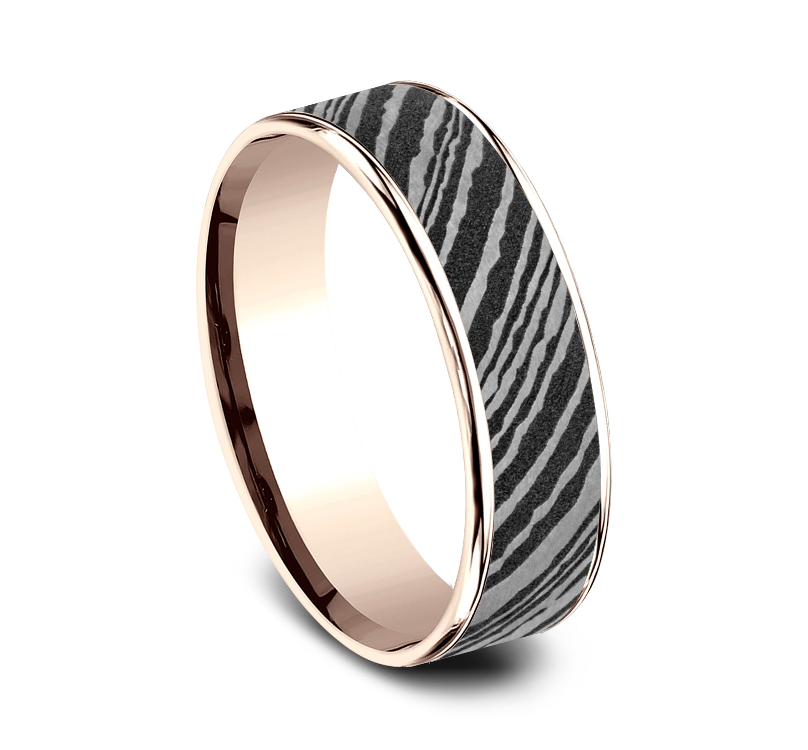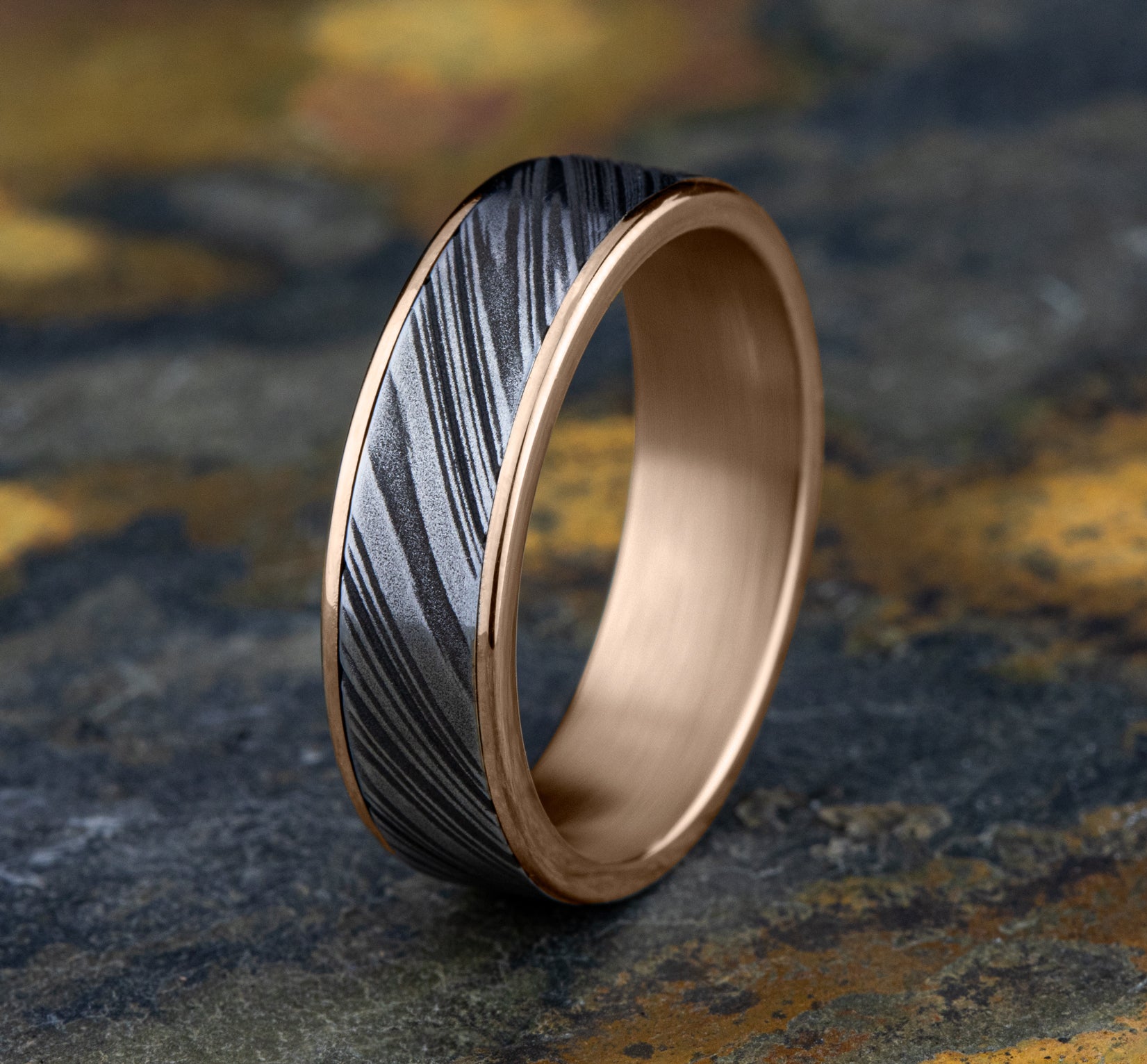| Additional Description | 6.5mm, Comfort fit 14K Rose Gold and Damascus Steel Damascus steel center, thin polished edges |