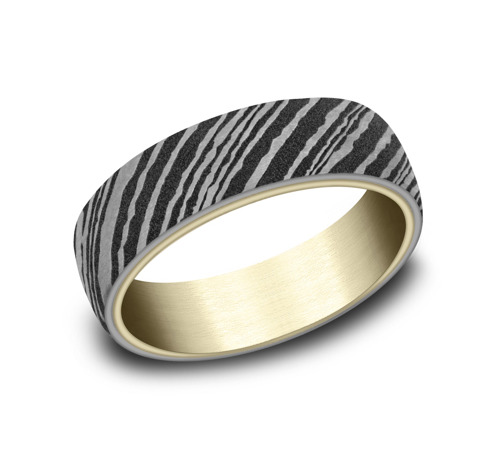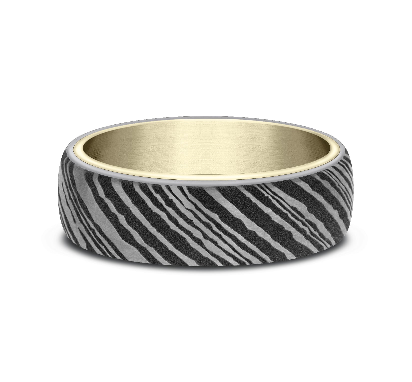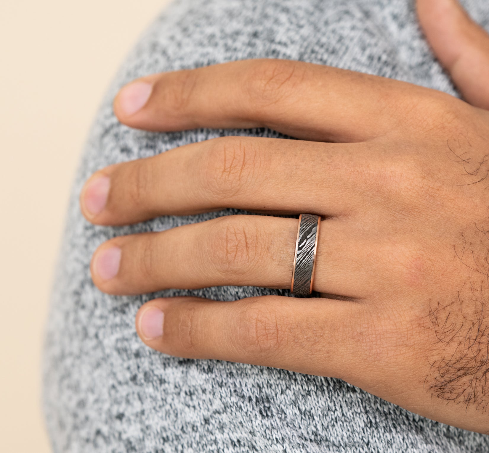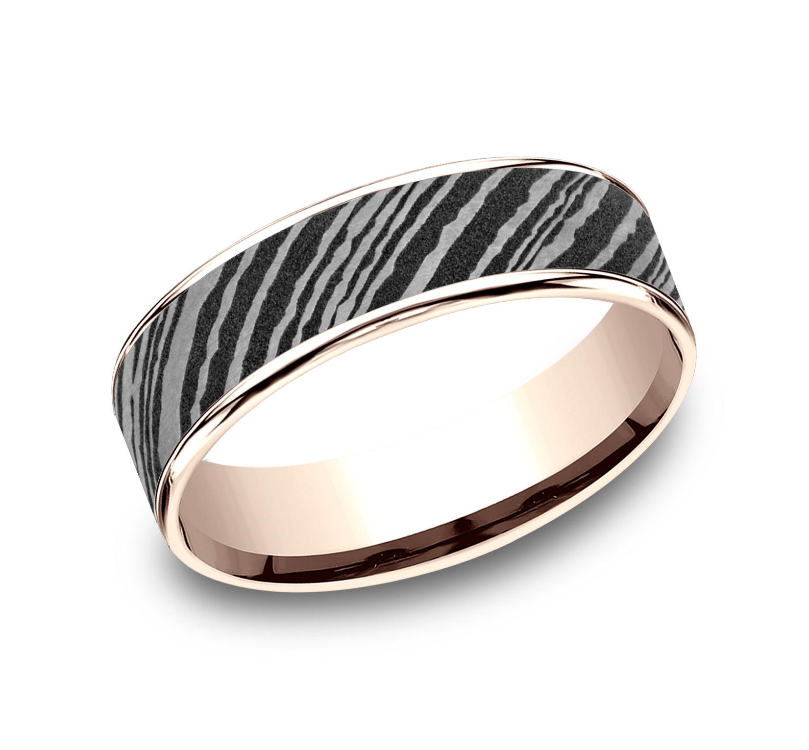 | Additional Description | 6.5mm, Comfort fit 14K Rose Gold and Damascus Steel Damascus steel center, thin polished edges |