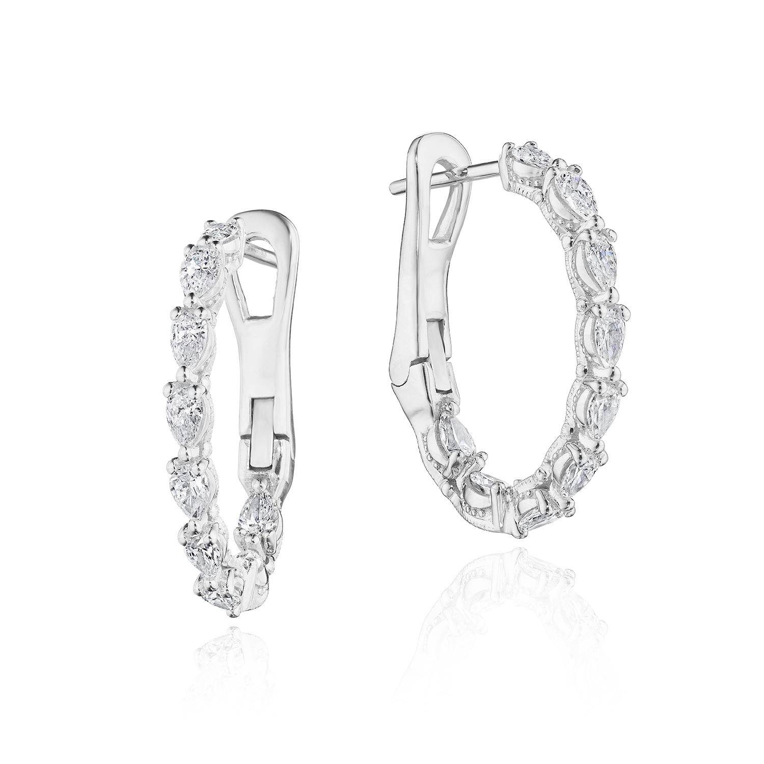 | Additional Description | Oval hoop earrings of 18k White Gold are meticulously hand-set with pear cut diamonds. Milgrain-studded TACORI Crescent detailing decorates the silhouette. |