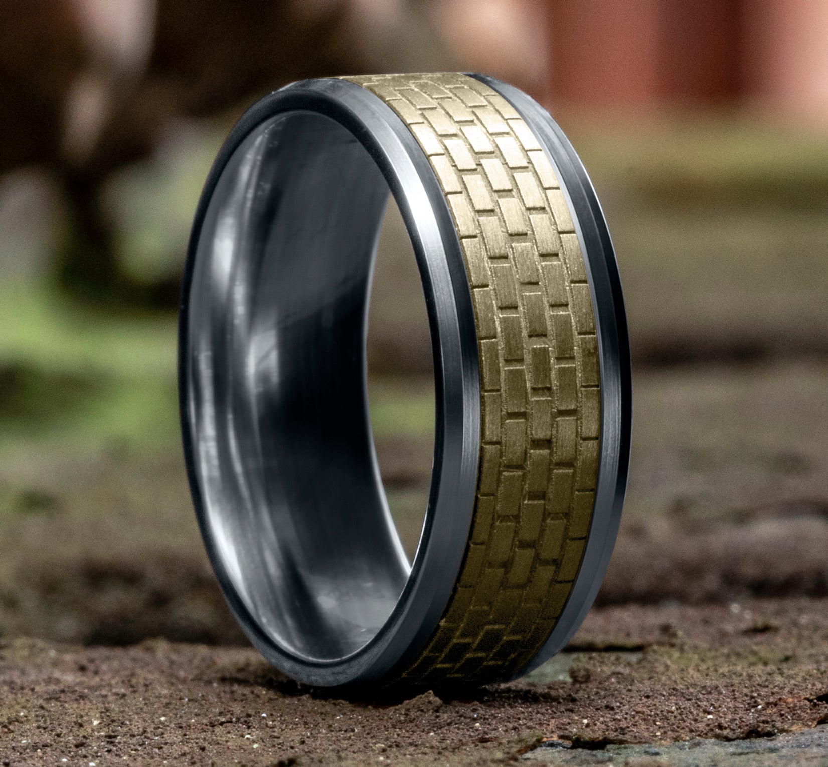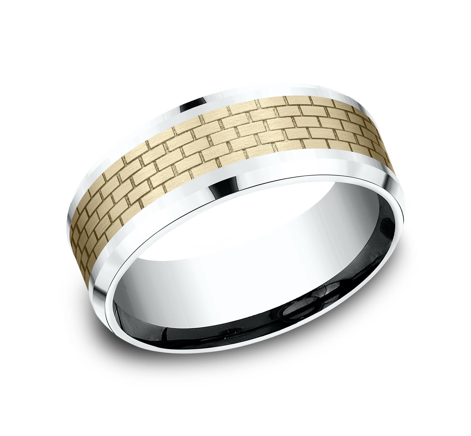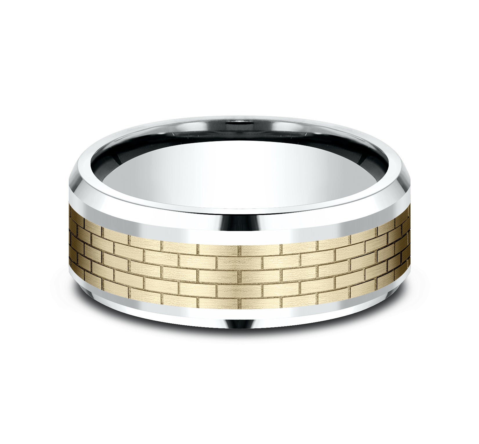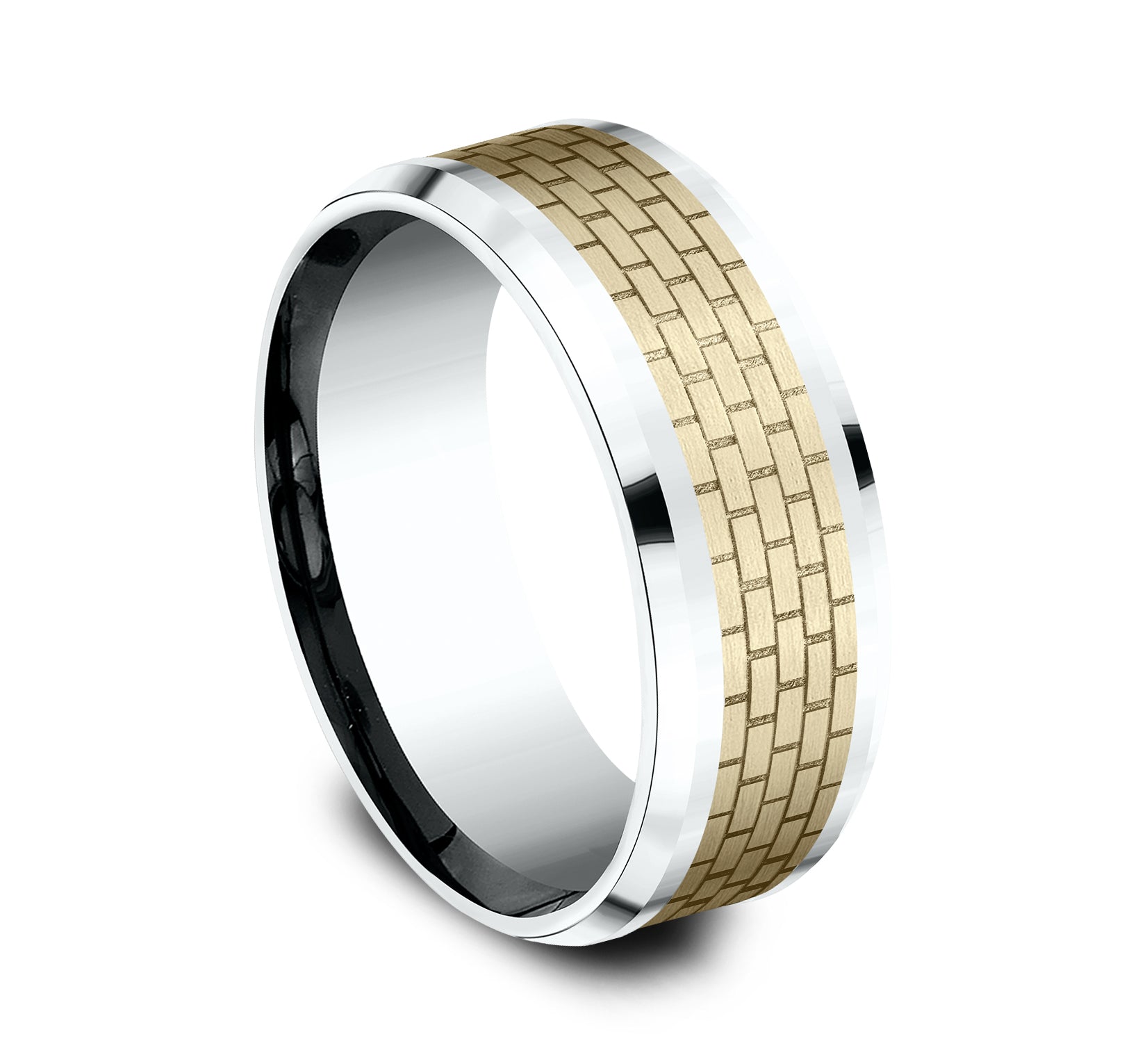 | Additional Description | 8mm, Comfort fit 14K White and Yellow Gold Brick wall patterned center, polished bevel edges |