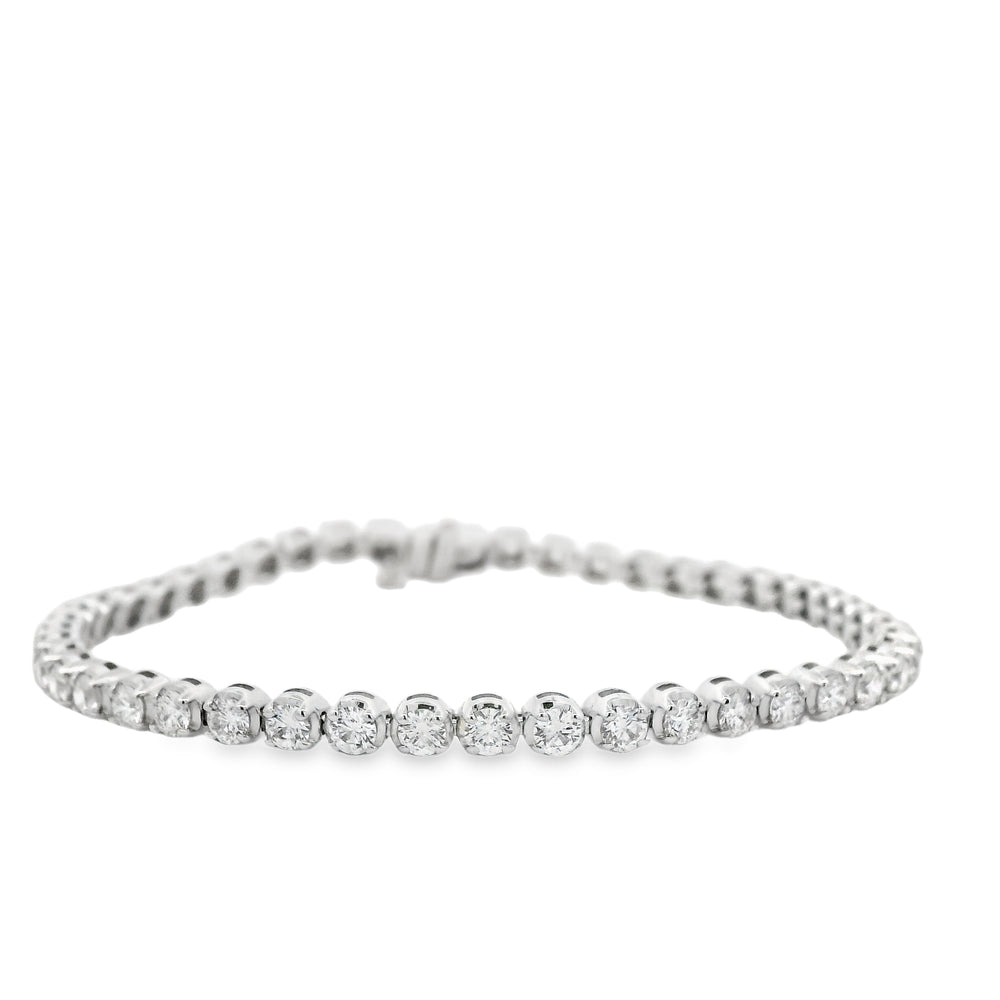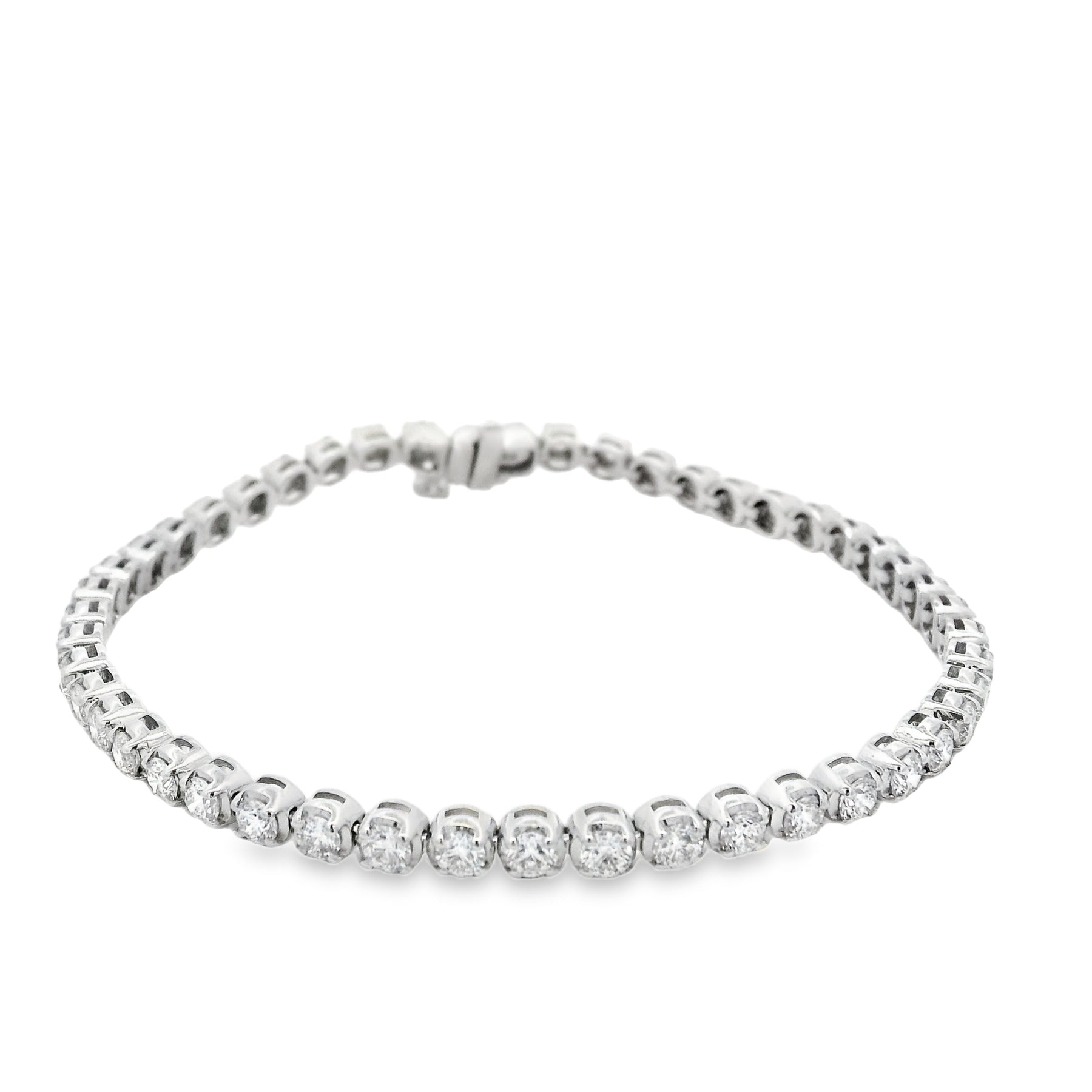 This exquisite tennis bracelet showcases a 3.96 carat total weight set in 18K white gold. Crafted to embody luxurious brilliance, its flawless design enhances any ensemble with a shimmering elegance. Perfect for those who seek refined opulence, this bracelet offers a captivating sparkle that elevates your style with every wear.