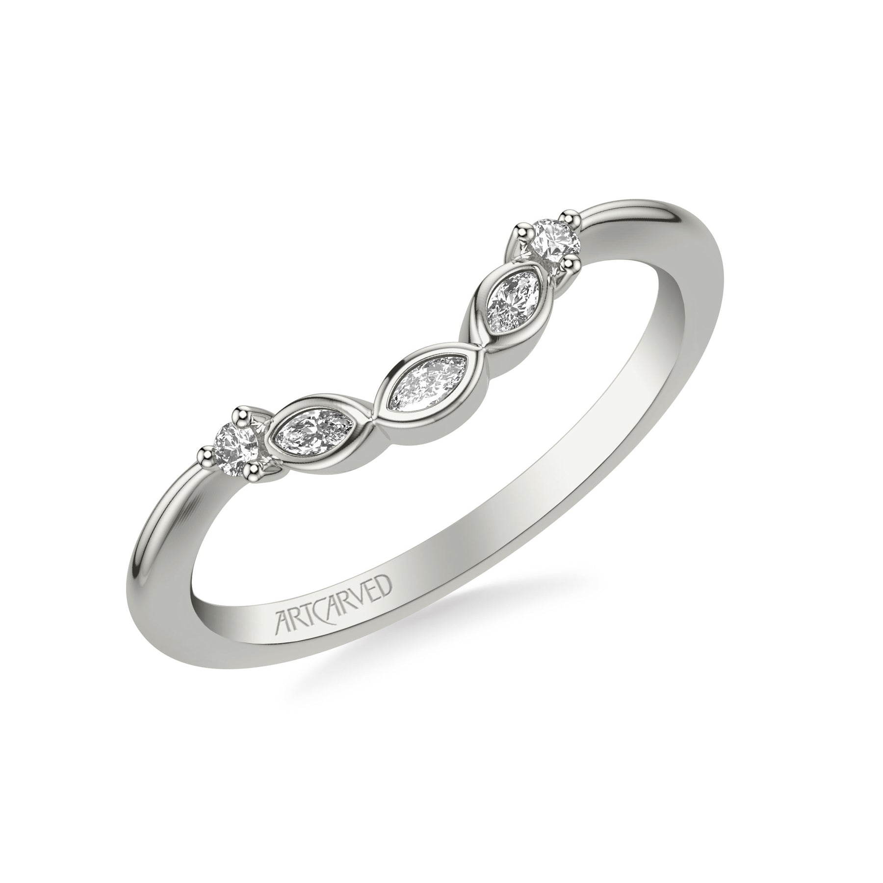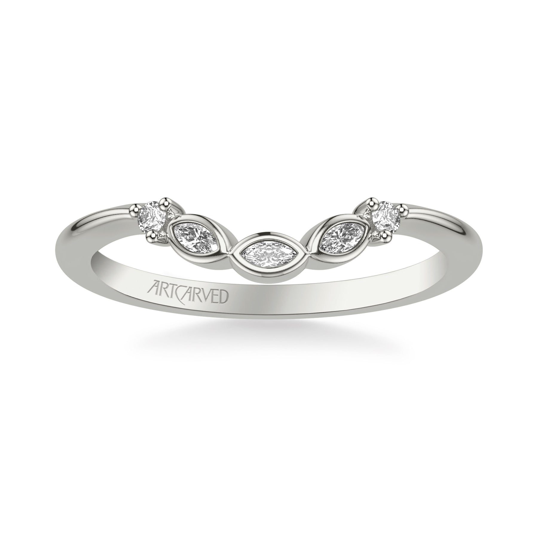 31-V1031EVW-L.00 - ARTCARVED - Floral Curved Wedding Band with Bezel Set Marquise Diamond Petal Accents