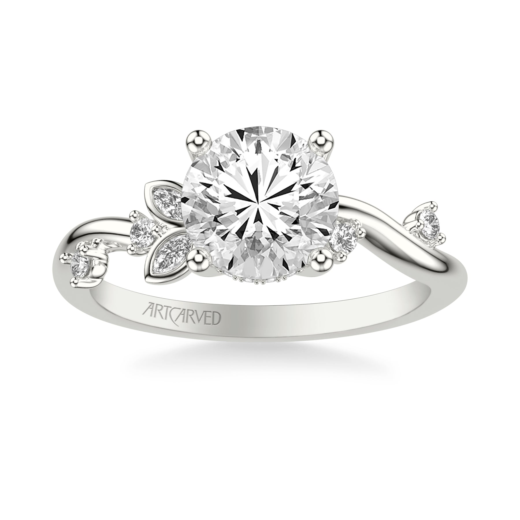31-V1034DVW-E.01 - ARTCARVED - Floral Engagement Ring with Asymmetrical Marquise Diamond Petals and Round Floating Diamond Accent Shank