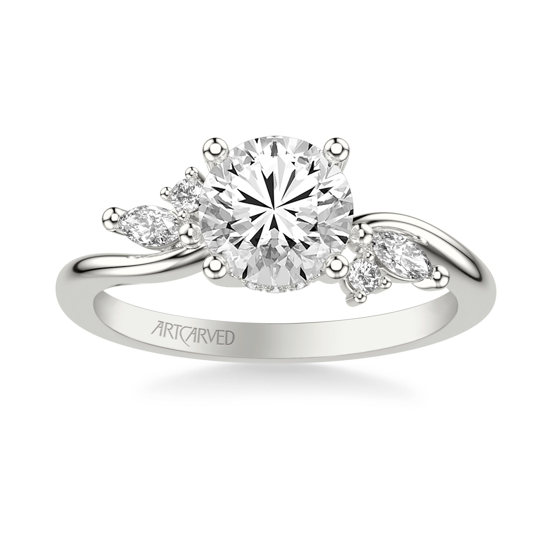 31-V1083GRW-E.01 - ARTCARVED - Floral Engagement Ring with Prong Set Marquise and Round Diamond Accents and Bypass Polished Shank