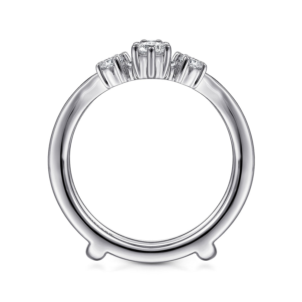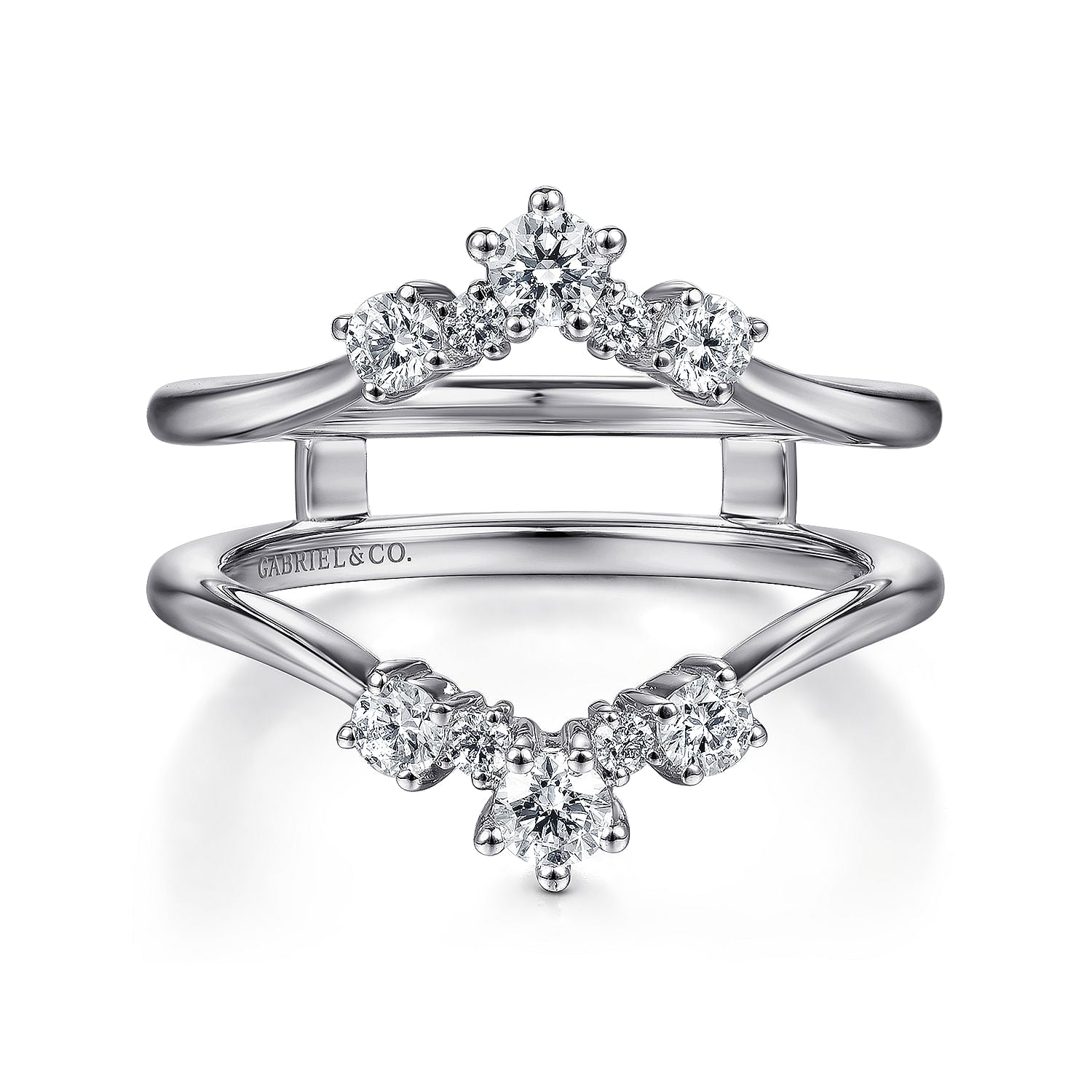 Nestle the sparkling center stone of your existing engagement ring between two gently curving strands of brilliant round diamonds. Set on tapered ribbons of polished 14k white gold, this .47ct diamond ring enhancer offers a truly elegant upgrade.