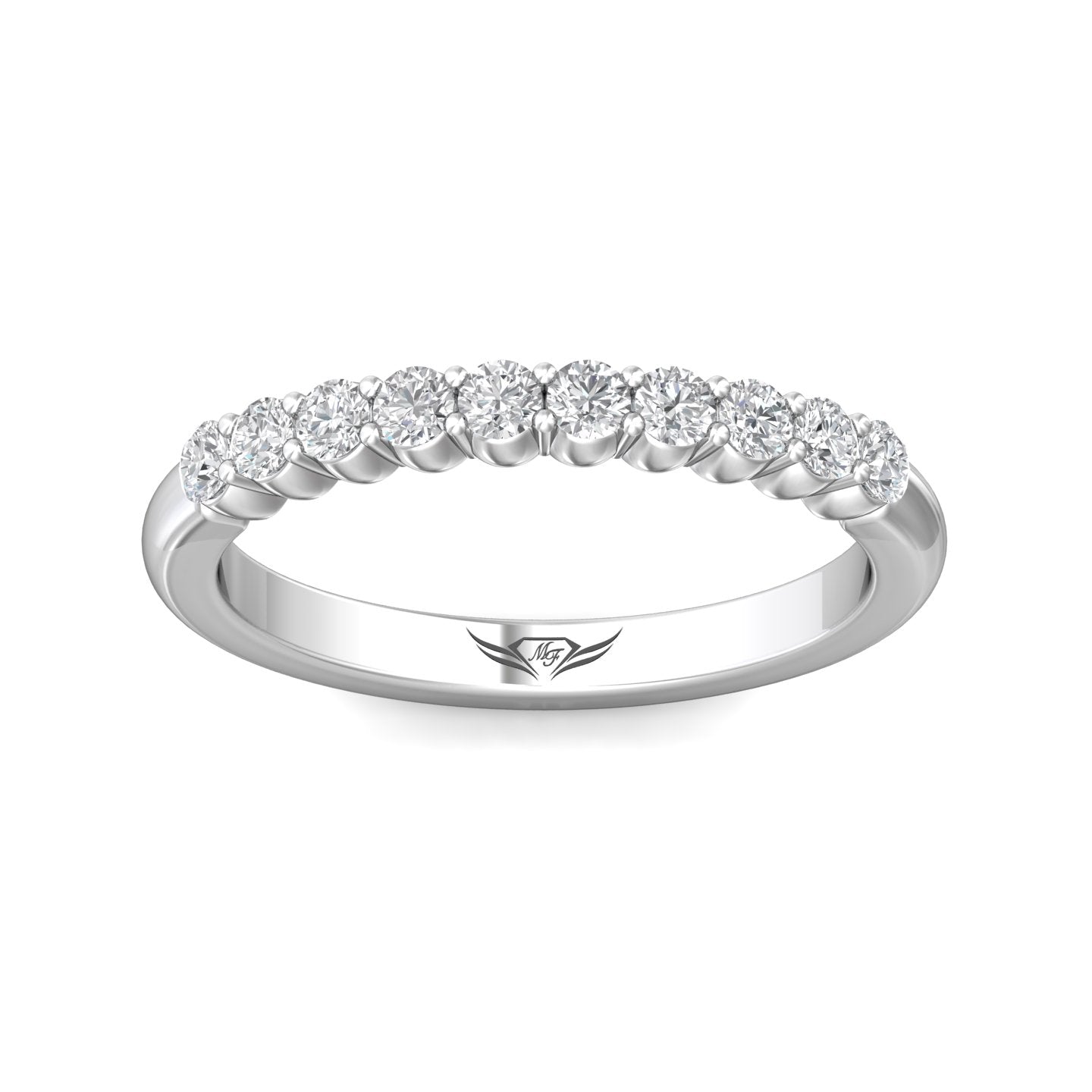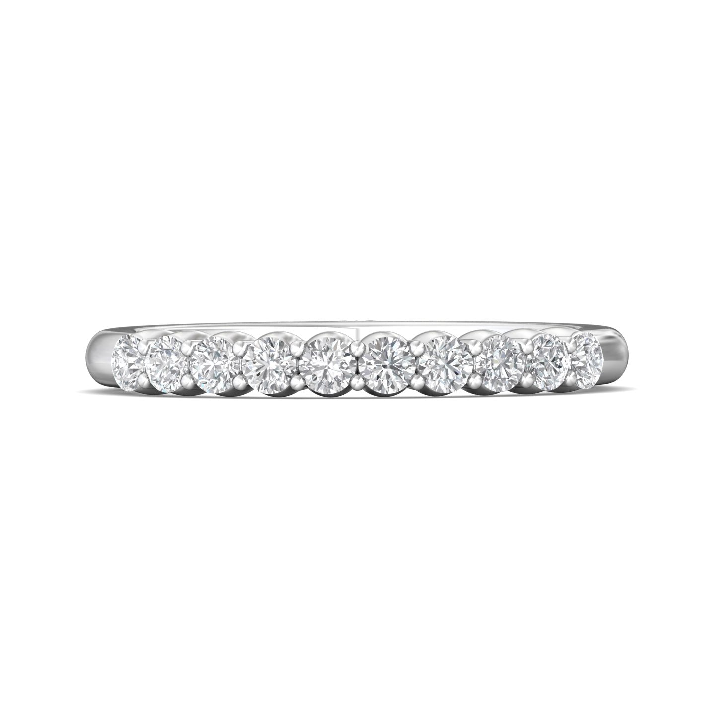 | Additional Description | Sophisticated and elusive, this diamond eternity ring in Platinum showcases a semi-circle of channel set diamonds for intense sparkle, perfect as a wedding or anniversary ring. |