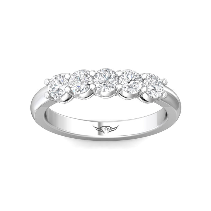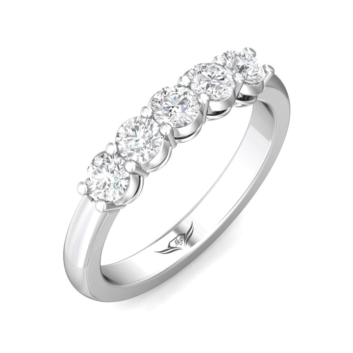 | Additional Description | Shimmering round brilliant diamonds are perfectly matched in this FlyerFit shared prong wedding band . A petite diamond band ideal for a perfect engagement ring |