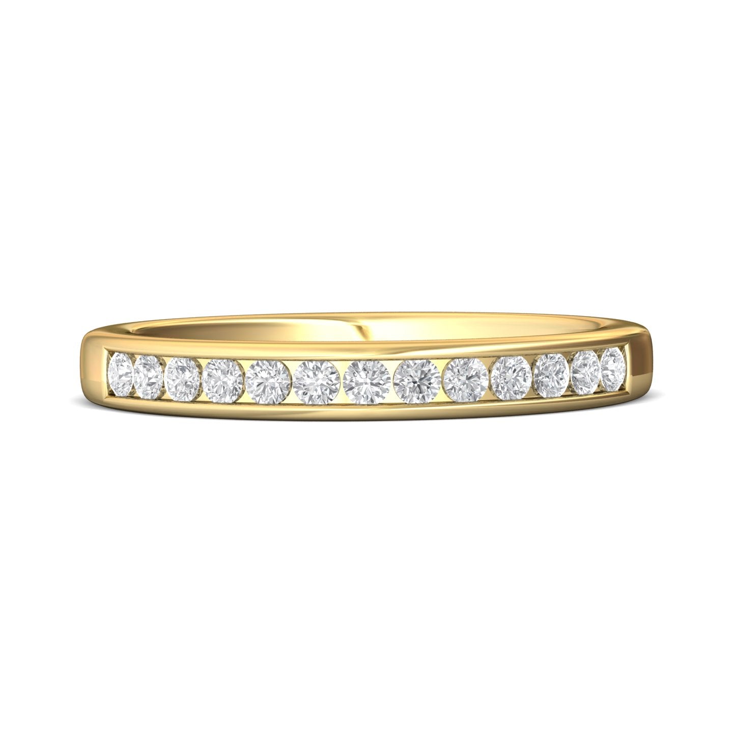 | Additional Description | The shimmering channel set diamonds in this elegant FlyerFit wedding band designed to maximize sparkle. |