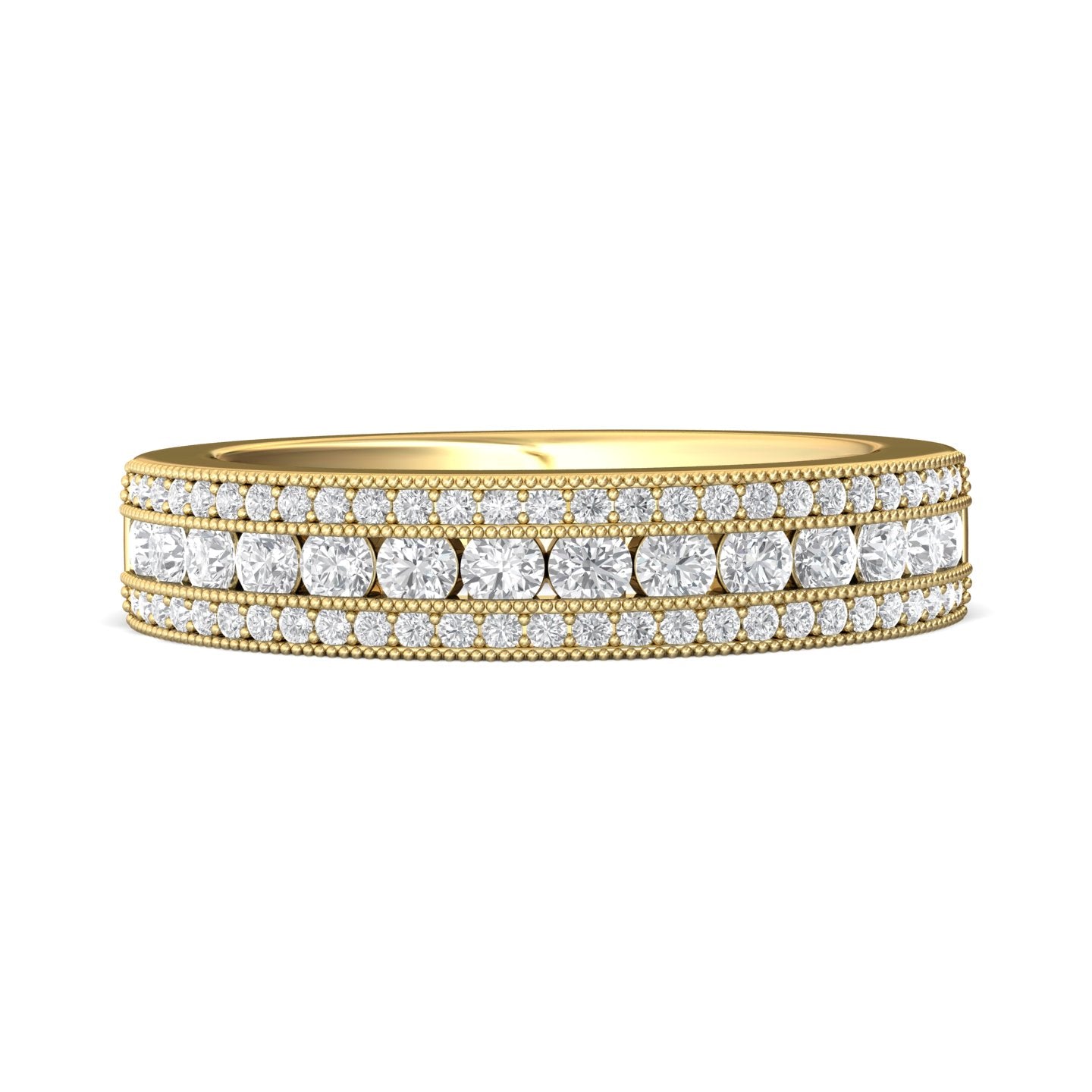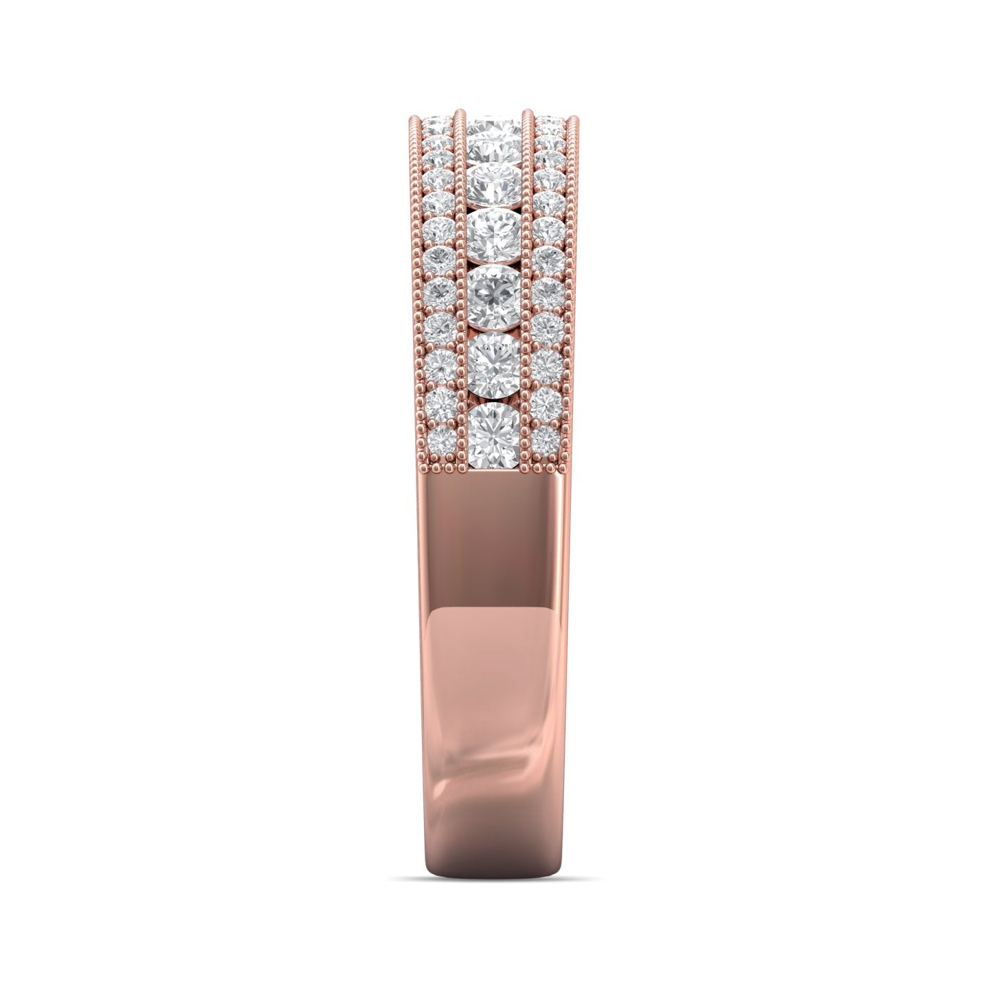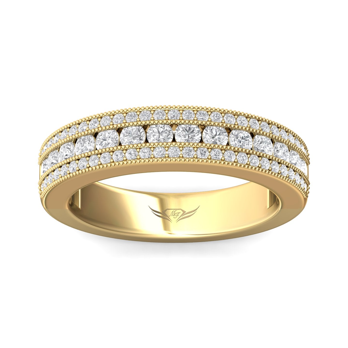 | Additional Description | With a touch of elegance, this FlyerFit wedding band showcases majestic pavé, a gallery covered in milgrain and a band with a triple-row of diamonds, including brilliant round diamonds in a channel frame. |