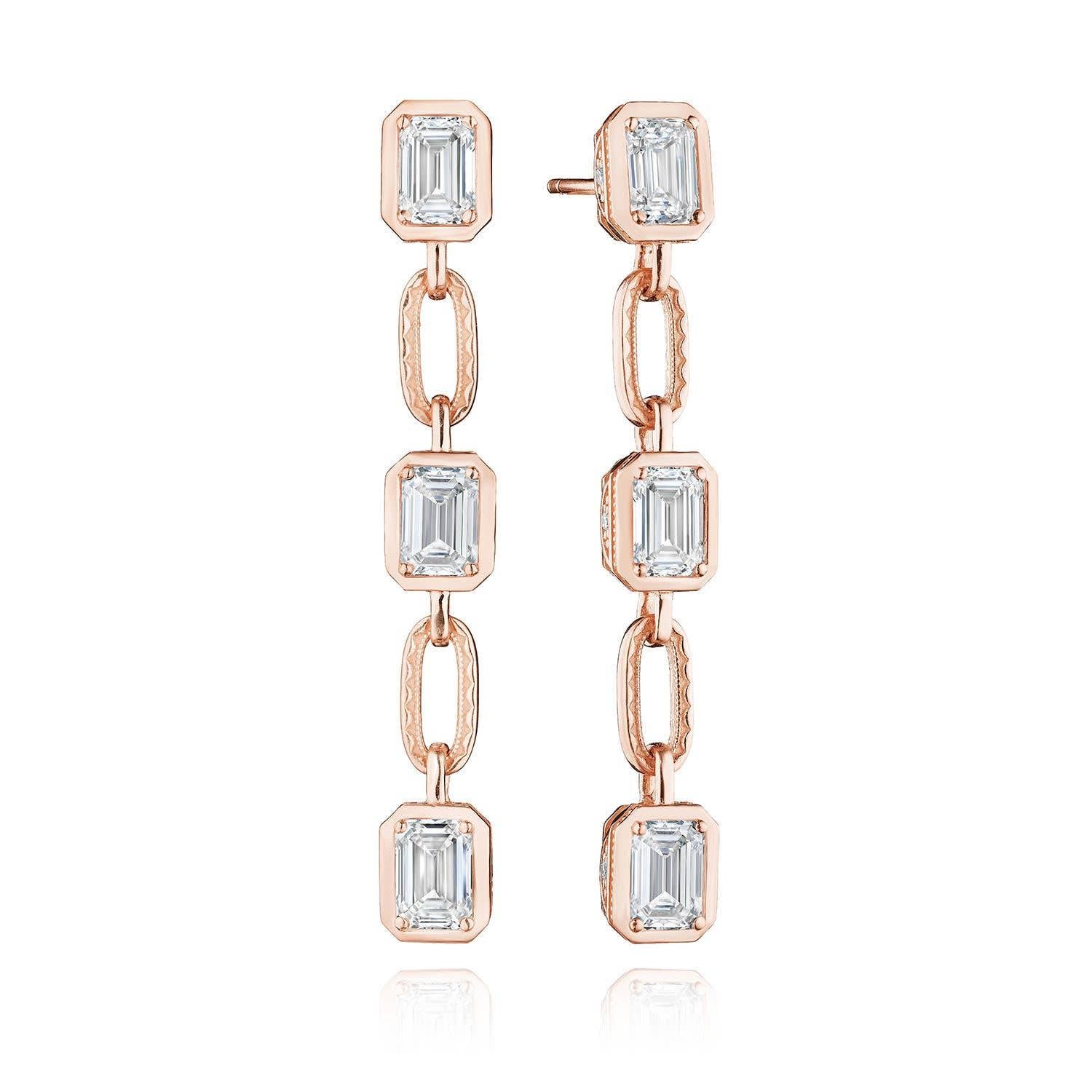 Additional Description High polish bezel frames enthrall mined diamond centers, while on the reverse, pinpoint mined diamonds add directional light. An intricate link of hand-hewn TACORI Crescent detailing connects each diamond setting for elegant length.