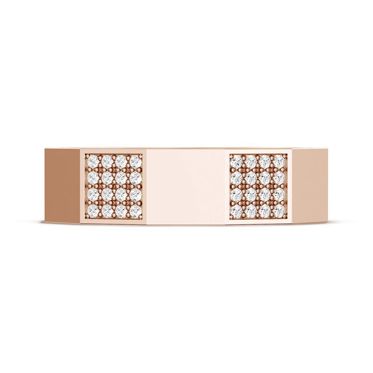 | Additional Description | Facets of the high-polish band alternate with embellishments of hand-set pave diamonds for a textured display. The inner face is decorated with a single TACORI Crescent and hand-hewn milgrain. Rings are available in sizes 4-12. |