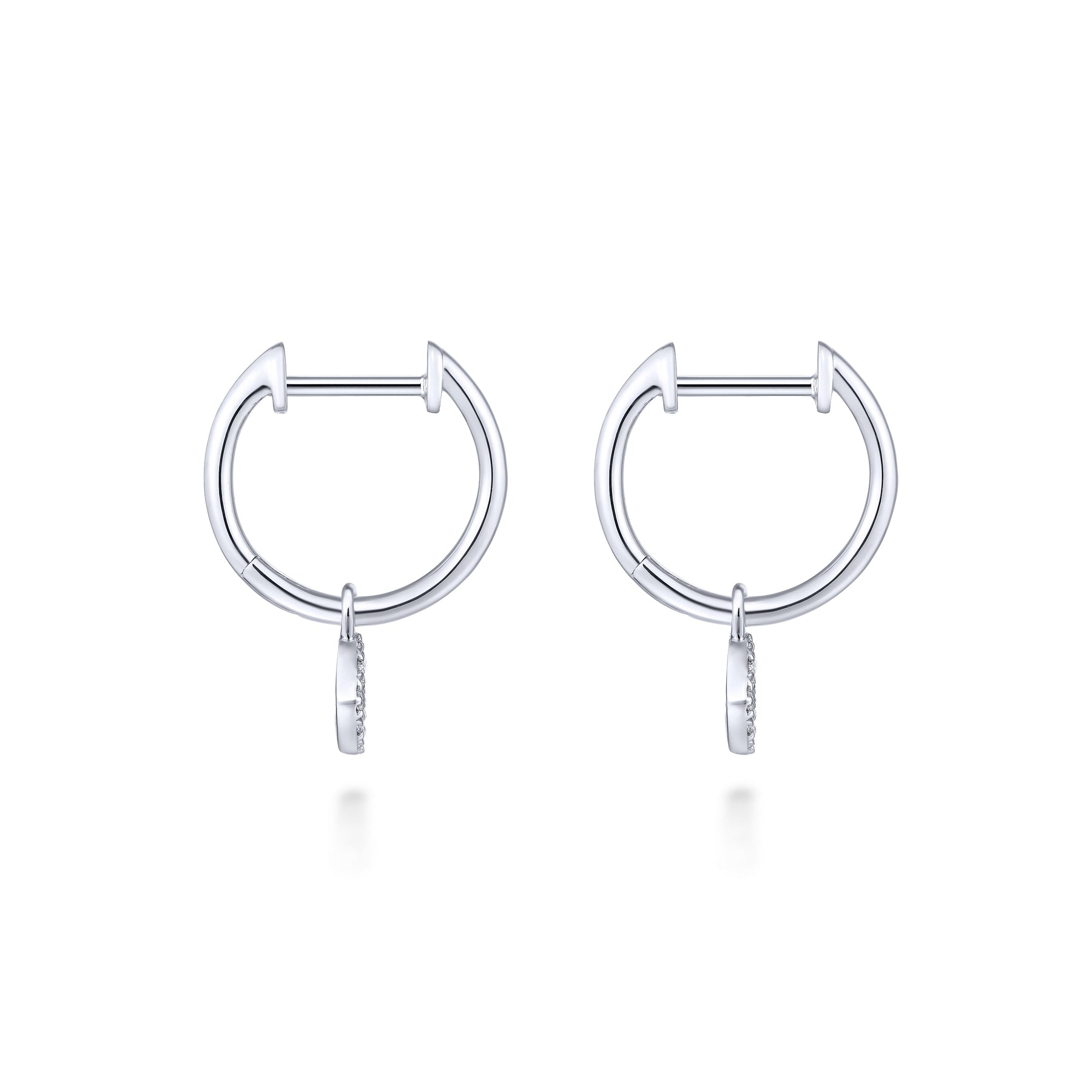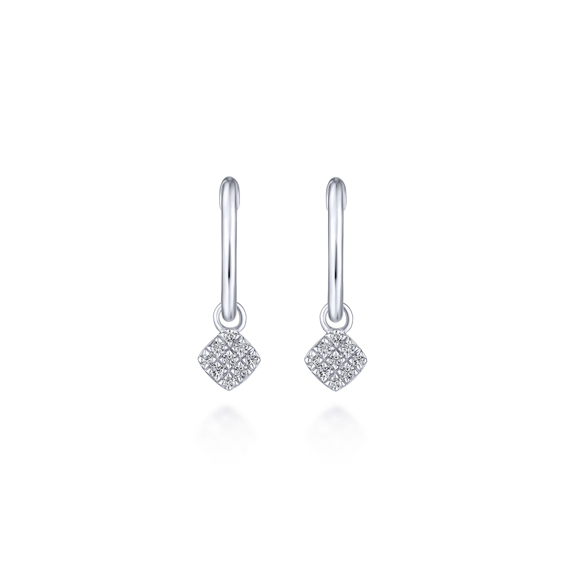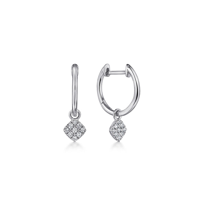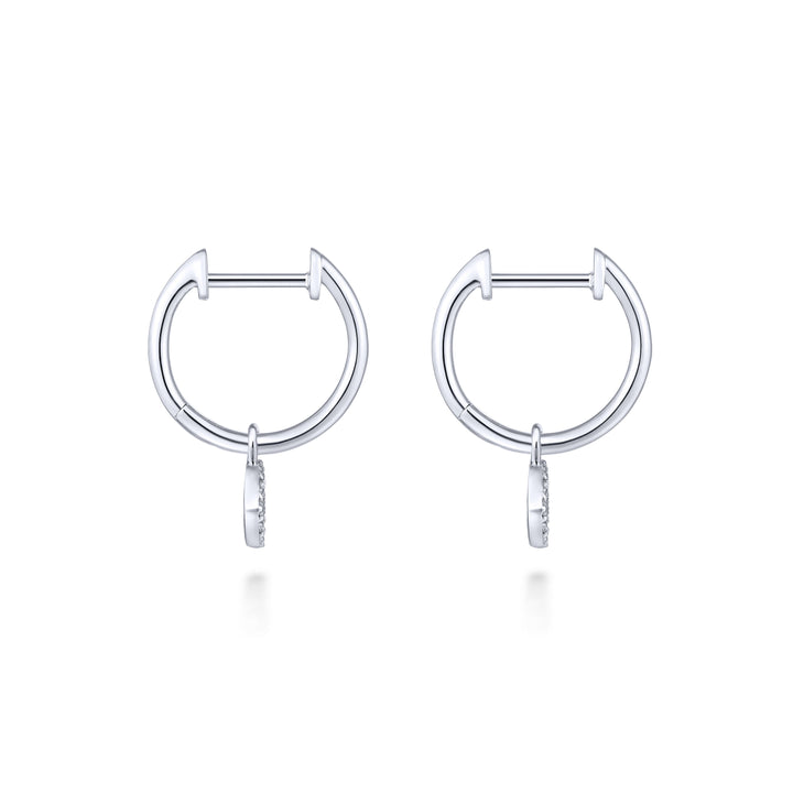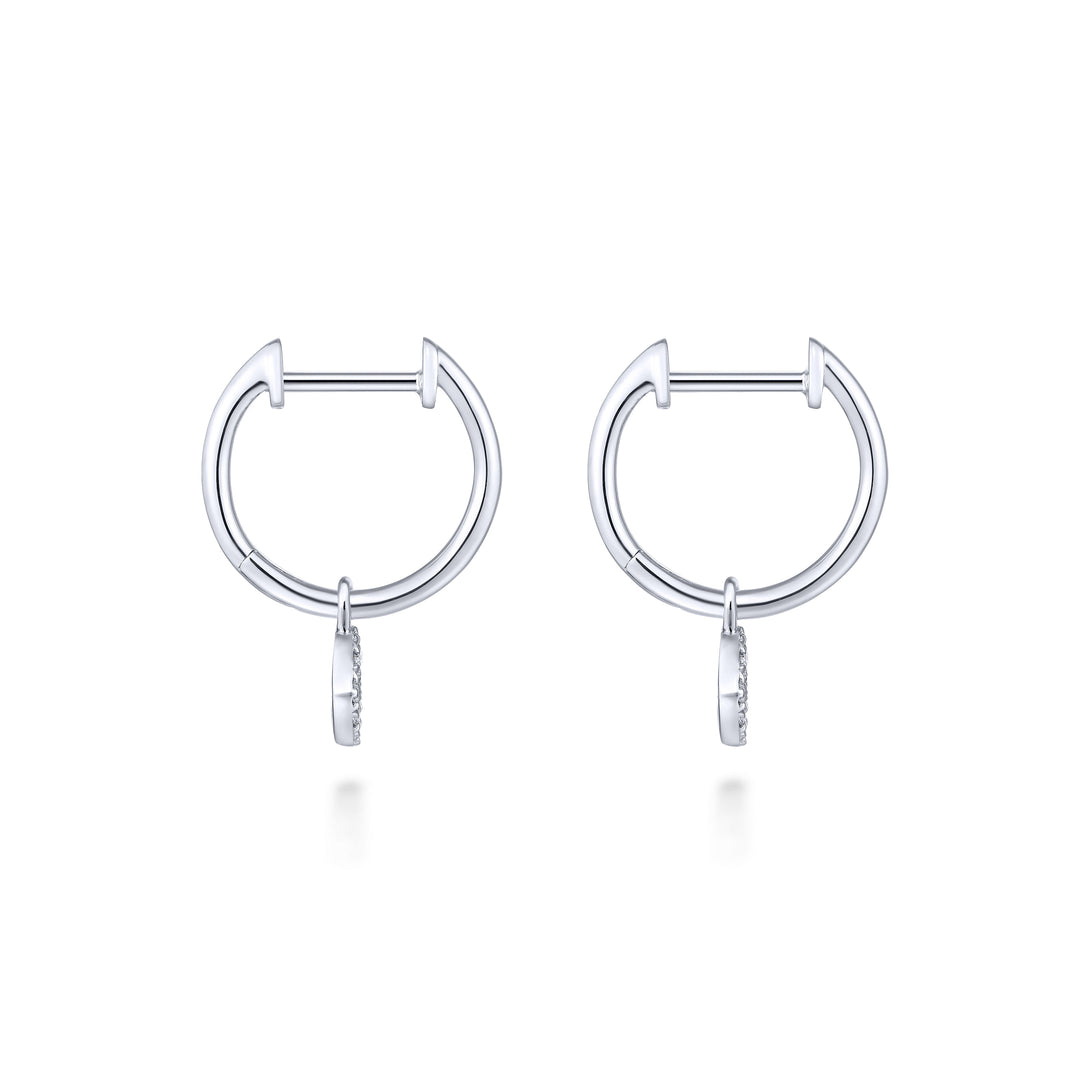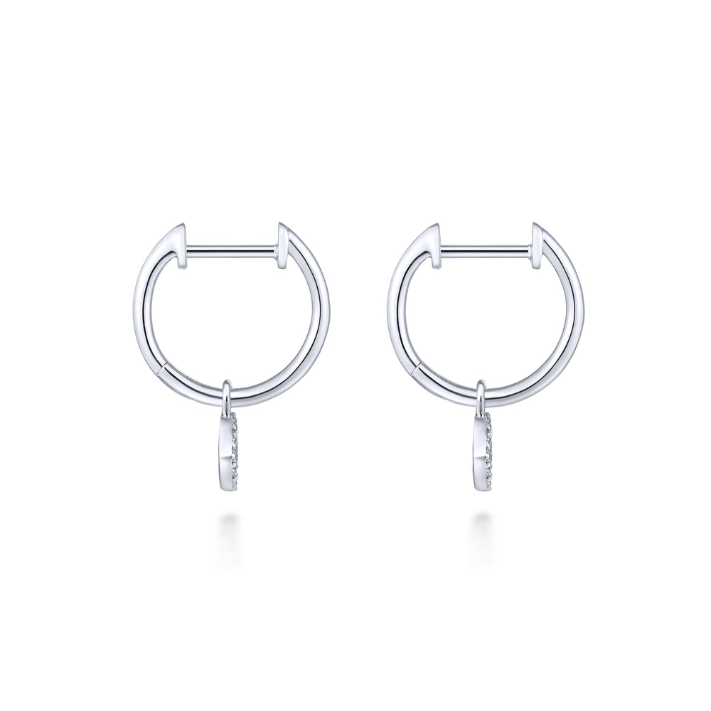 Pavee diamond embellishments dangle alluringly from these sweet and stylish white gold huggie earrings