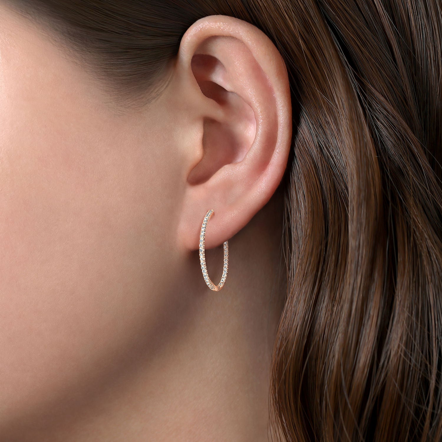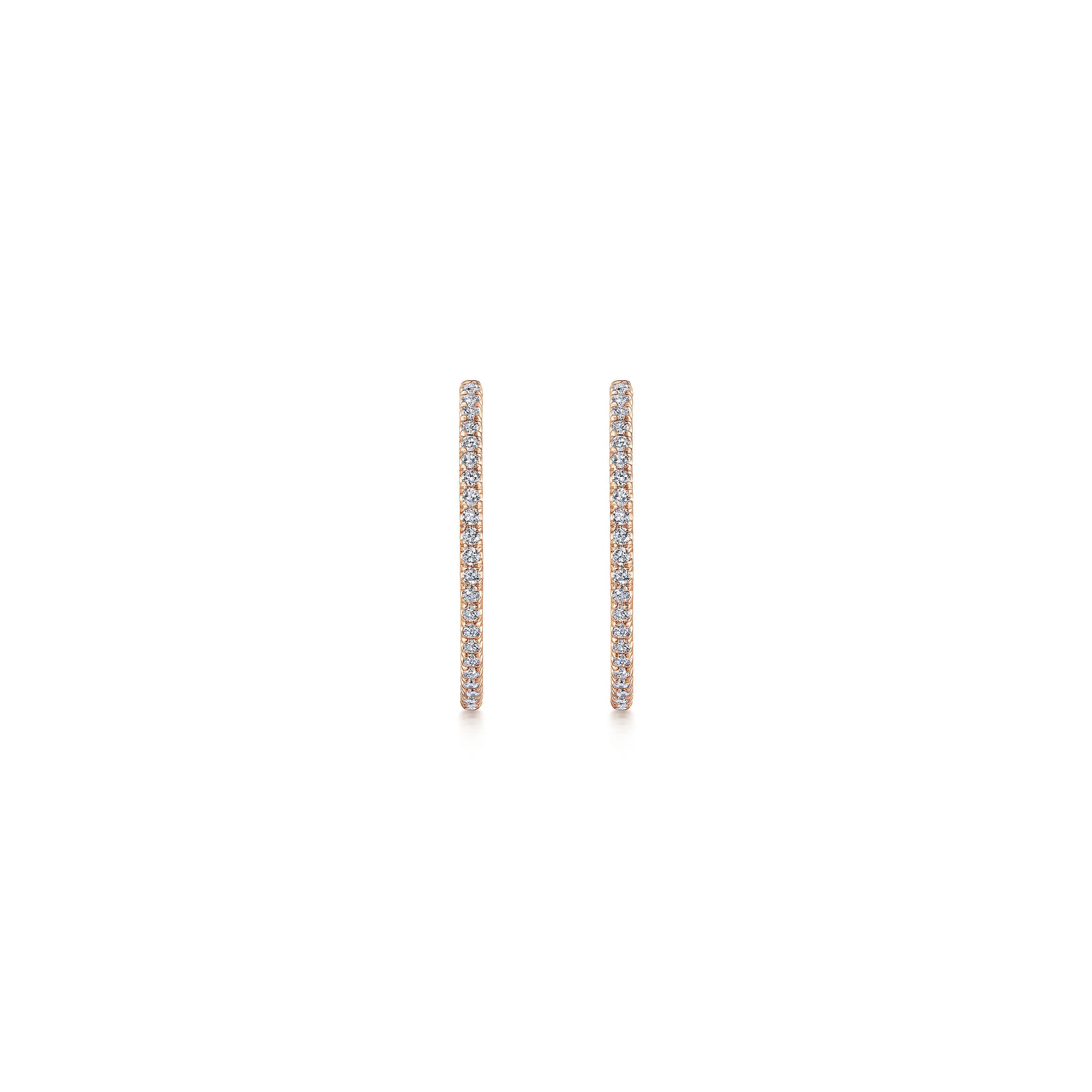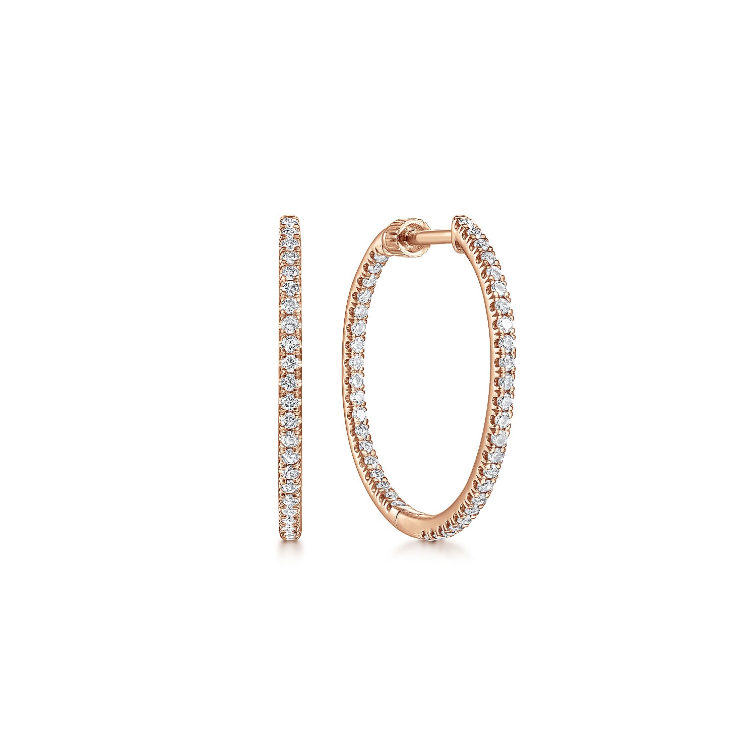 The style possibilities are limitless with these 14k rose gold diamond hoop earrings. Thanks to a clever inside-out design, 0.47ct diamonds line the inner and out front facing edges of each hoop. Emanate stylish sparkle with these classic rose gold earrings.