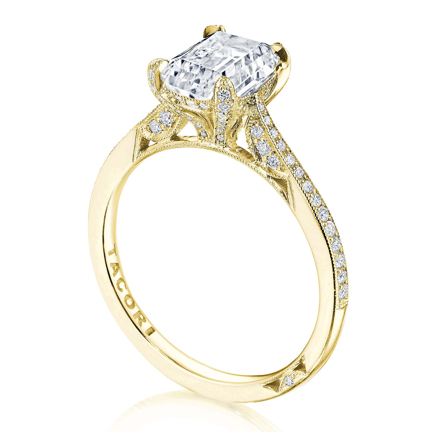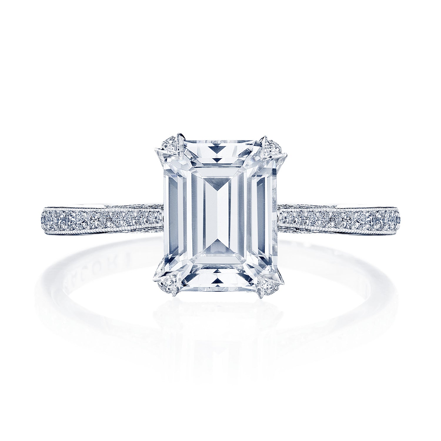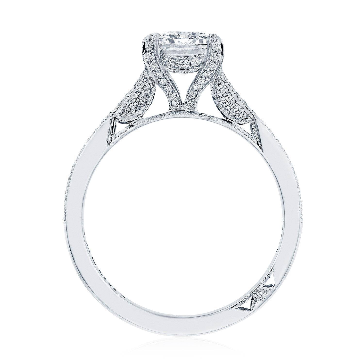 | Additional Description | Delicate pavé set on a high-polish band leads to a diamond-studded Cathedral Foundation with a hidden bloom. Diamond-infused Simply TACORI Crescent fabric adds brilliant detail, while a Signature Crescent marks the ring as Truly TACORI. |