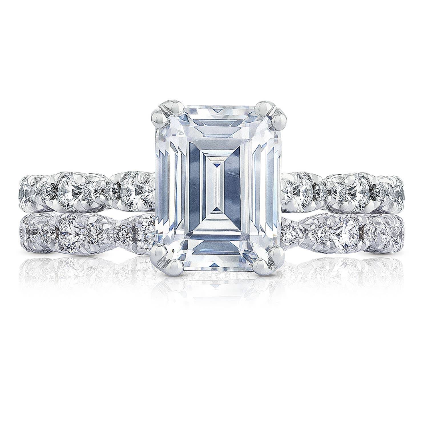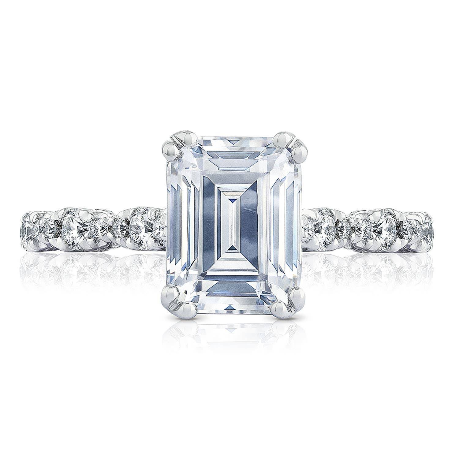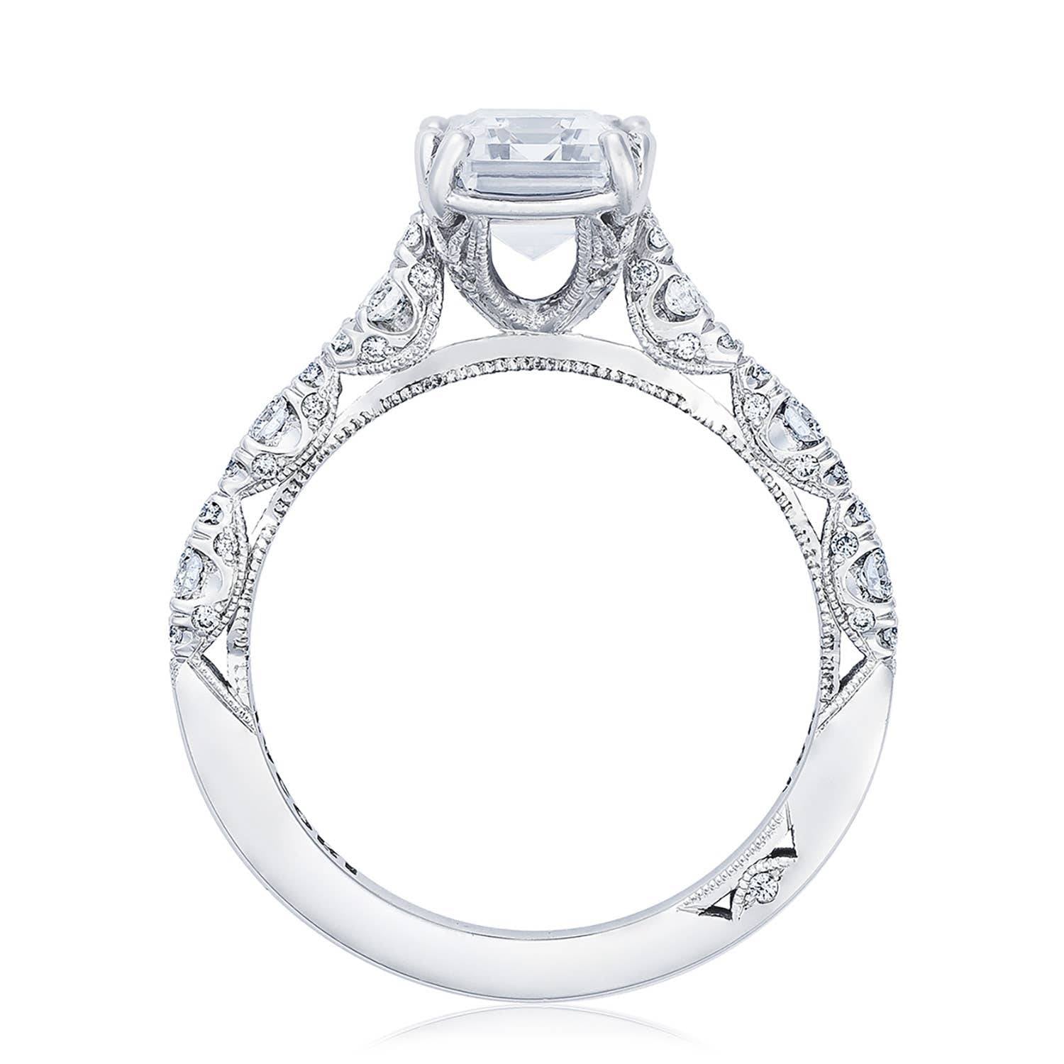 Additional Description Graduating French pavé-set diamonds form marquise shapes on the ring ceiling, while diamond-studded Petite Crescent fabric decorates the innerface. The solitaire is set on a Cathedral foundation embellished with milgrain detailing.