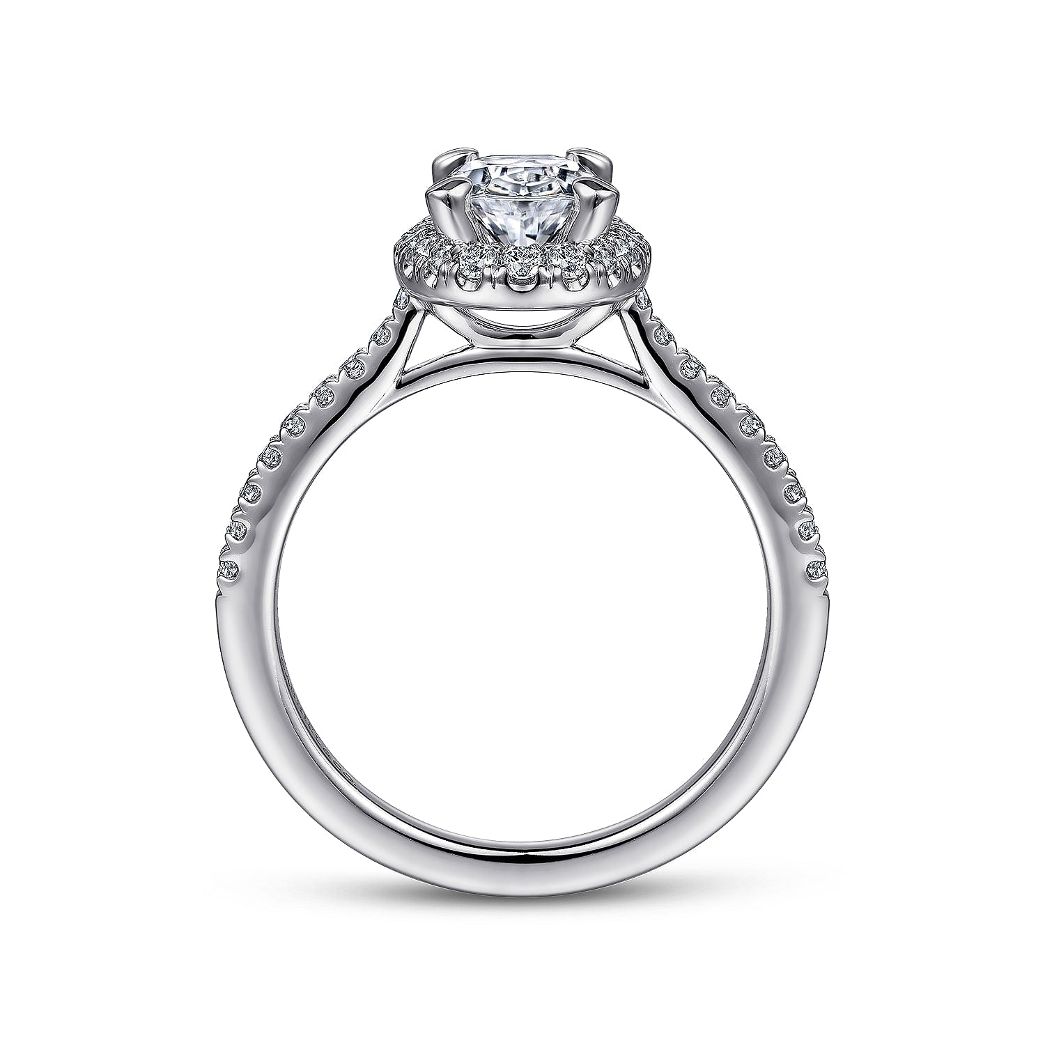 Designed with a striking diamond halo to boost the brilliance of your oval cut center stone, this engagement ring is the epitome of classic glamour. The setting is fashioned from 14K white gold with a slim, diamond encrusted band. Add extra dazzle with this 0.32ct oval halo diamond ring.