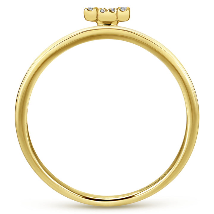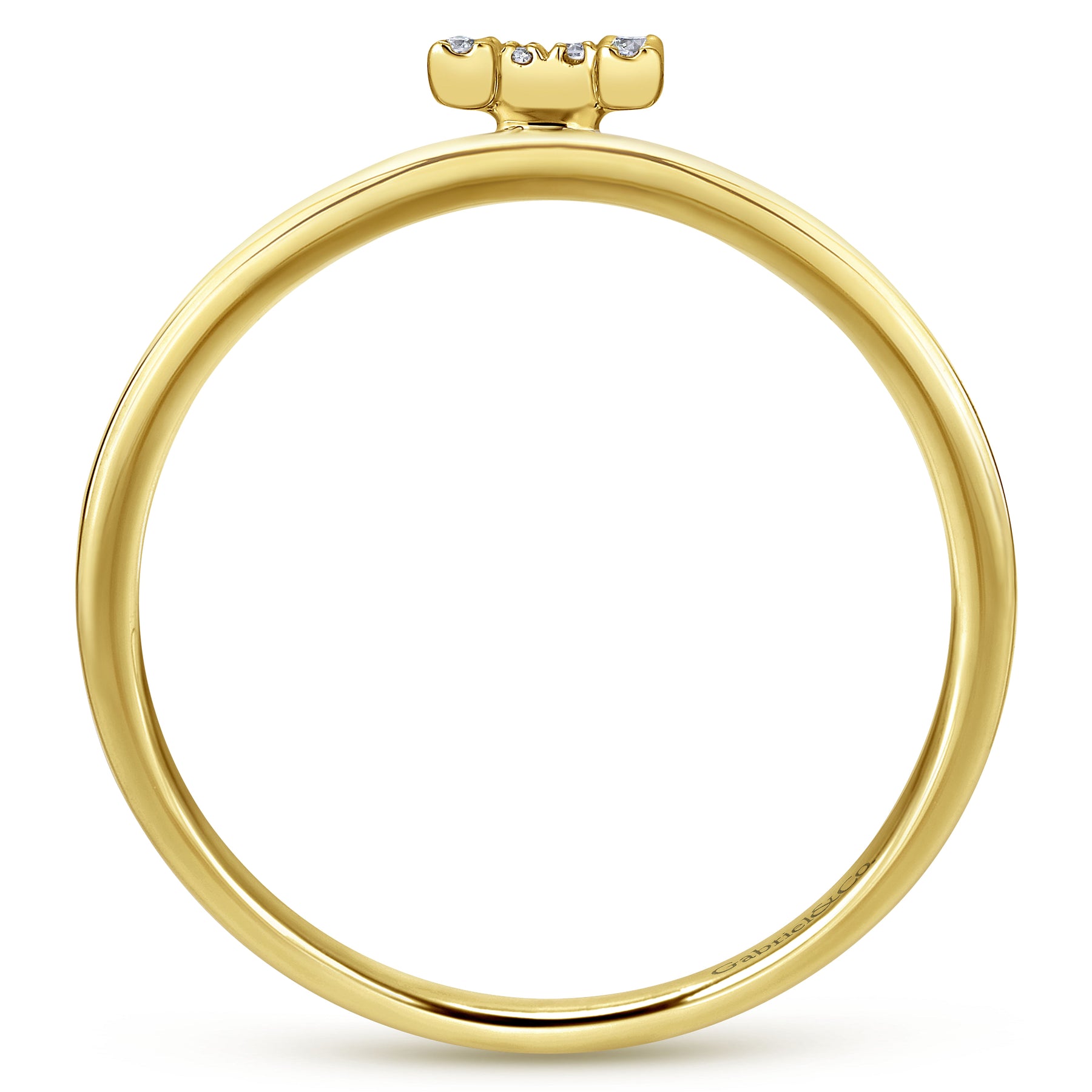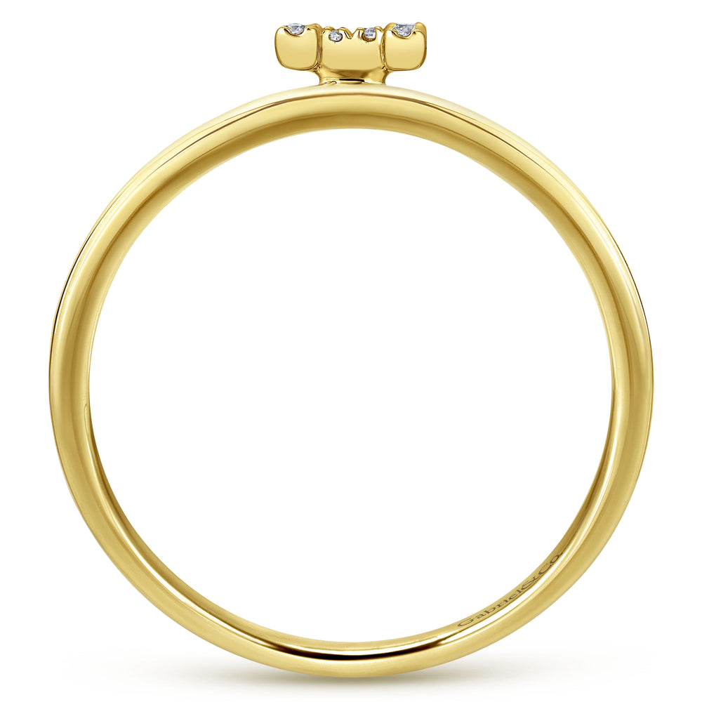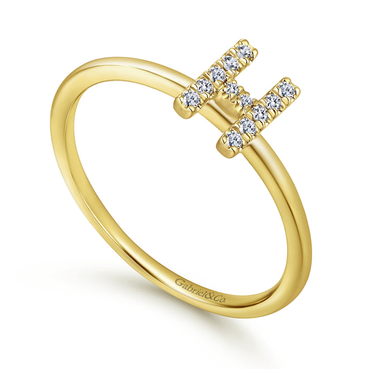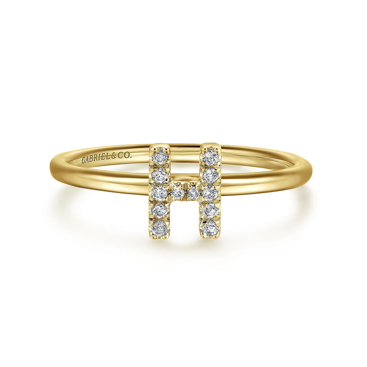 Satisfy your initial obsession with this versatile letter "H" initial ring. This personalized stackable style features a capital letter adorned with dazzling 0.06ct pav???????? diamonds. A classic polished 14K yellow gold band wraps up this modern design.