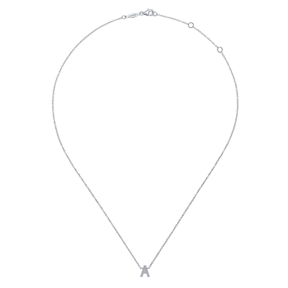For a personal touch, choose this trendy 'A' initial letter necklace. Designed in a clean modern font, the uppercase letter is created in luxurious 14k white gold. Dazzling 0.04ct diamonds blanket the surface of the pendant.