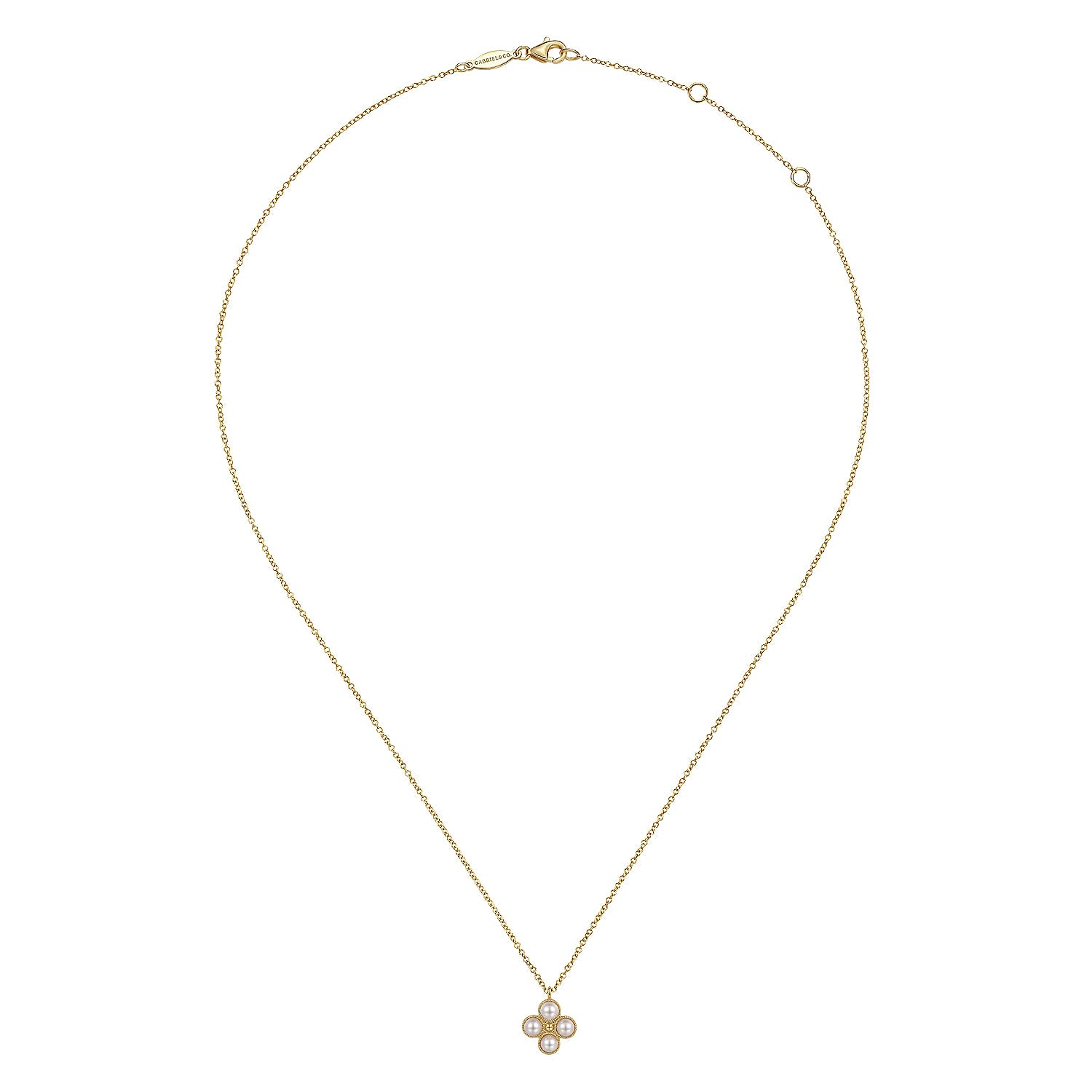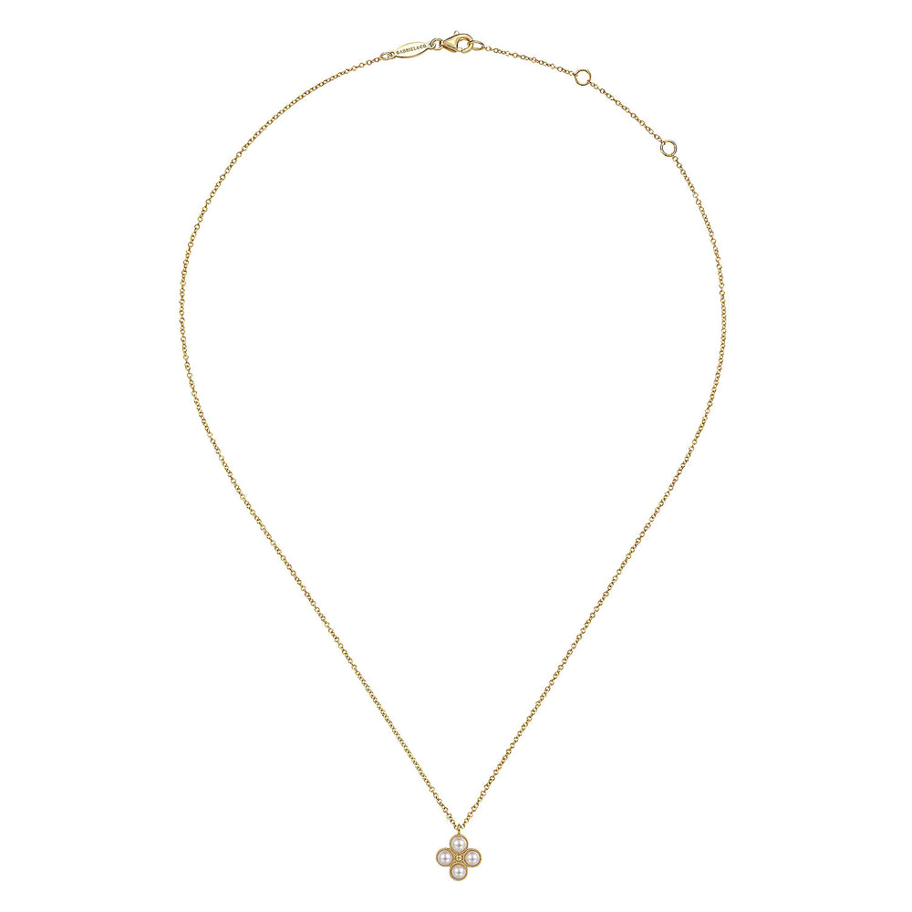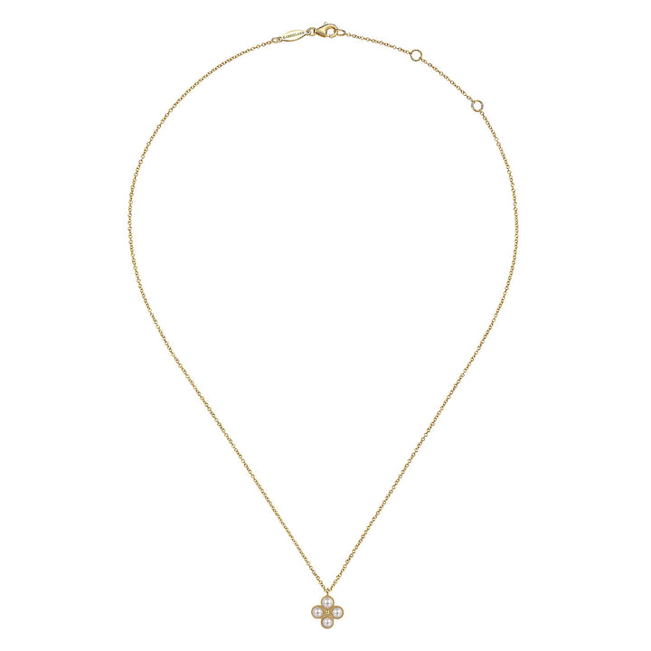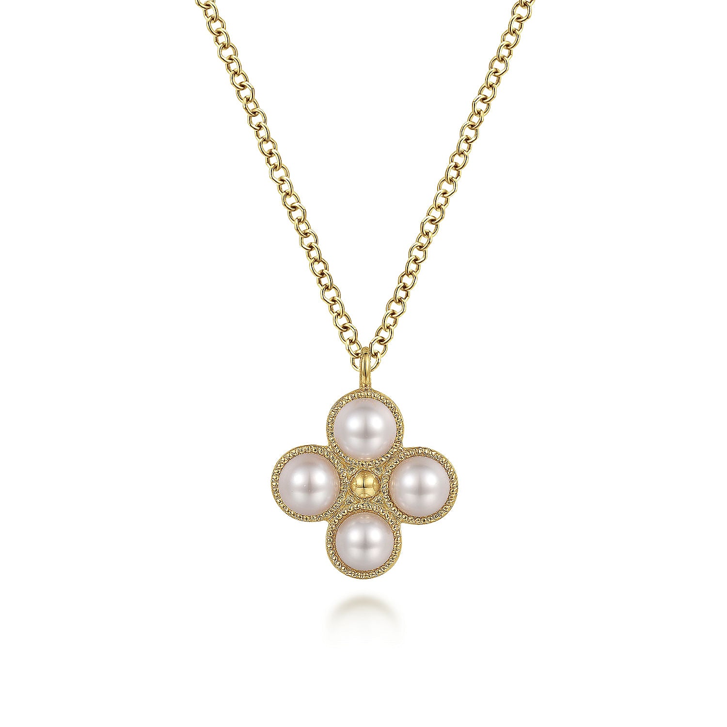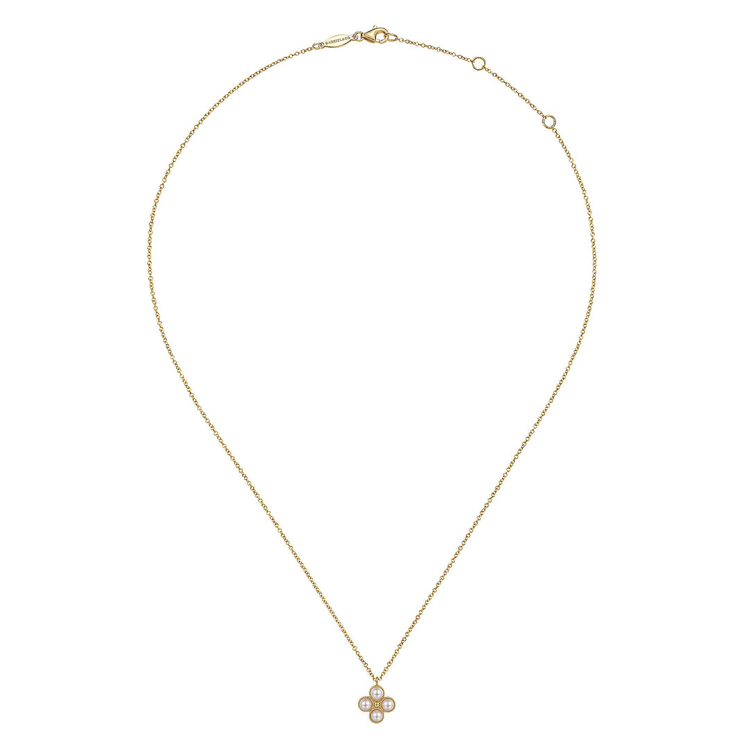 A quartet of iridescent pearls bring elegance and refinement to this Bujukan pendant necklace. Set in 14K white gold with milgrain detailing, the June birthstones shine with timeless beauty. A central golden sphere brings characteristic Bujukan style to this adjustable gold necklace.
