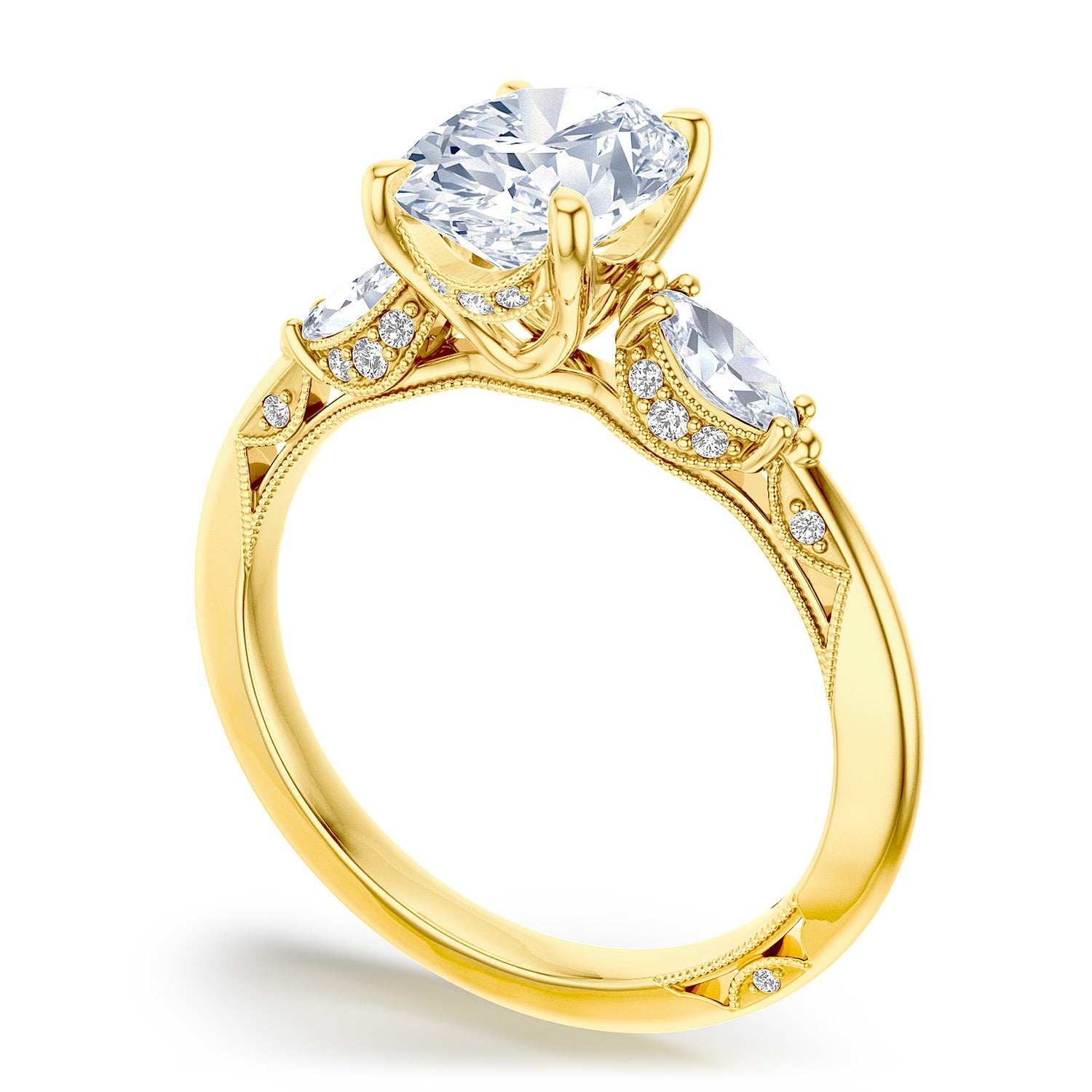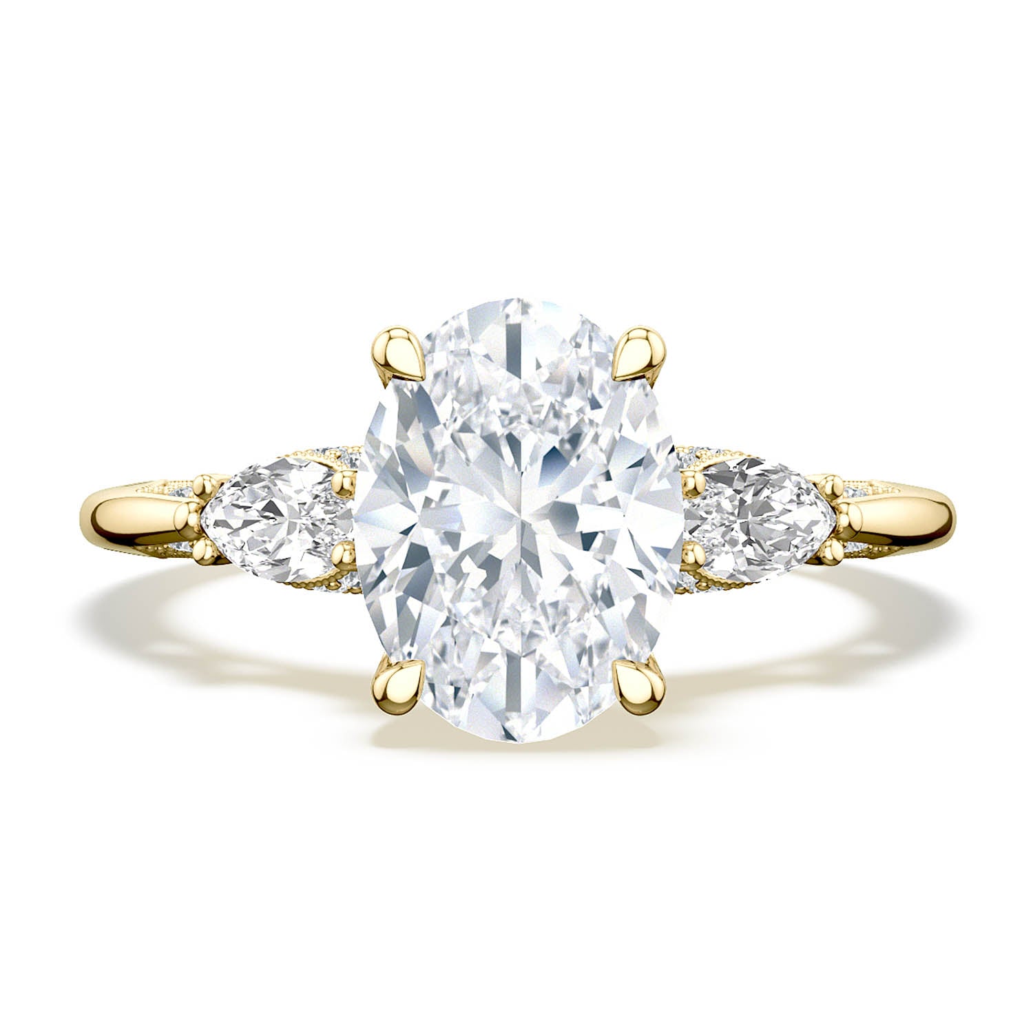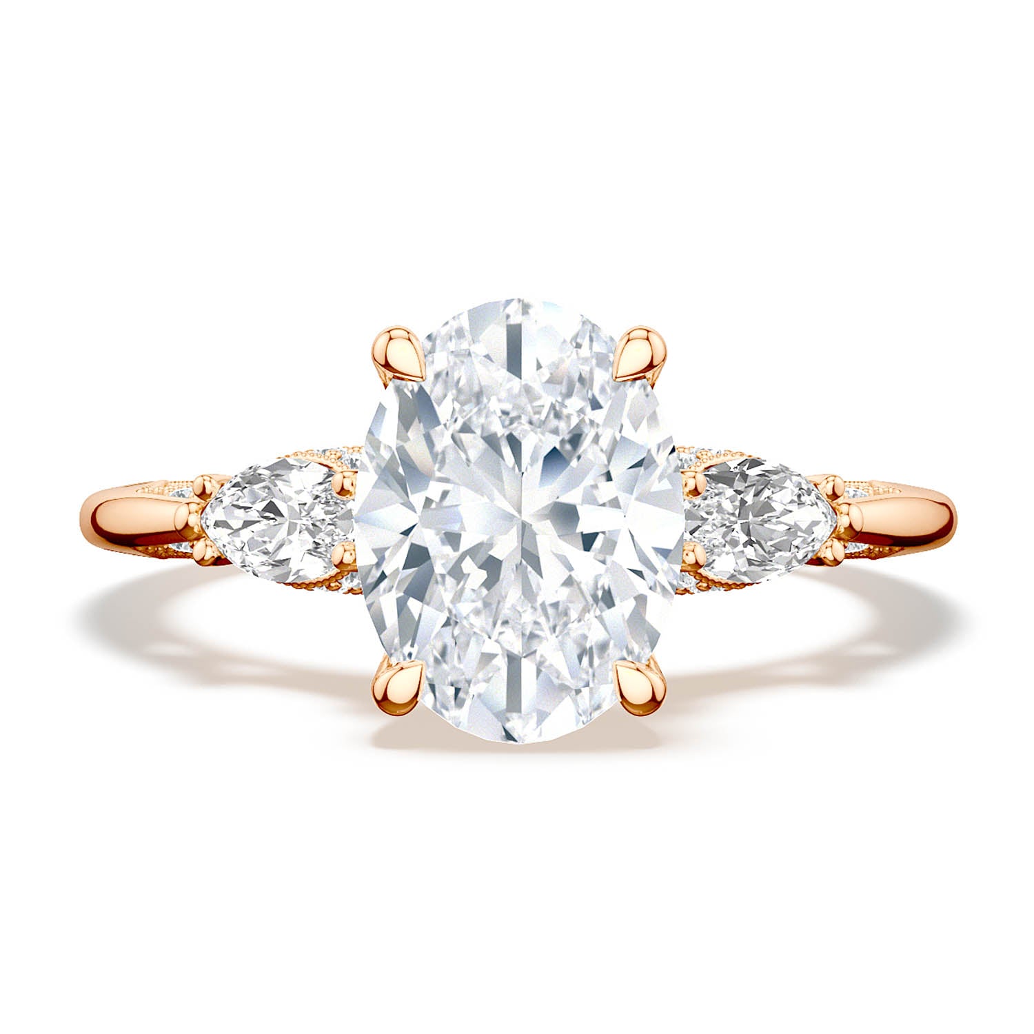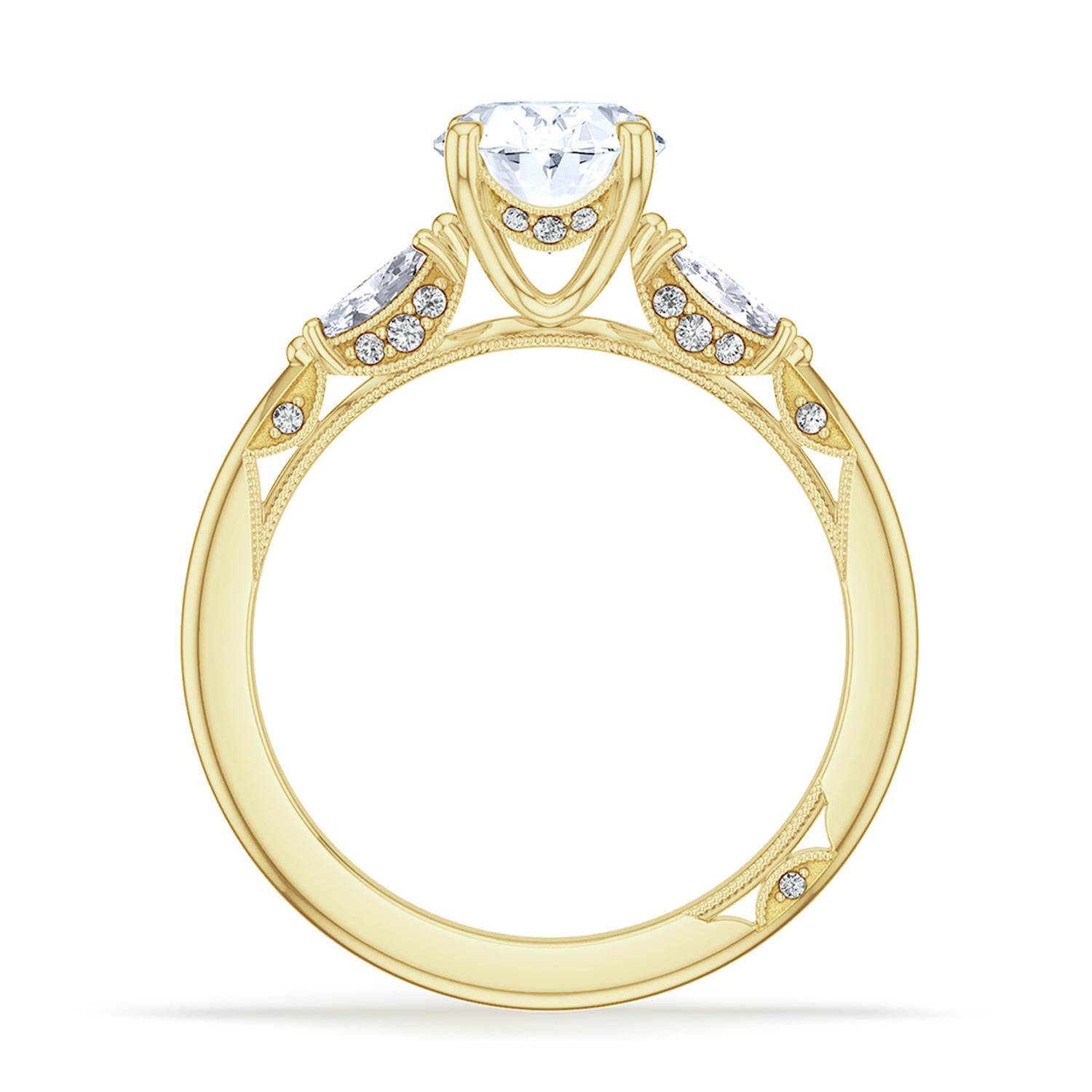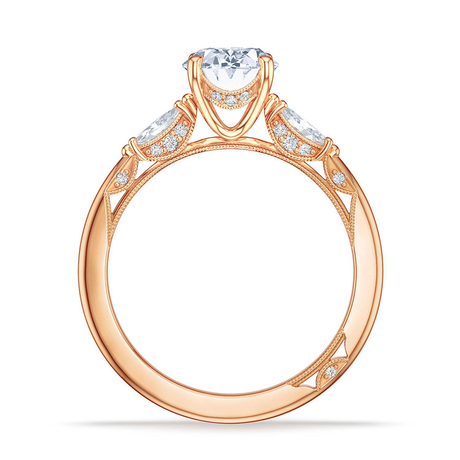 | Additional Description | Two marquise side stones embrace the oval center stone, which its on a diamond-decorated Cathedral foundation. Raised TACORI crescents and outlines of delicate milgrain beading are reminiscient of the elegant draping of bridal fabric. |