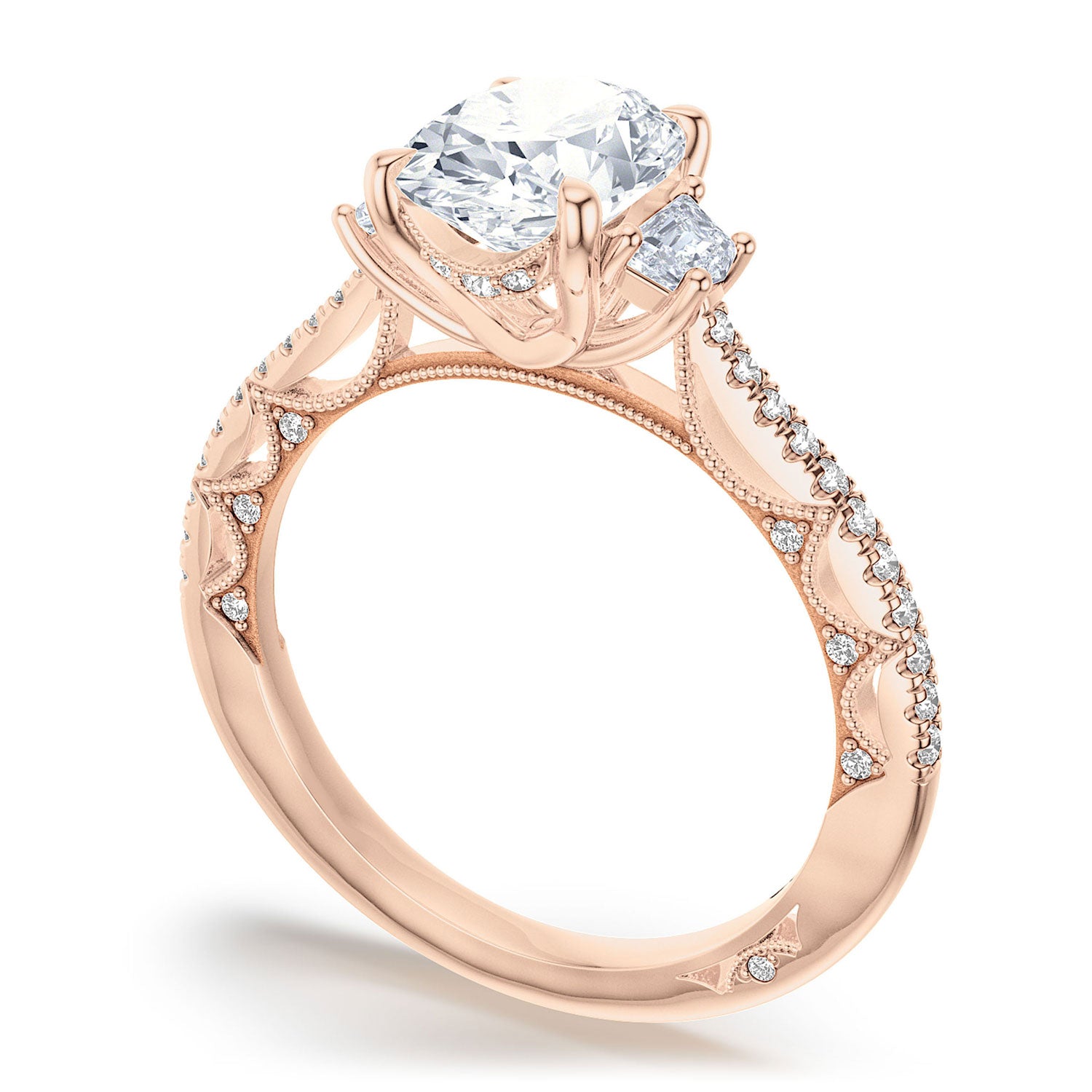 | Additional Description | Milgrain-edged Crescents create radiant windows of light, while round-brilliant diamonds at each Crescent junction are hand-set with triple beading. A pave ceiling leads towards the three-stone crown with a hidden bloom. |