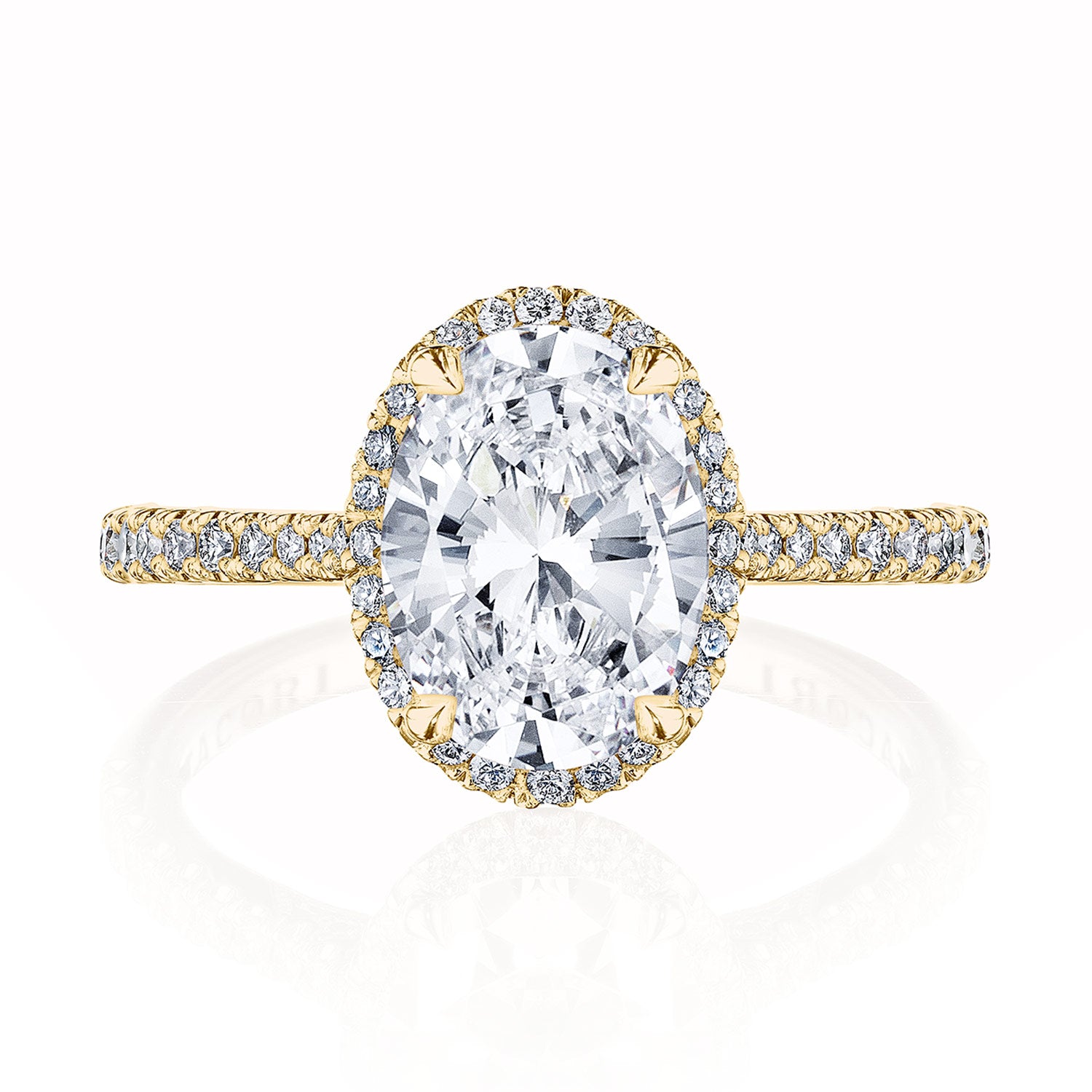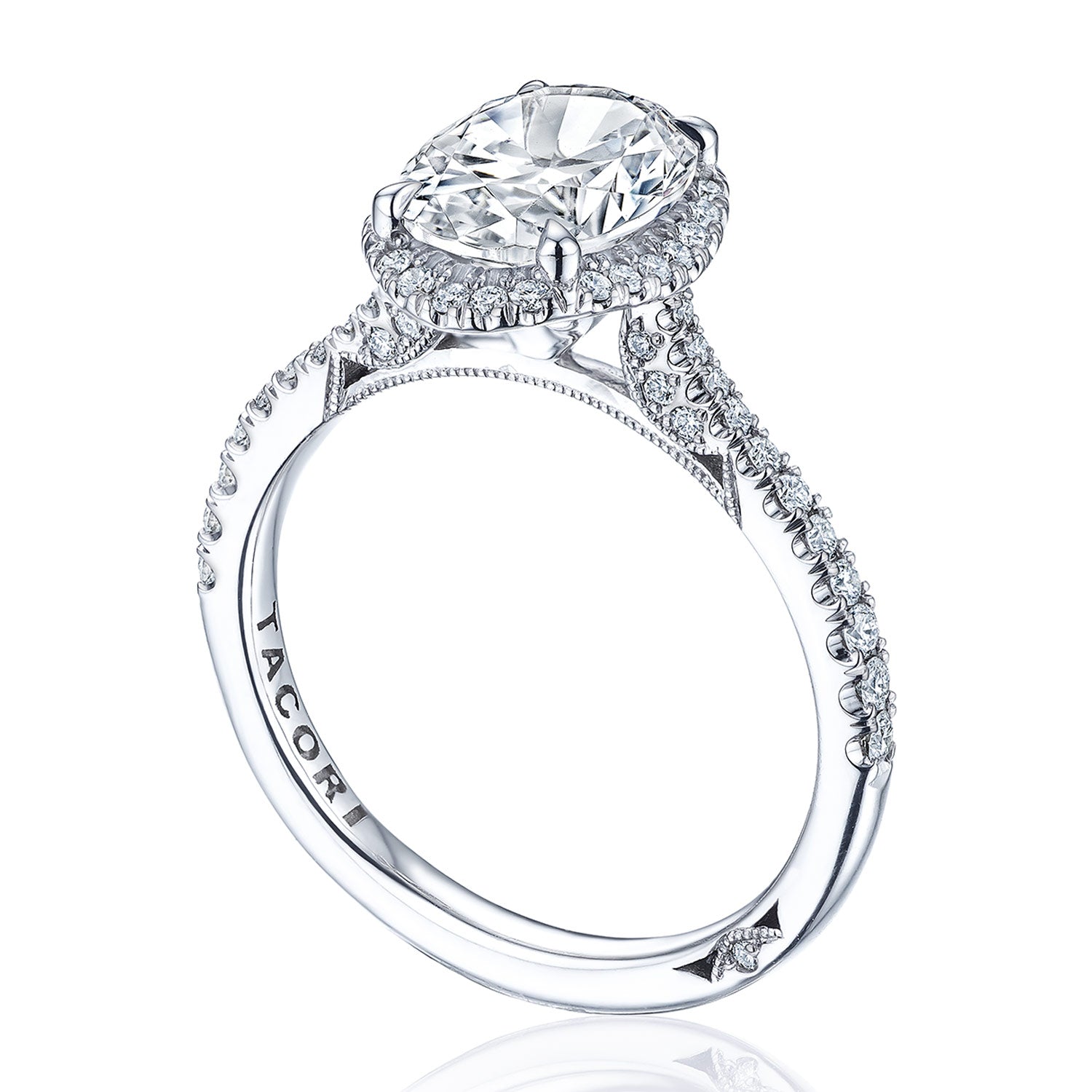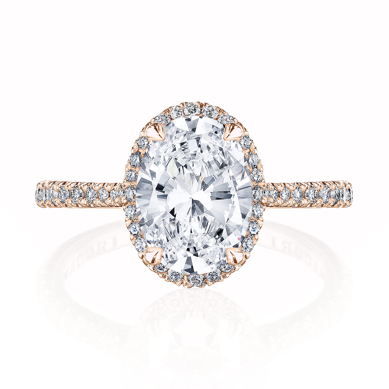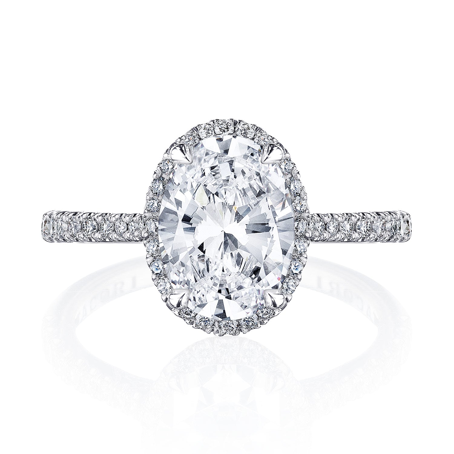 | Additional Description | A bloom highlights the oval solitaire diamond, which is set on an open-gallery Cathedral Foundation. Pave daimonds and diamond-studded Simply TACORI crescent fabric ornamet the ceiling, while a Signature Crescent marks the ring as Truly TACORI. |