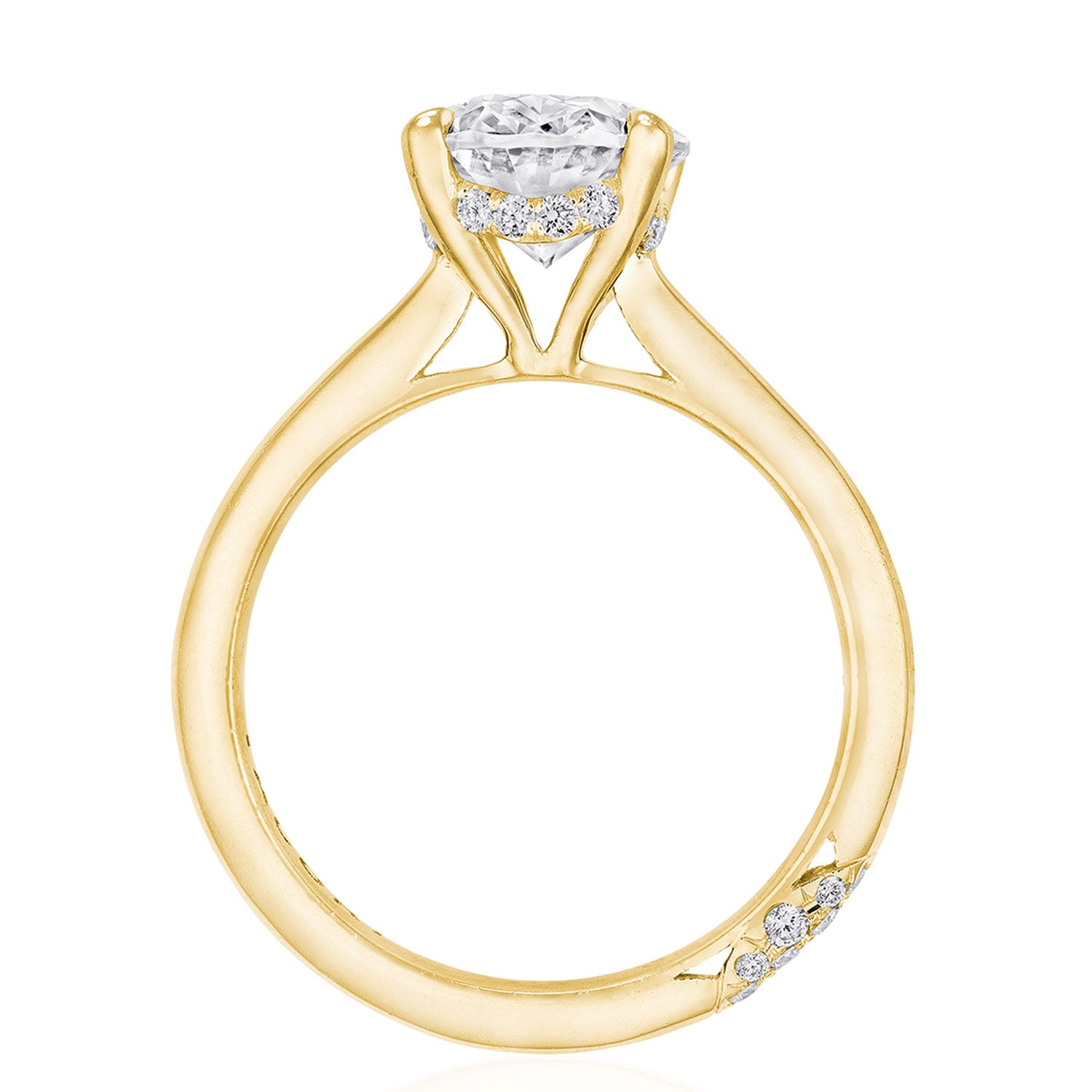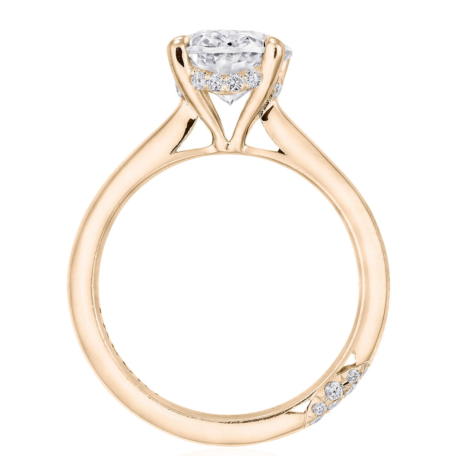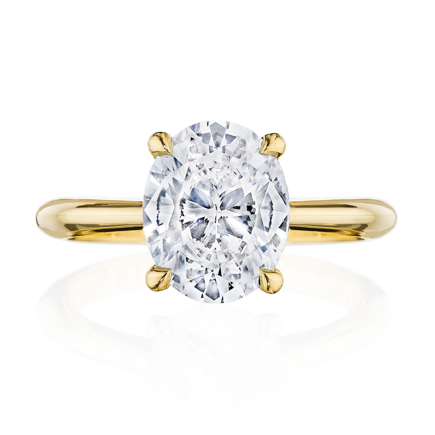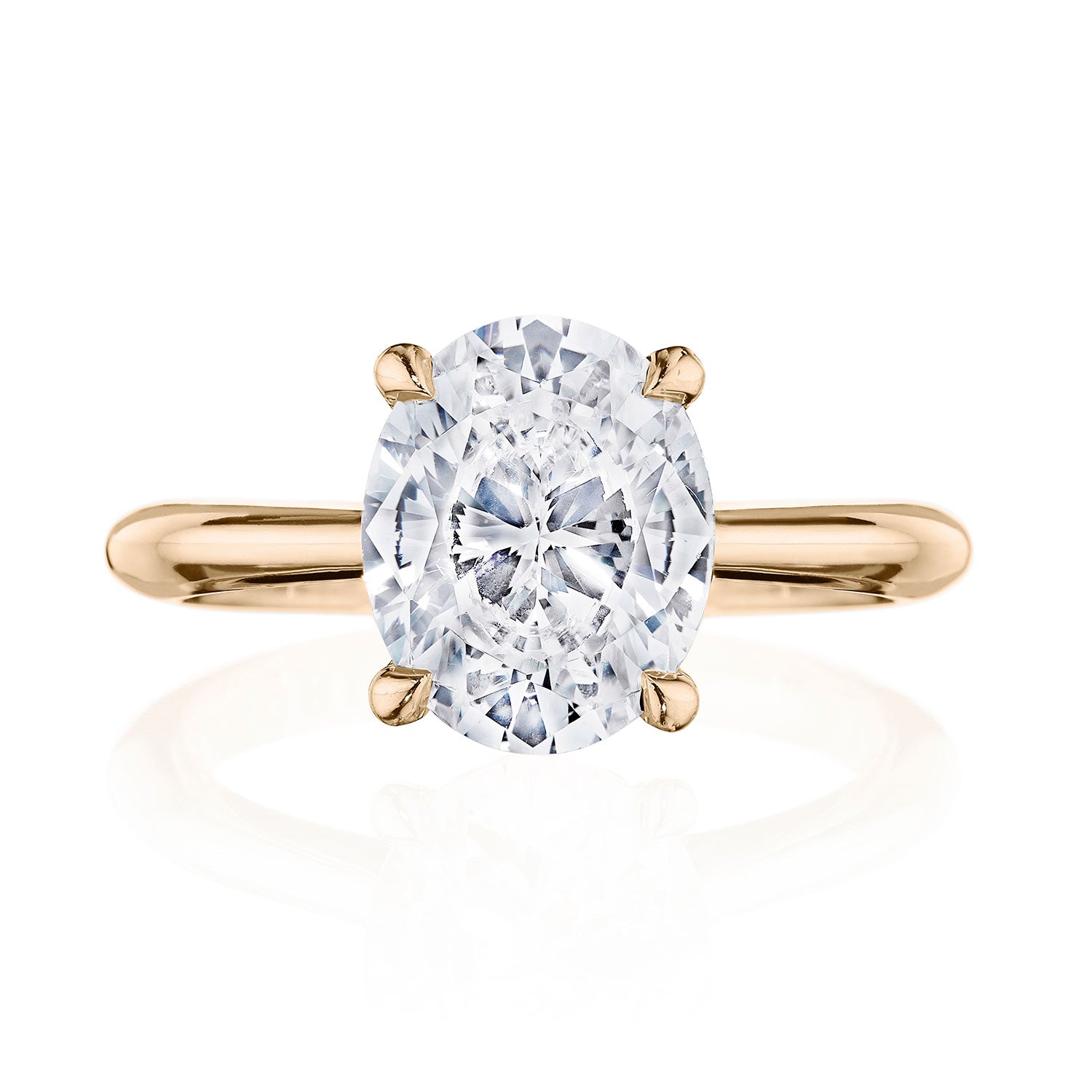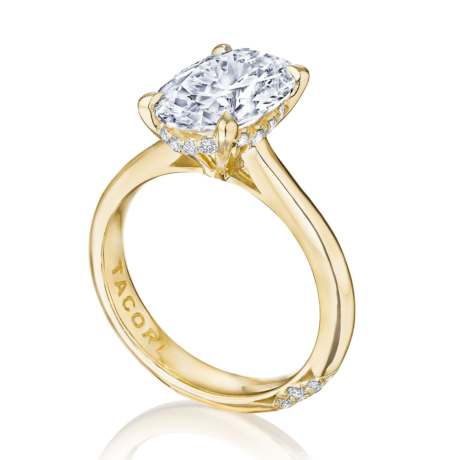 | Additional Description | The oval solitaire sits on a Cathedral foundation with a hidden bloom, which adds the TACORI touch. A high-polish band of premium metals is studded with a diamond-studded Signature Crescent at the foundation |