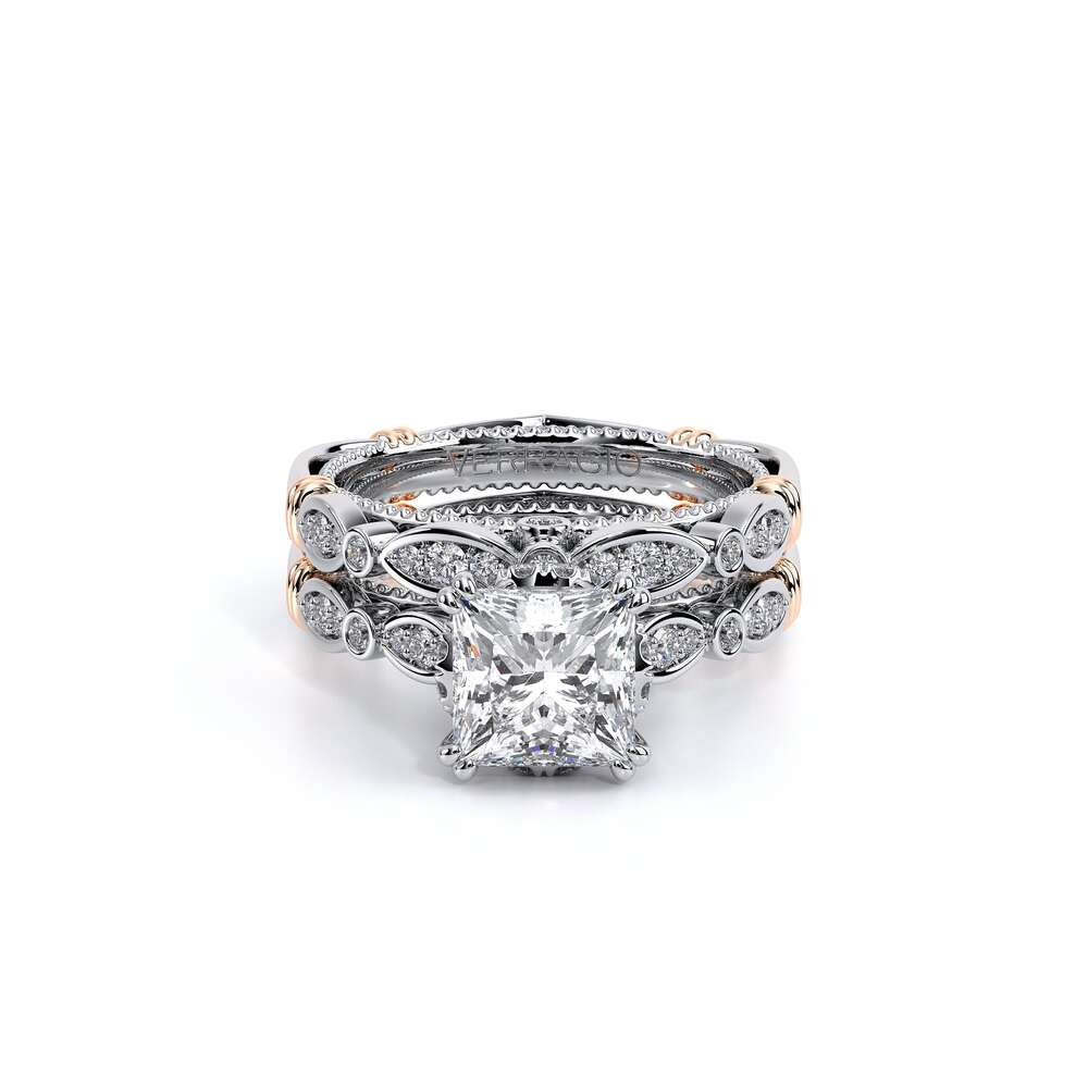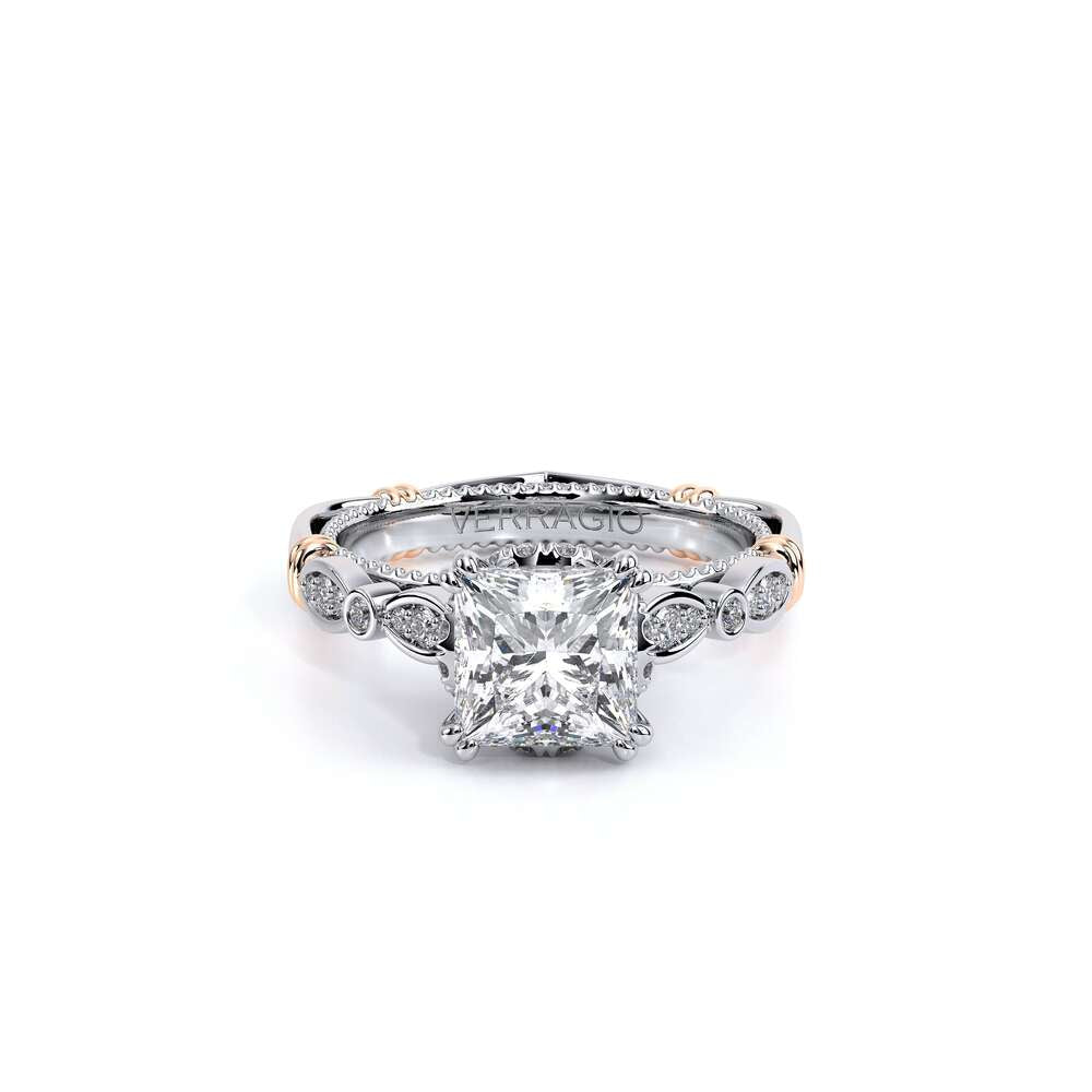 | Additional Description | PARISIAN-151R engagement ring carries the vintage scalloped design while adding a beautiful handcrafted diamond tiara to enhance the Princess center diamond. Featuring our rose gold Timeless wraps, Parisian Lace and Verragio' s signature beading- this ring is the complete package. |