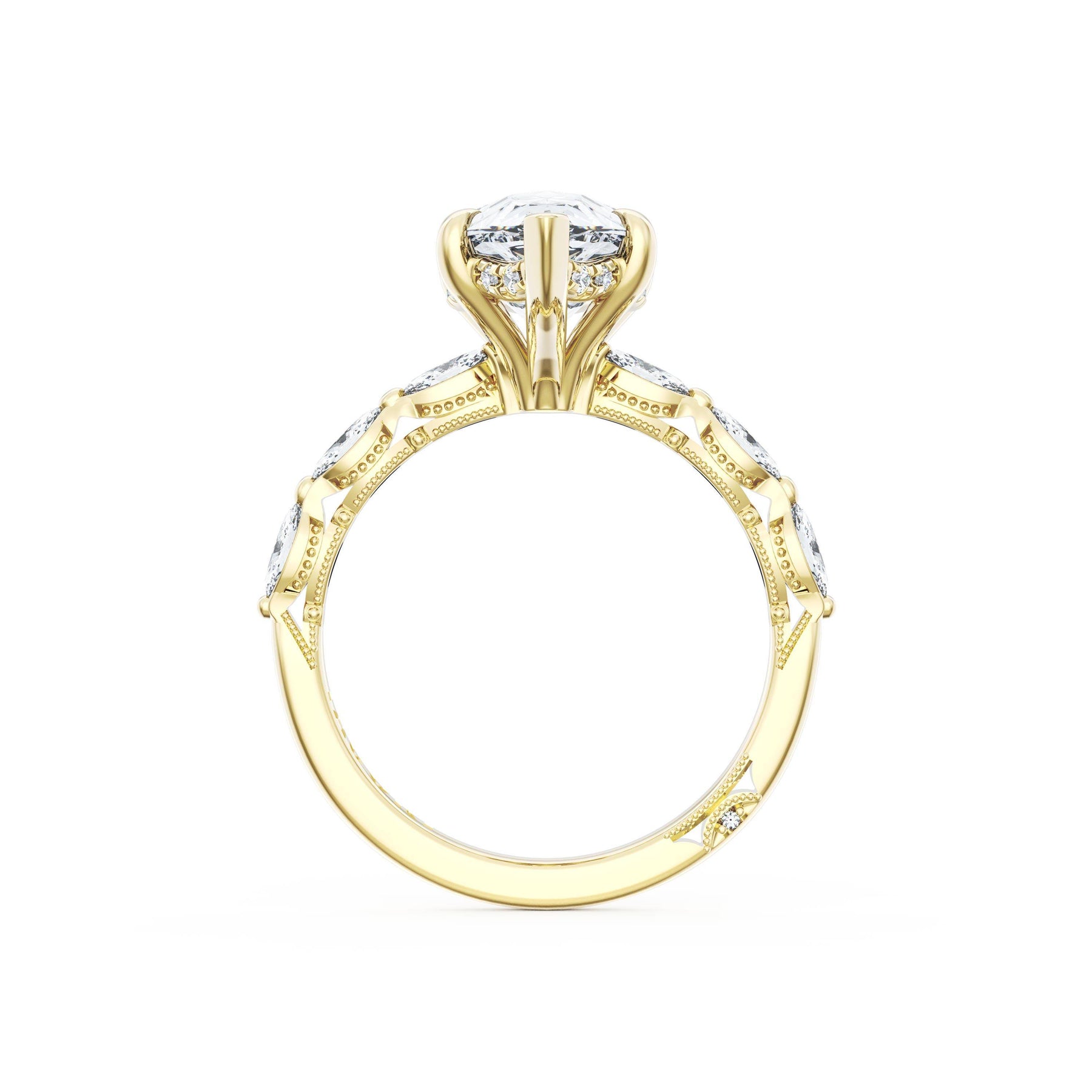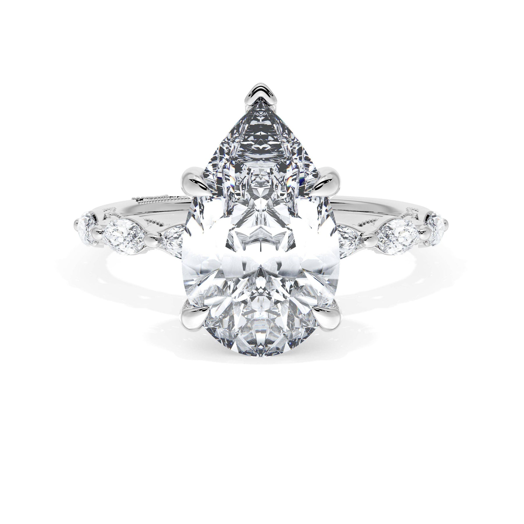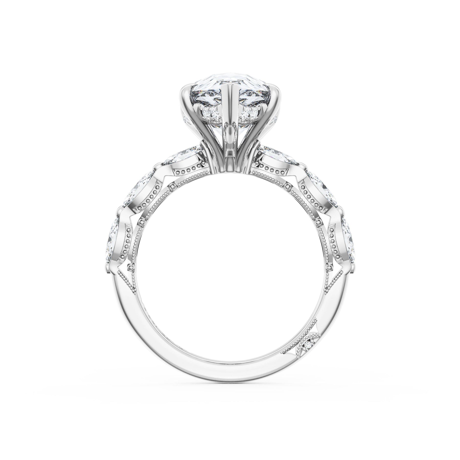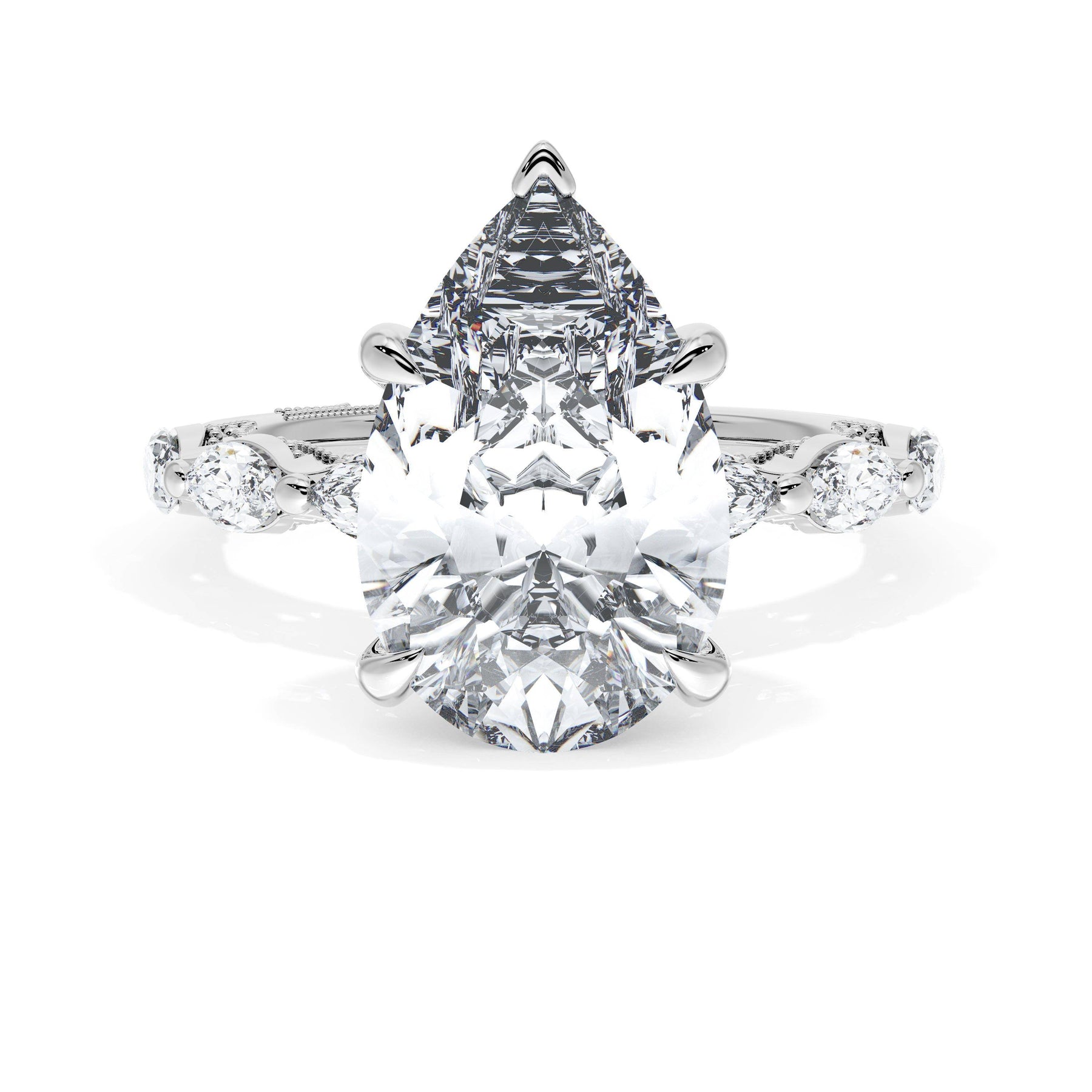 | Additional Description | Six marquise cut side stones decorate the ceiling of this Pear cut solitaire. A hidden bloom and milgrain on the silhouette add hidden detail. |