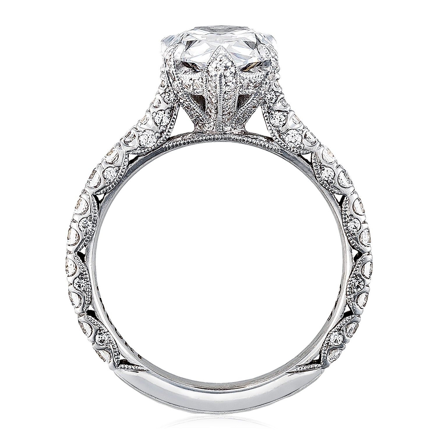 | Additional Description | Diamond-studded Petite Crescent fabric decorates the innerface, while pavé-set diamonds lead up the ceiling towards the solitaire, which is set into the diamond-studded prongs. A hidden bloom adds brilliance beneath the crown. |