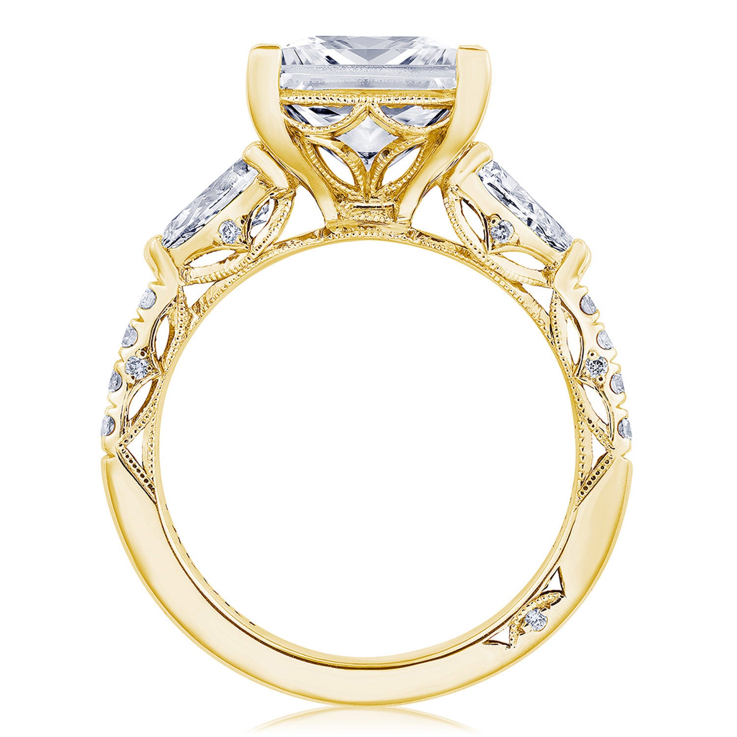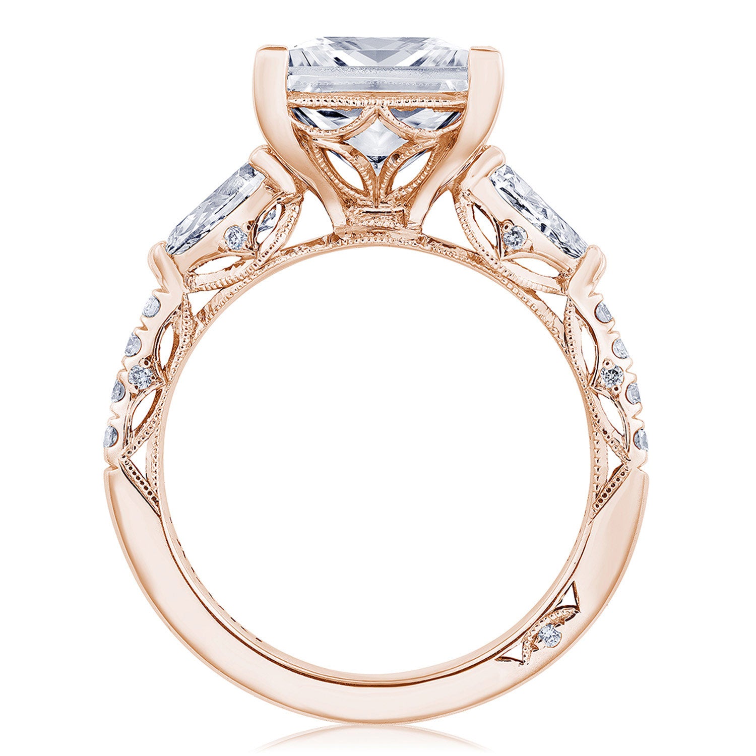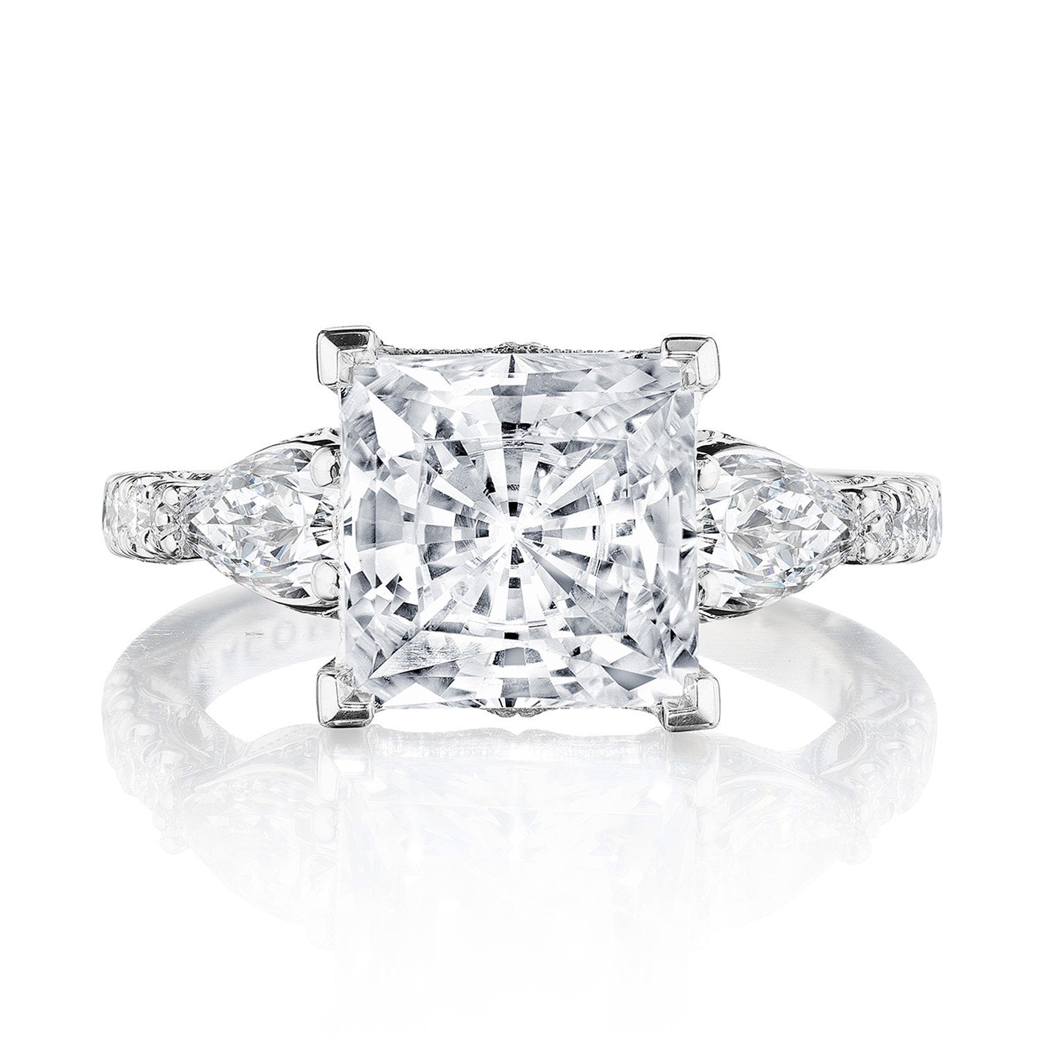 Additional Description This three stone ring features distinctive pear side stones that sit atop a lace-like crown and foundation of complex, milgrain-edged Dantela Crescent Fabric. Meticulous, hand-set French pavé leads up the ceiling for eye-catching brilliance.