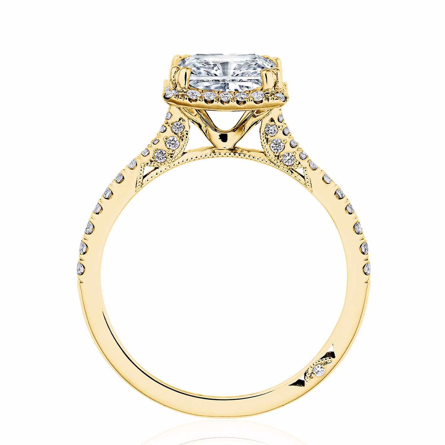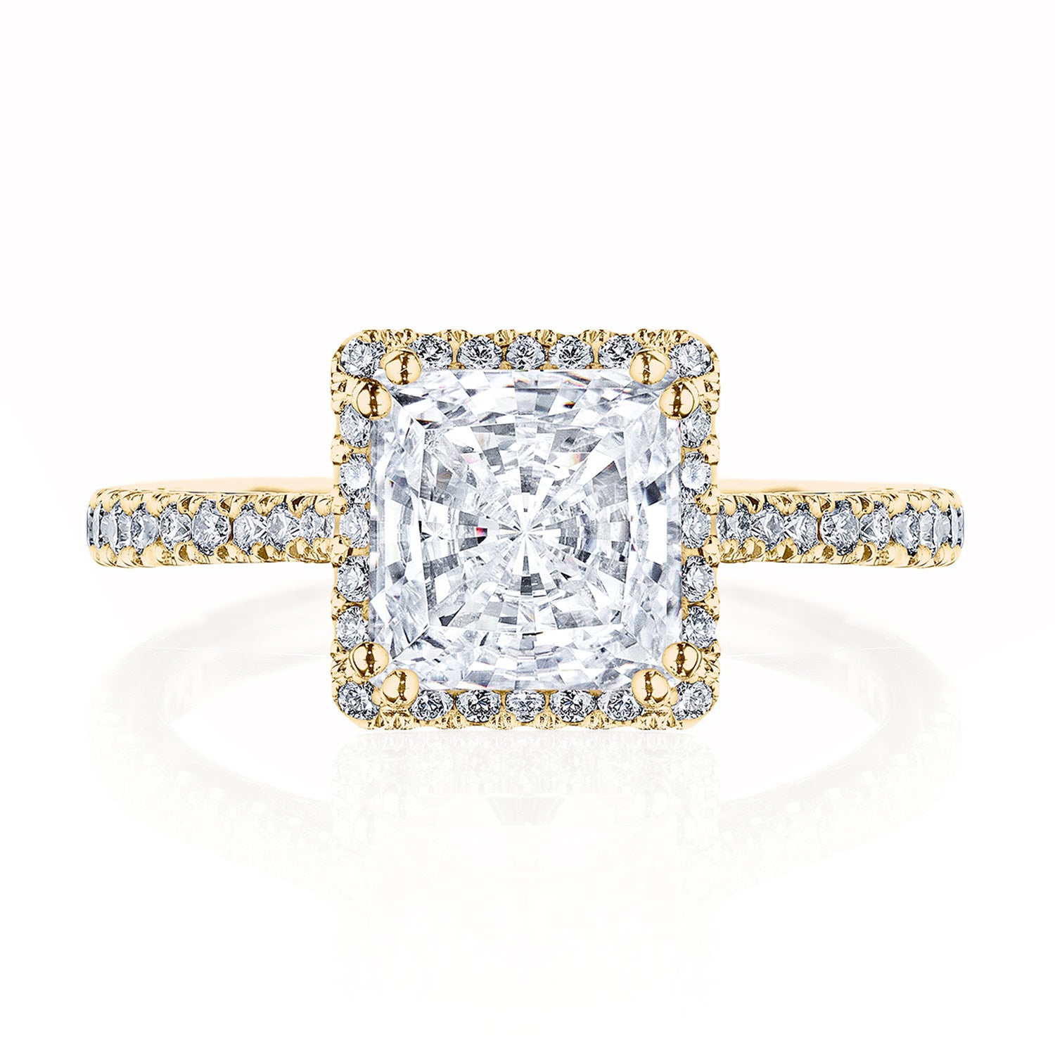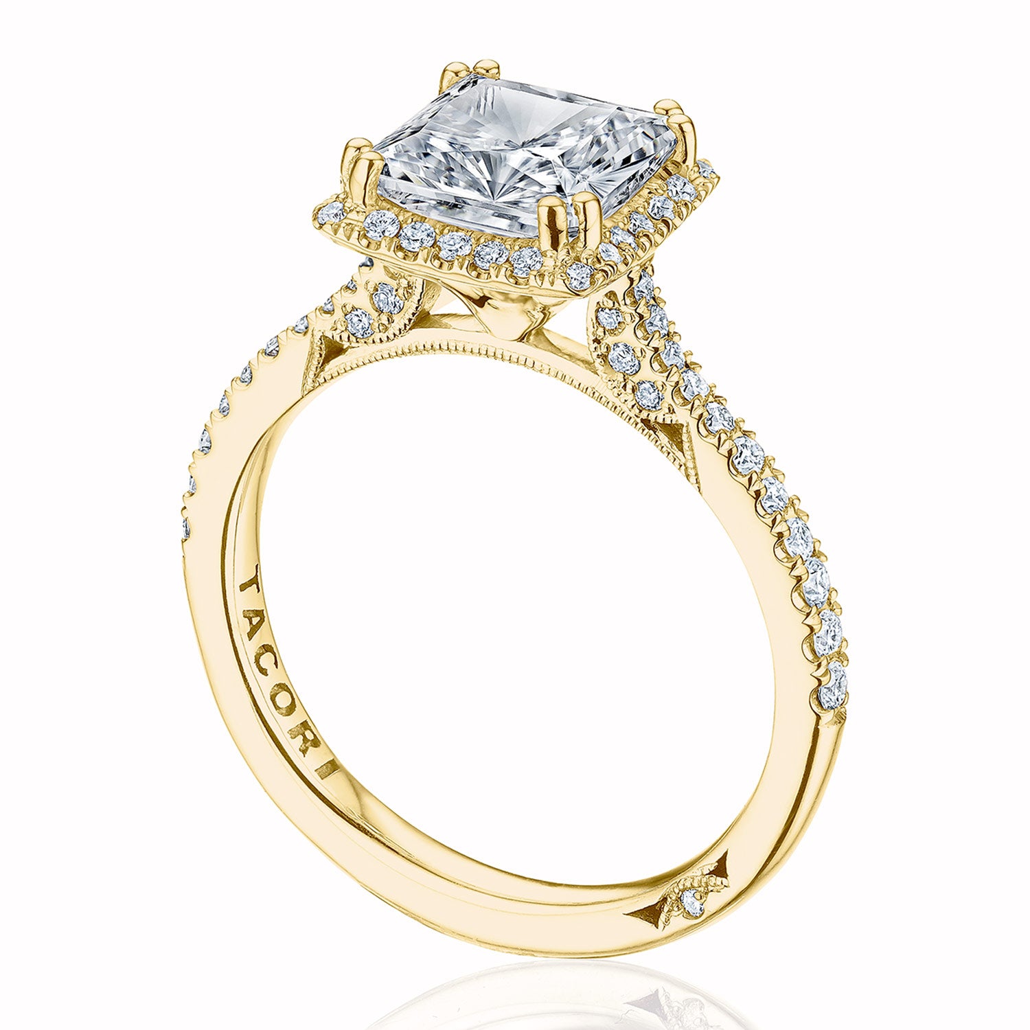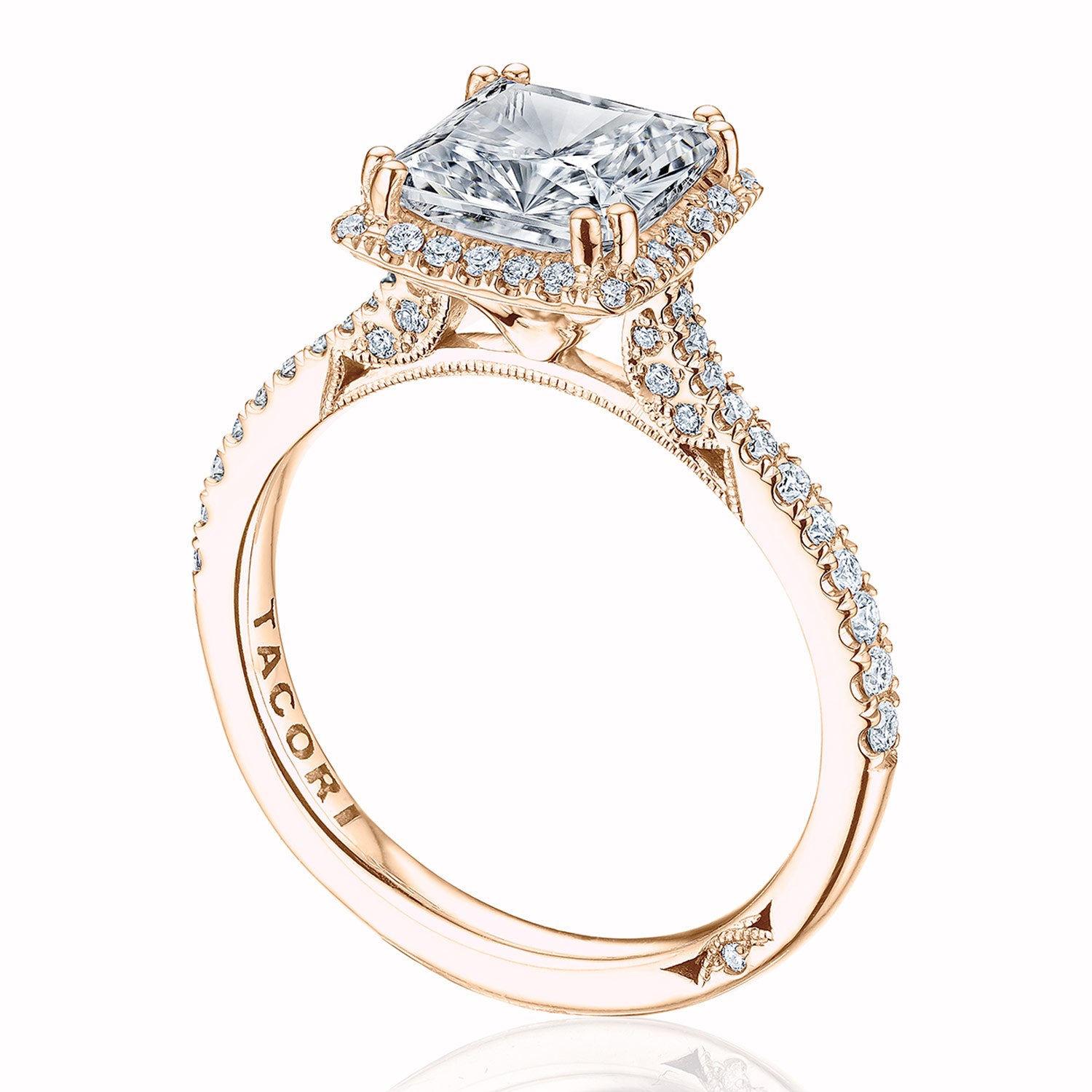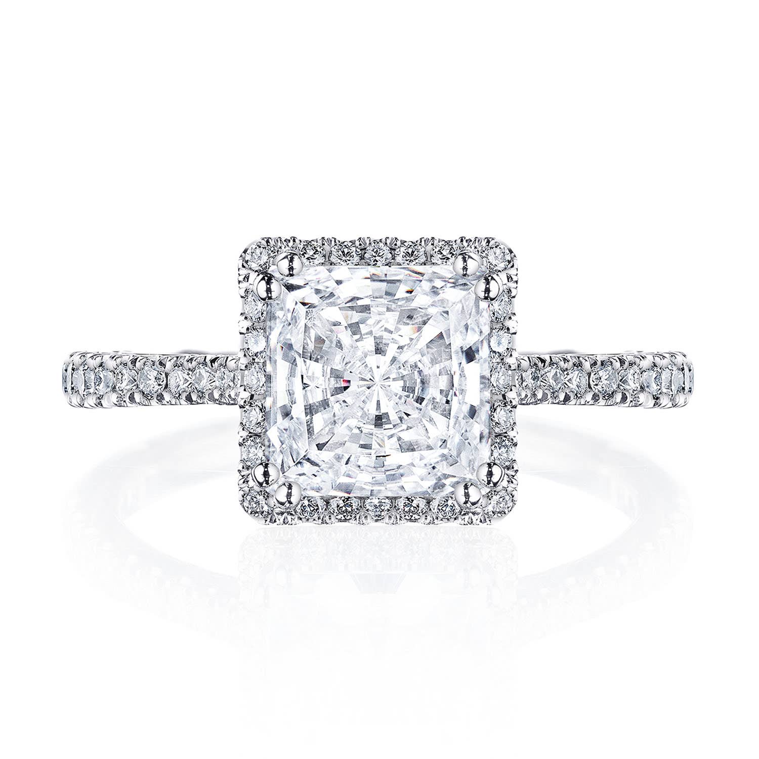 | Additional Description | A bloom highlights the princess-cut diamond, which is set on an open-gallery Cathedral Foundation. Pave daimonds and diamond-studded Simply TACORI crescent fabric ornamet the ceiling, while a Signature Crescent marks the ring as Truly TACORI. |