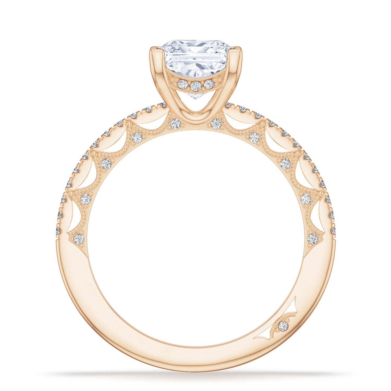 | Additional Description | Milgrain-edged Crescents glow across the inner face, while round-brilliant diamonds, hand-set with triple beading, add radiance. A pave ceiling traces towards the center stone, which floats above a hidden bloom on a Classic 360 foundation. |