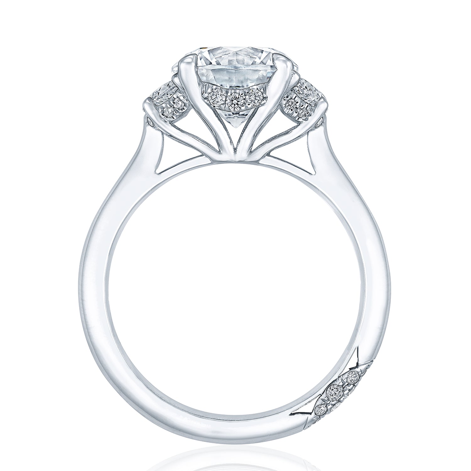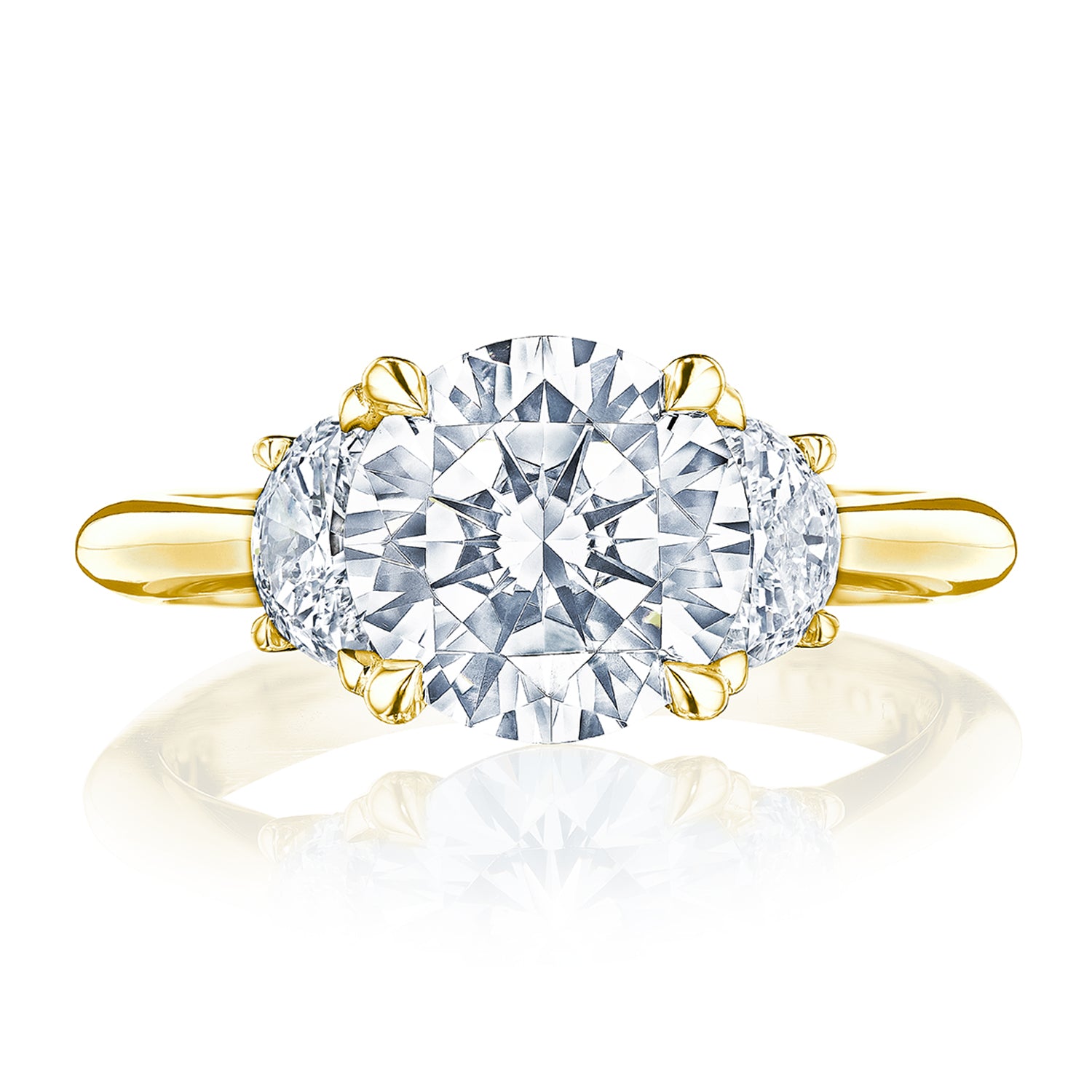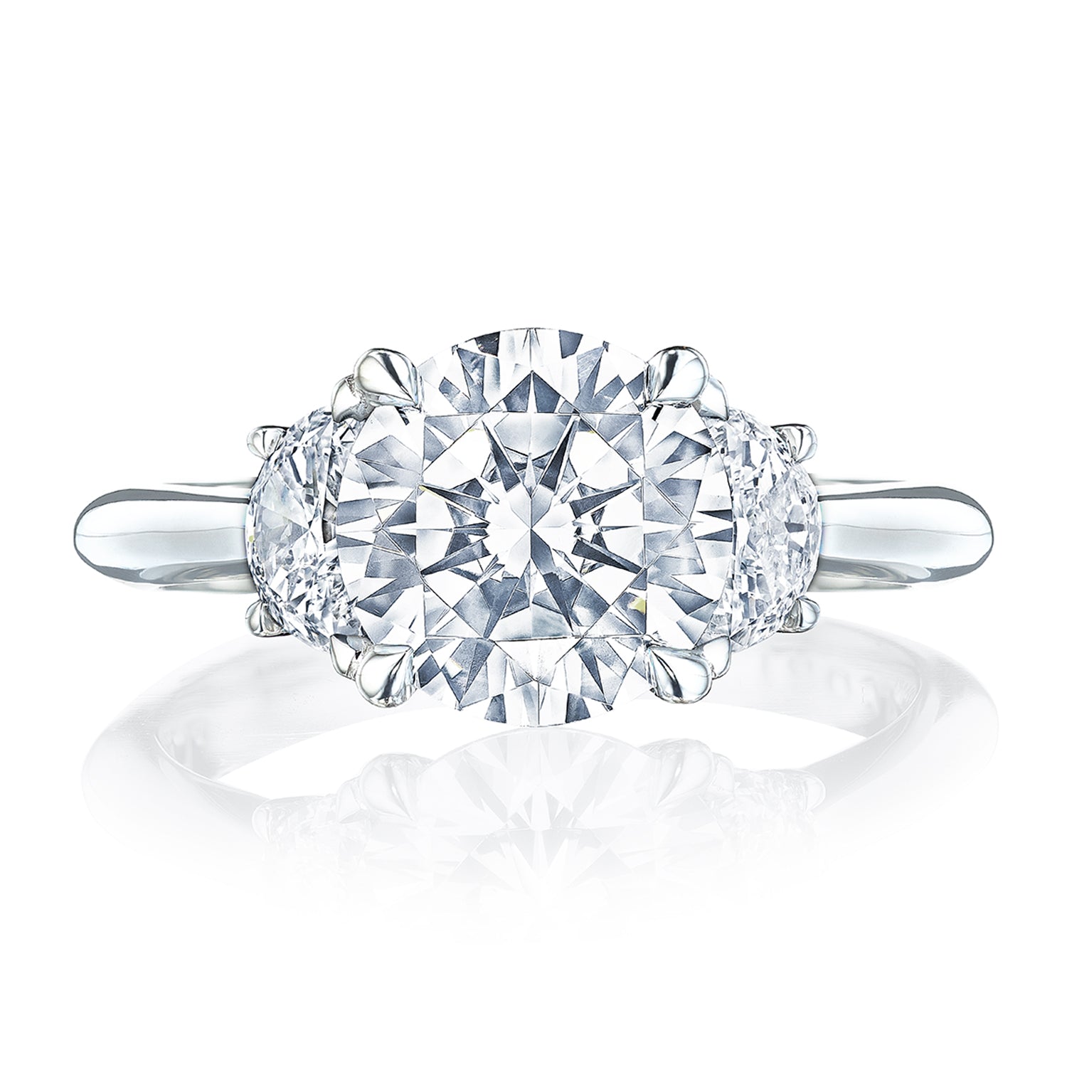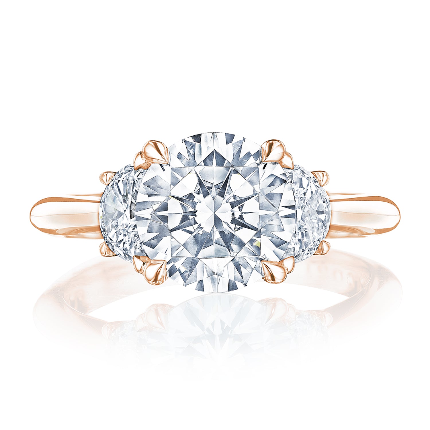 | Additional Description | On a Cathedral foundation, two half-moon diamonds embrace the center stone. Hidden blooms add all-angle sparkle beneath the crown. The high-polish band is marked with a diamond-studded Founder's Crescent at the resting point. |