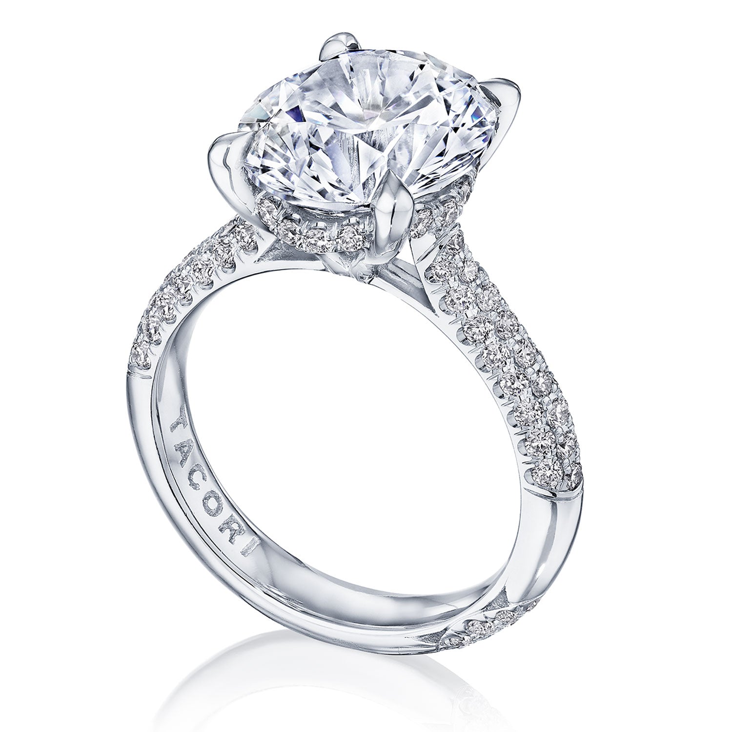 | Additional Description | Triple pavé of decorates the ceiling, leading to a solitaire that sits atop a Cathedral foundation with a hidden bloom. A Founder's Crescent marks the foundation of the ring. |