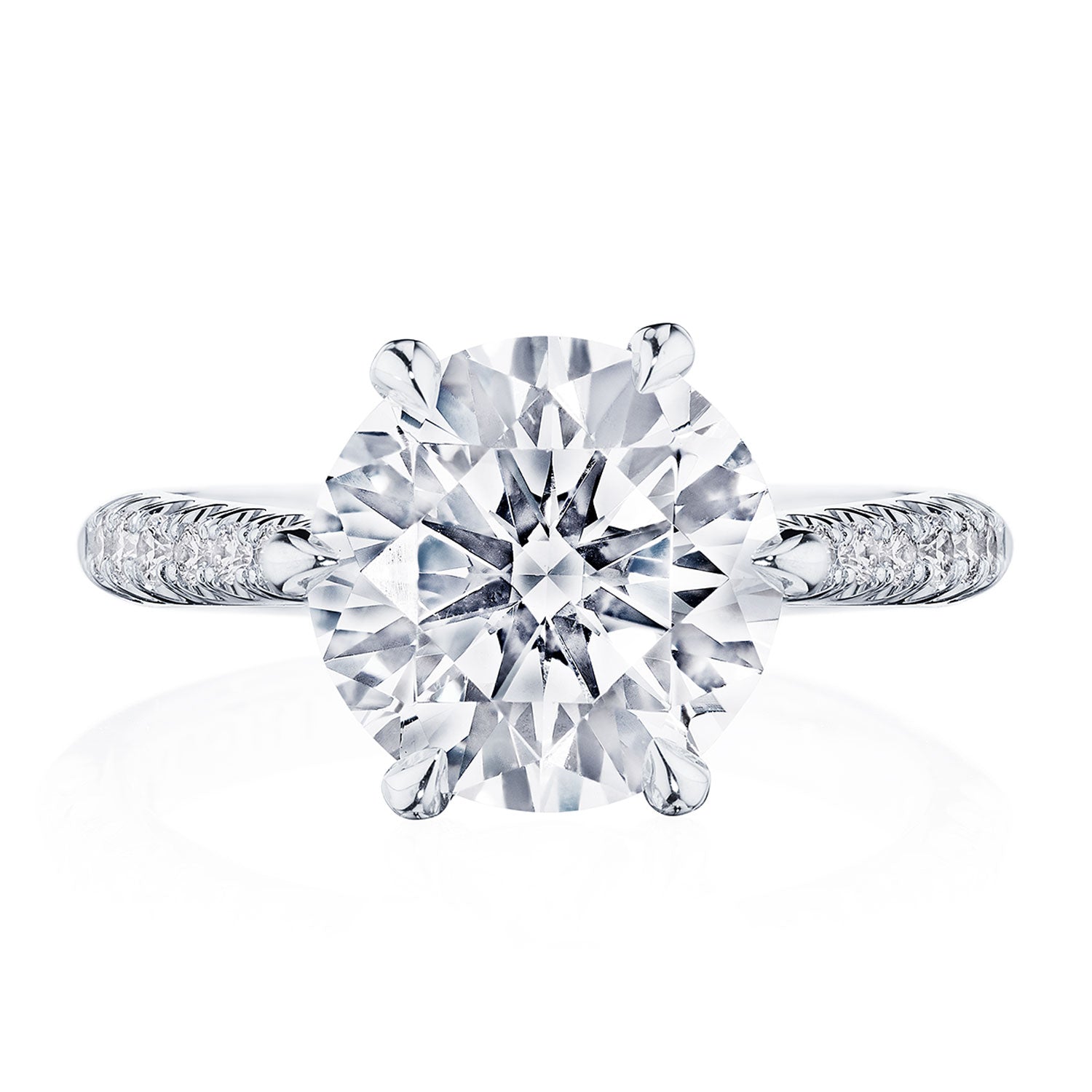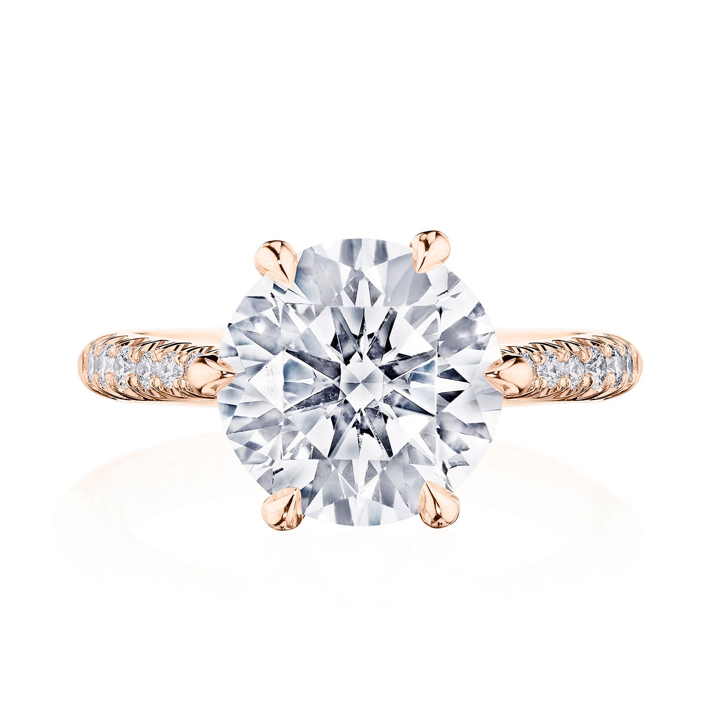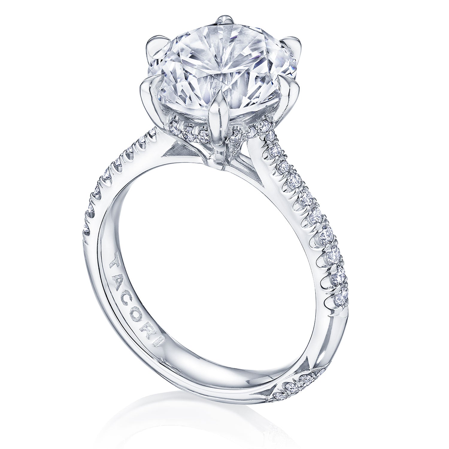 | Additional Description | A solitaire is set into a six-prong Cathedral foundation, which is embellished with a hidden bloom. Pave leads up the ceiling of the ring, and a Founder's Crescent marks the resting point. |