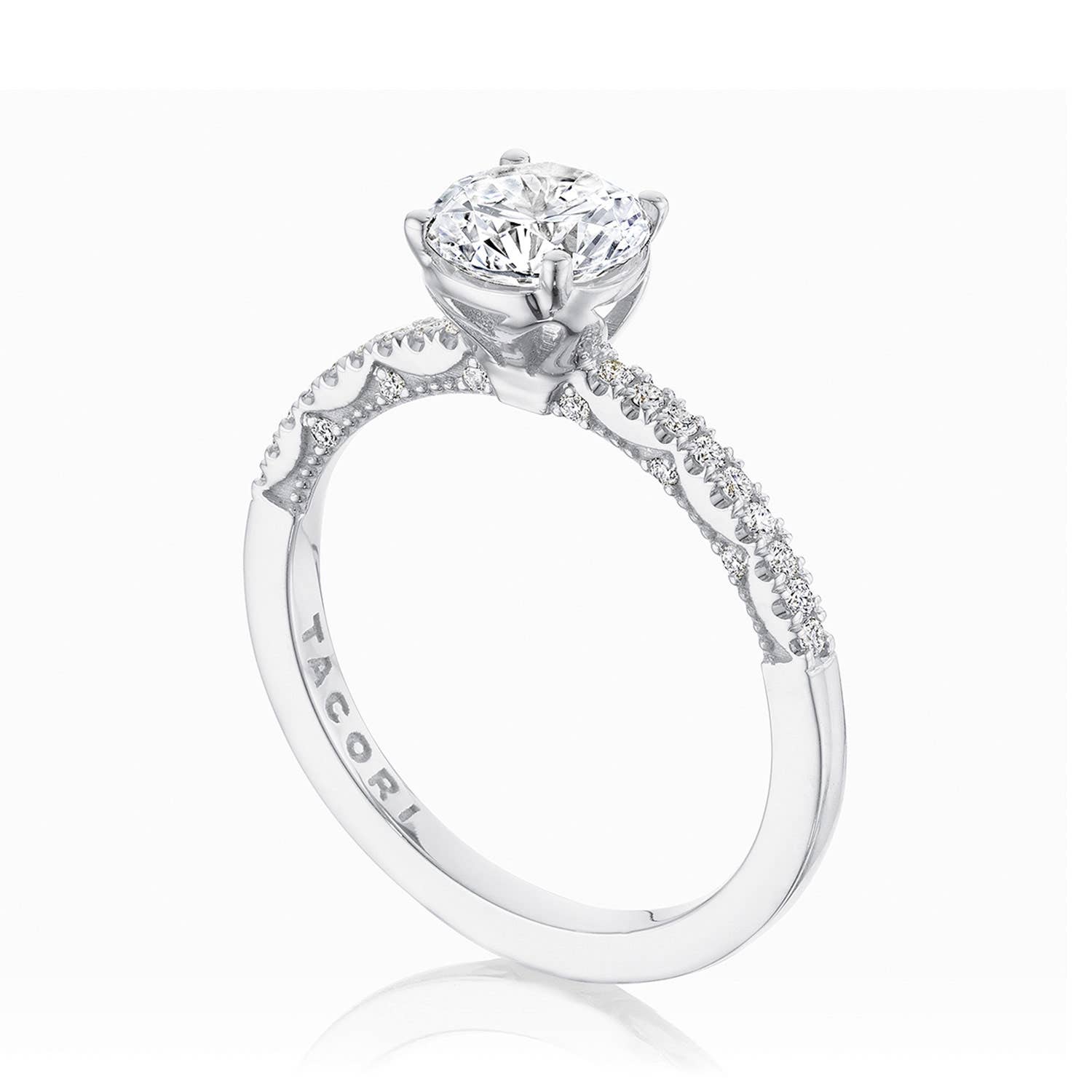 | Additional Description | Delicate round-brilliant diamonds are meticulously hand-set into the band, which boasts Coastal Crescent fabric with pinpoint-diamond detailing on the innerface. The center stone appears to float on the Classic 360 foundation. |